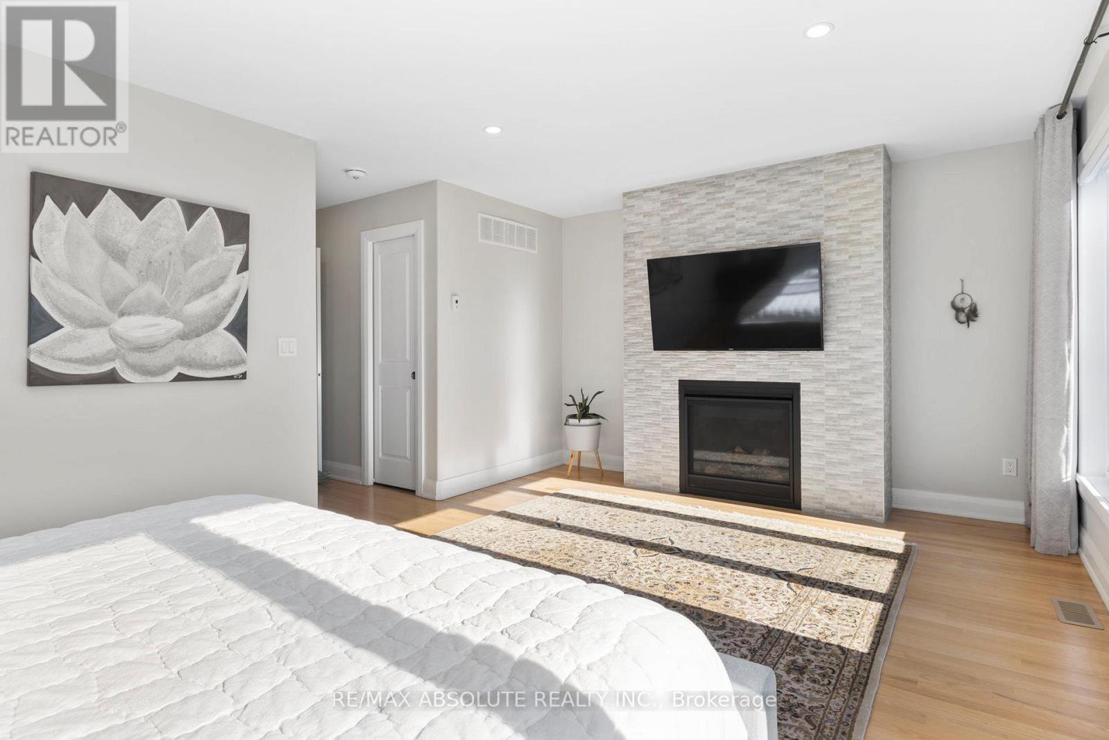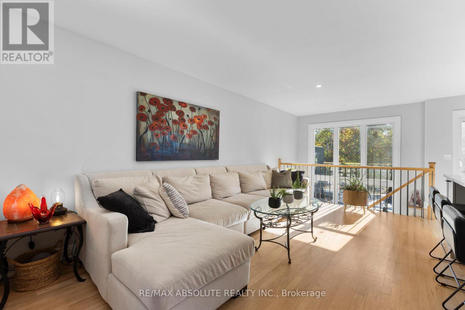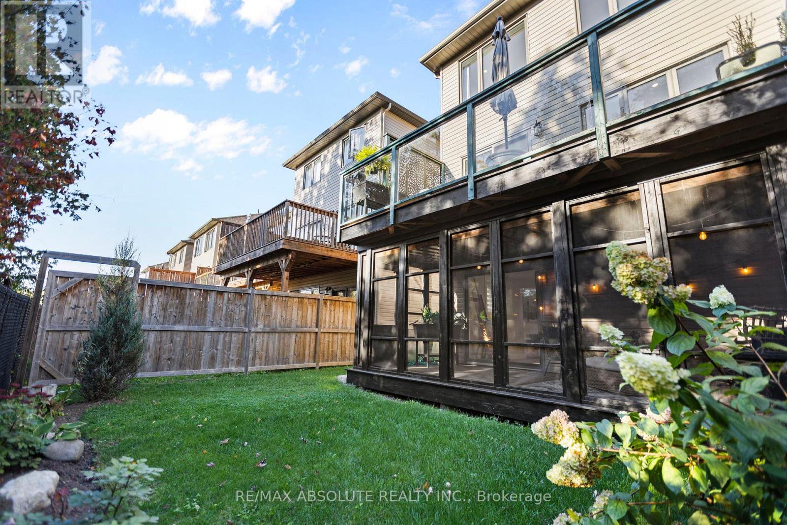 NO rear neighbours! Backs onto green space complete with south west exposure! This SPECIAL home has a beautiful feel inside because of all the EXTRA windows that really let the outside in! With all sorts of structural upgrades this is a one of kind home! Spacious open tiled foyer, you can see the entire main floor upon entering the home, so open & happy! This floor plan allows for maximum square footage on the main level as the staircase is at the back of the home along with a stunning wall of windows The kitchen is beautiful & super functional. Every square inch was maximized with functionality in mind. The huge island seats 4 easily. The formal dining room is surrounded by windows & perfectly placed beside the kitchen- could also be an office or playroom if a formal space isn't needed. There is a large balcony off the main floor that is flooded with sunshine all afternoon right into the evening. The powder room walls are tiled giving this space an elevated look. The primary is a real treat, not only does it have 2 massive windows to showcase the beautiful trees in the back but it has a gas fireplace making this retreat extra special! Oversized shower with a bench in the ensuite, dual sinks and quartz countertops! The LARGE second bedroom has cathedral ceilings & could be used as a family room if only 2 bedrooms is needed. 2nd level laundry. FULLY finished walk out lower level is so open & bright - could be a 4th bedroom or a fabulous family room.. many living options within this home. The screened in porch is a VERY rare find- enjoy 3 seasons out there & feel like you are a million miles from the city! There are several spaces to enjoy the outdoors.. the covered front porch, a balcony & the screened in porch! This home has a very very welcoming feeling!