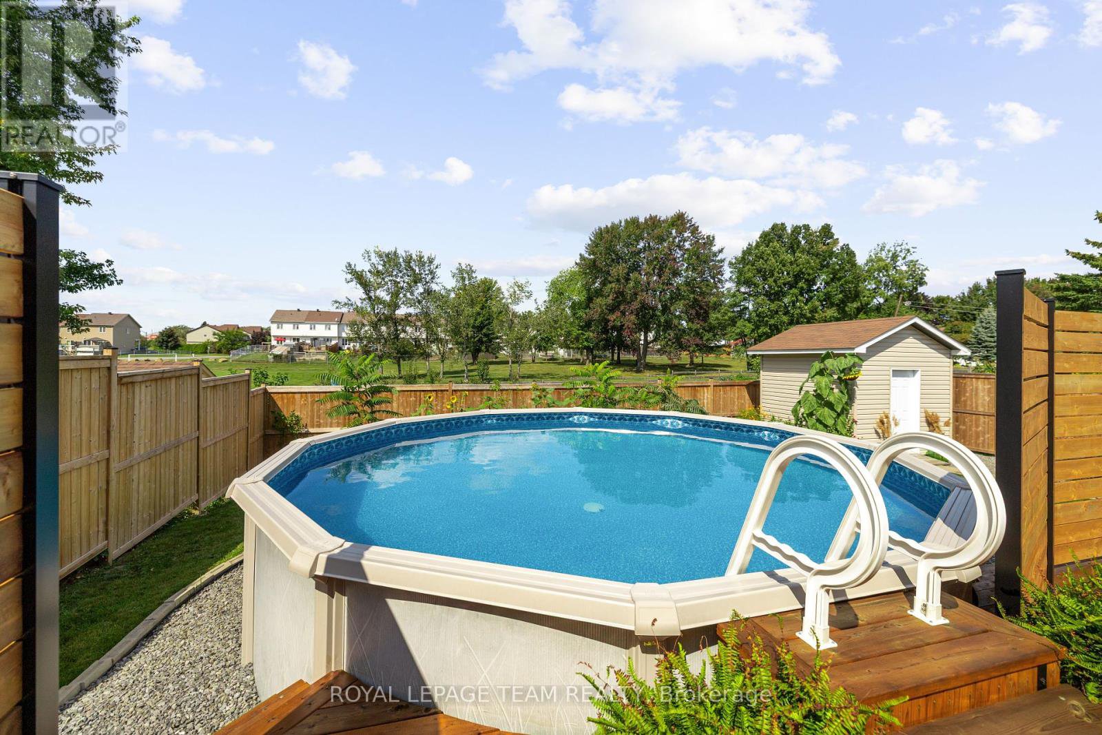 Beautifully renovated high-ranch in a quiet, established neighbourhood with no rear neighbours, backing onto Patricia Charron park. Rare grandfathered access to the park and community garden through a private access door. Bright open-concept layout with a newly renovated kitchen featuring a large island, quartz counters, stainless steel appliances, and hardwood flooring throughout. Spacious primary bedroom with cheater ensuite plus 2 additional bedrooms. Fully finished basement offers a family room with gas fireplace, kitchenette/bar-area, den/home-office or 4th bedroom, full bath, and large laundry/utility room with plenty of space for storage. Outside, enjoy your private backyard oasis complete with an 18ft above-ground pool (2022), new deck (2023), new fence (2024), and beautifully landscaped gardens with mature plants, trees, and flowers. Carport, shed, and plenty of space to entertain. Close to schools, shopping, transit, and all amenities. You will love living here!