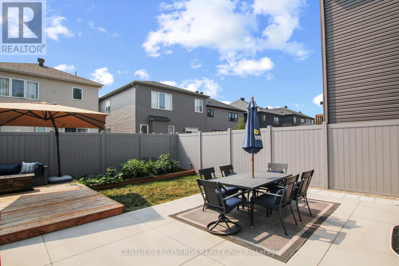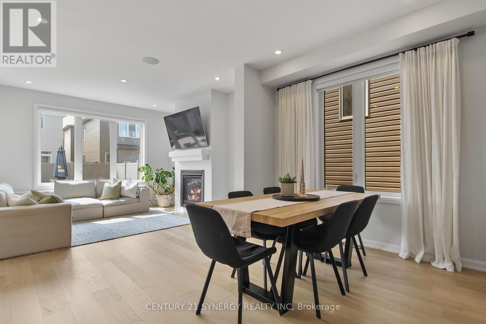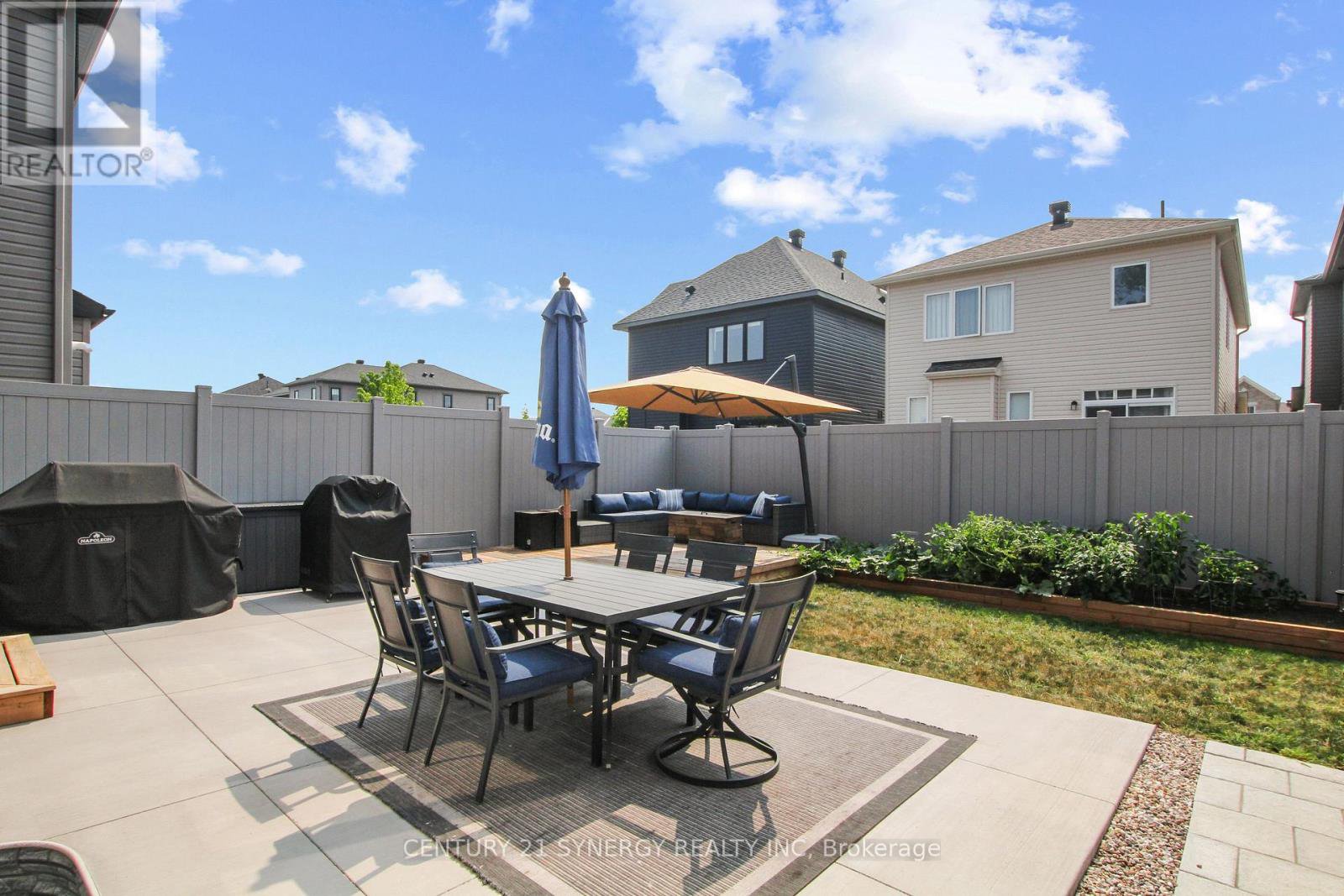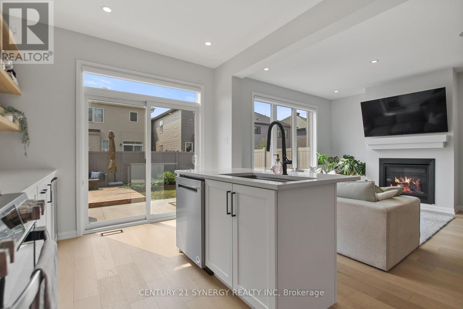 Absolutely STUNNING 3 bedroom, 3 bath home conveniently located in the Quinn's Pointe neighborhood of Barrhaven. Perfectly located across from the park and no front neighbors. Spectacular upgrades throughout this remarkable home, Hardwood on the main and second floor, Quartz counter tops, beautiful tile, gas fireplace, pot lights, finished basement, Spacious bedrooms, Large primary with generous size WIC and Ensuite. The open concept Kitchen, living and dining room is flooded with natural light and perfect for entertaining. With a large patio door just off the kitchen leading to the fully landscaped rear yard, large concrete patio/eating area plus a raised sitting area and room to BBQ. The fully finished lower level includes a large rec room, flex space for a home gym, plenty of storage and a rough in for a future bathroom. The flow of this home is not only remarkable, but practical and spacious with plenty of natural light. Located on a quiet street close to all amenities, walking paths, great schools, recreation and shopping. Don't miss your opportunity to call this immaculate property home and enjoy all that Barrhaven to offer.