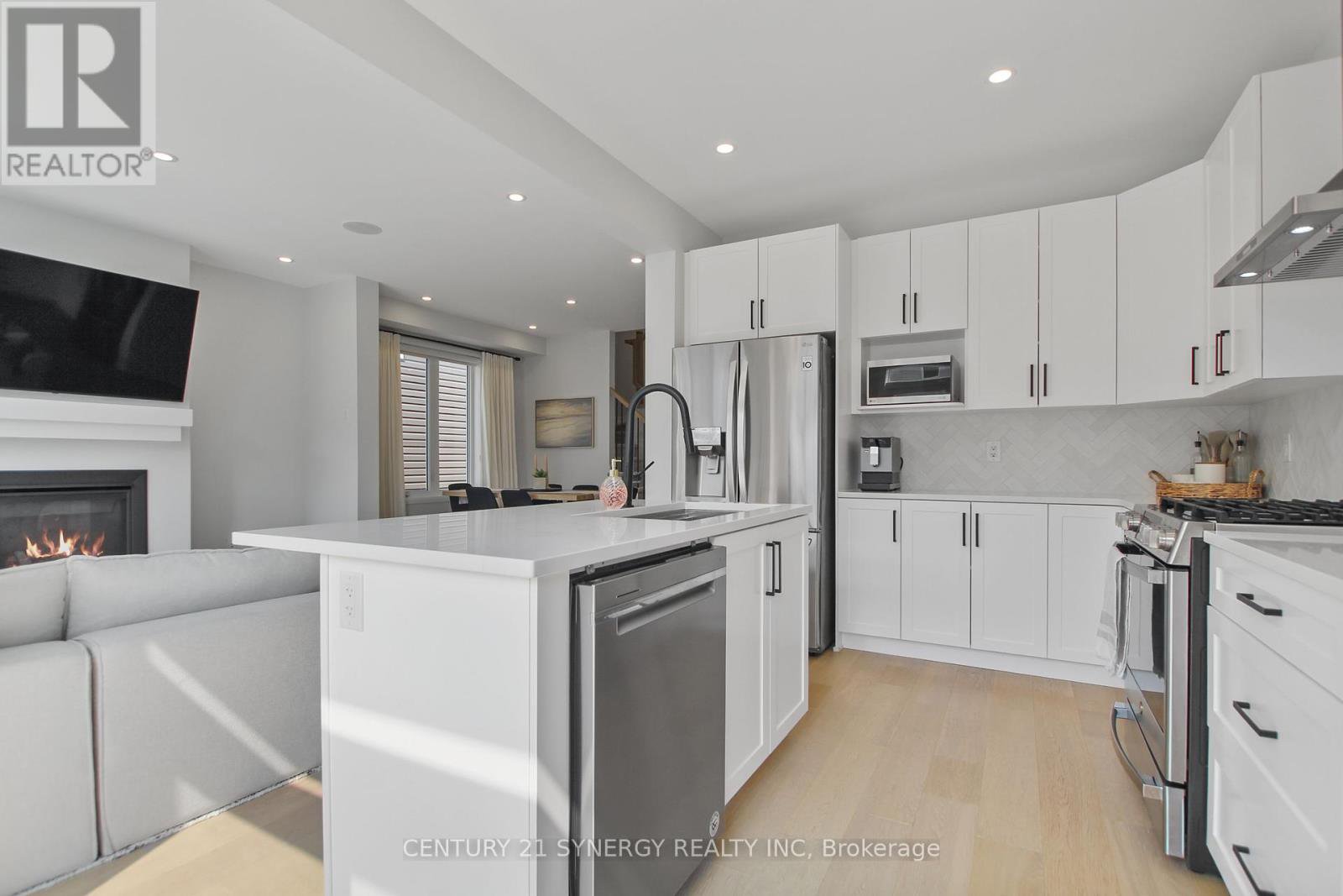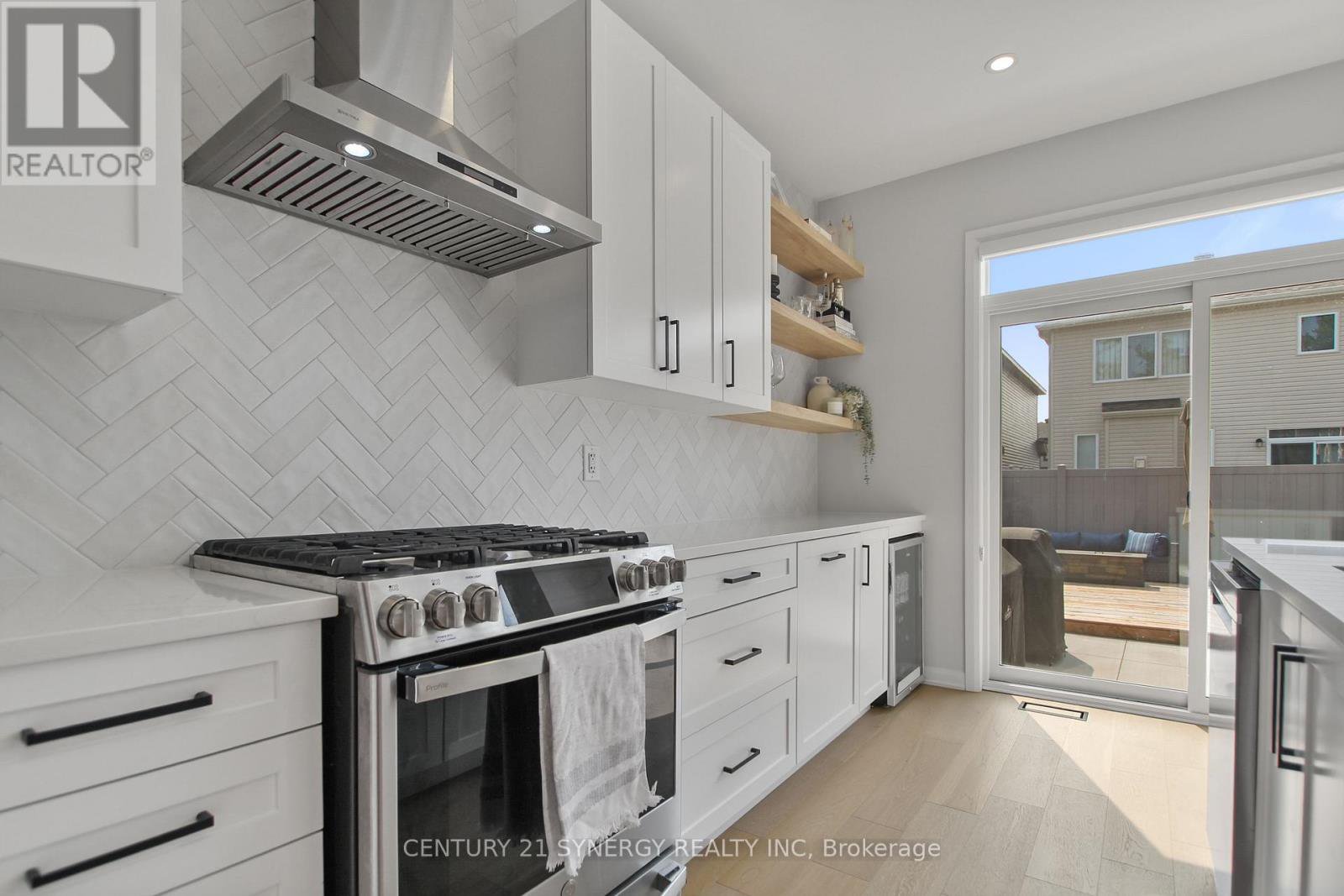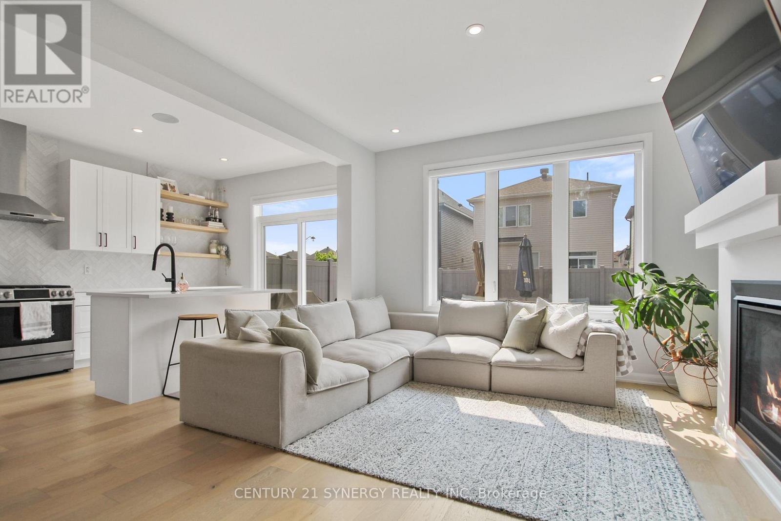 Absolutely STUNNING 3 bedroom, 3 bath home conveniently located in the Quinn's Pointe neighborhood of Barrhaven. Perfectly located across from the park and no front neighbors. Spectacular upgrades throughout this remarkable home, Hardwood on the main and second floor, Quartz counter tops, beautiful tile, gas fireplace, pot lights, finished basement, Spacious bedrooms, Large primary with generous size WIC and Ensuite. The open concept Kitchen, living and dining room is flooded with natural light and perfect for entertaining. With a large patio door just off the kitchen leading to the fully landscaped rear yard, large concrete patio/eating area plus a raised sitting area and room to BBQ. The fully finished lower level includes a large rec room, flex space for a home gym, plenty of storage and a rough in for a future bathroom. The flow of this home is not only remarkable, but practical and spacious with plenty of natural light. Located on a quiet street close to all amenities, walking paths, great schools, recreation and shopping. Don't miss your opportunity to call this immaculate property home and enjoy all that Barrhaven to offer.