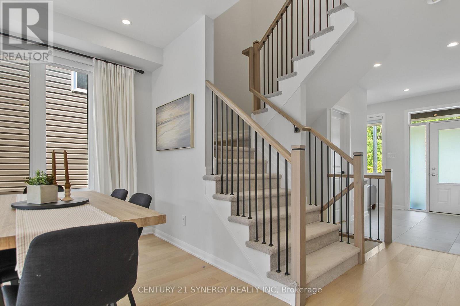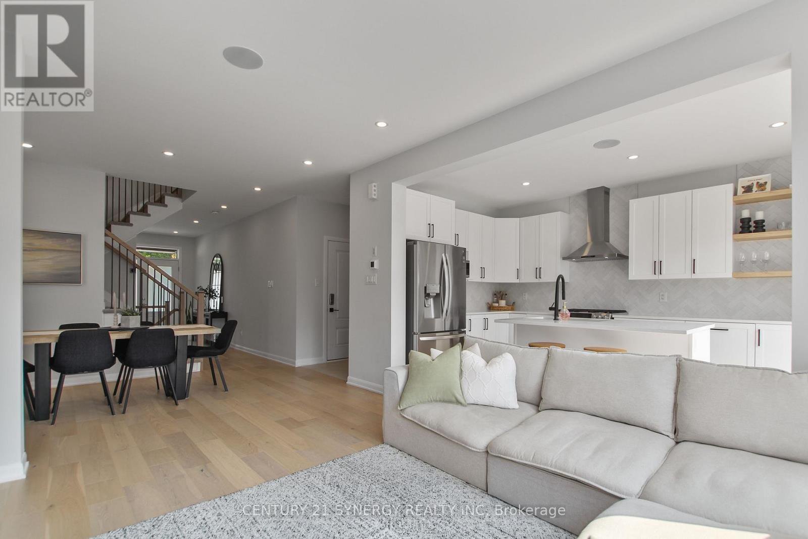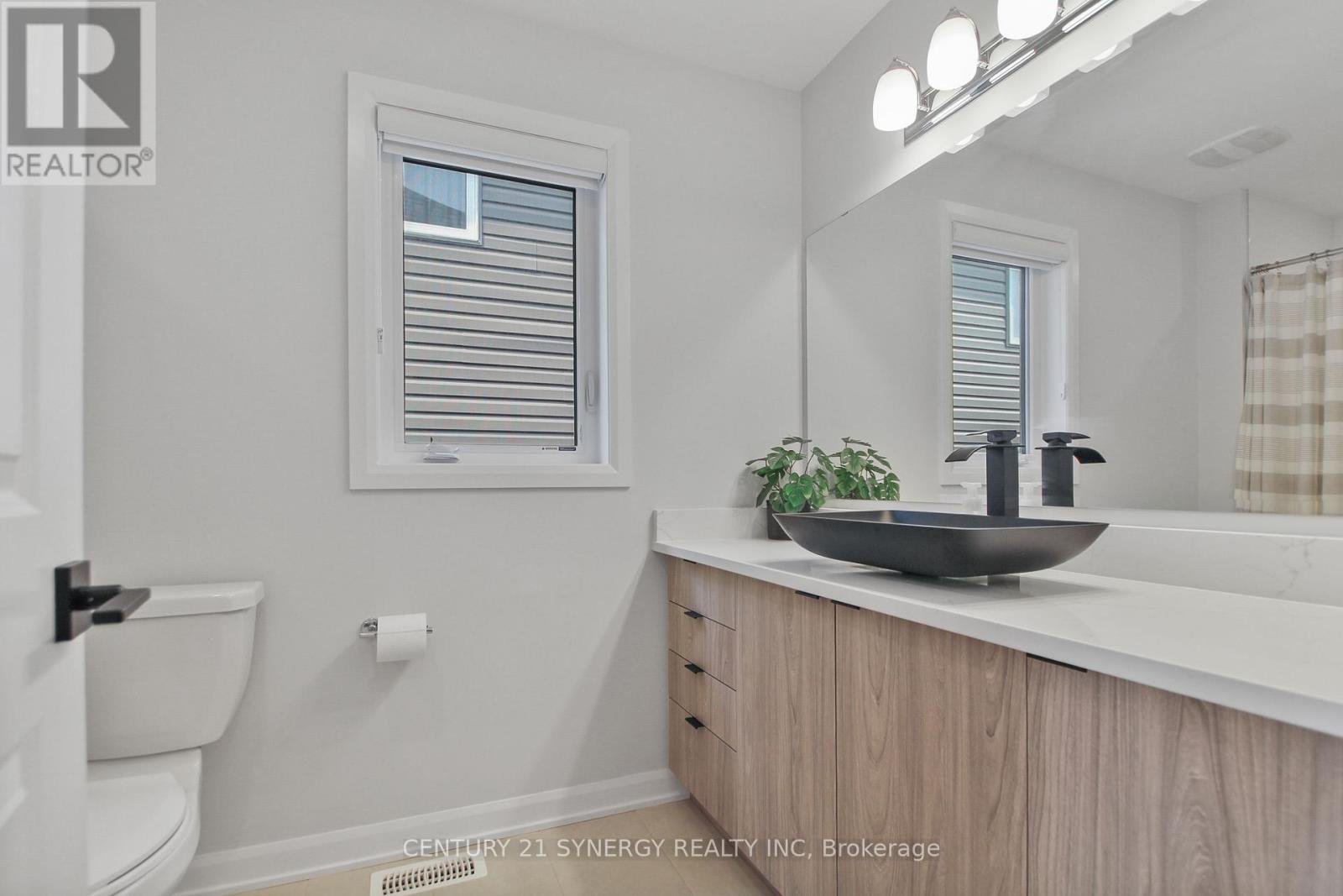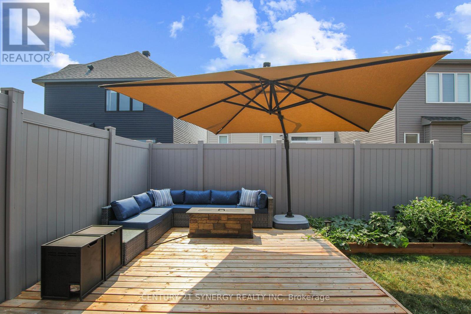 Absolutely STUNNING 3 bedroom, 3 bath home conveniently located in the Quinn's Pointe neighborhood of Barrhaven. Perfectly located across from the park and no front neighbors. Spectacular upgrades throughout this remarkable home, Hardwood on the main and second floor, Quartz counter tops, beautiful tile, gas fireplace, pot lights, finished basement, Spacious bedrooms, Large primary with generous size WIC and Ensuite. The open concept Kitchen, living and dining room is flooded with natural light and perfect for entertaining. With a large patio door just off the kitchen leading to the fully landscaped rear yard, large concrete patio/eating area plus a raised sitting area and room to BBQ. The fully finished lower level includes a large rec room, flex space for a home gym, plenty of storage and a rough in for a future bathroom. The flow of this home is not only remarkable, but practical and spacious with plenty of natural light. Located on a quiet street close to all amenities, walking paths, great schools, recreation and shopping. Don't miss your opportunity to call this immaculate property home and enjoy all that Barrhaven to offer.