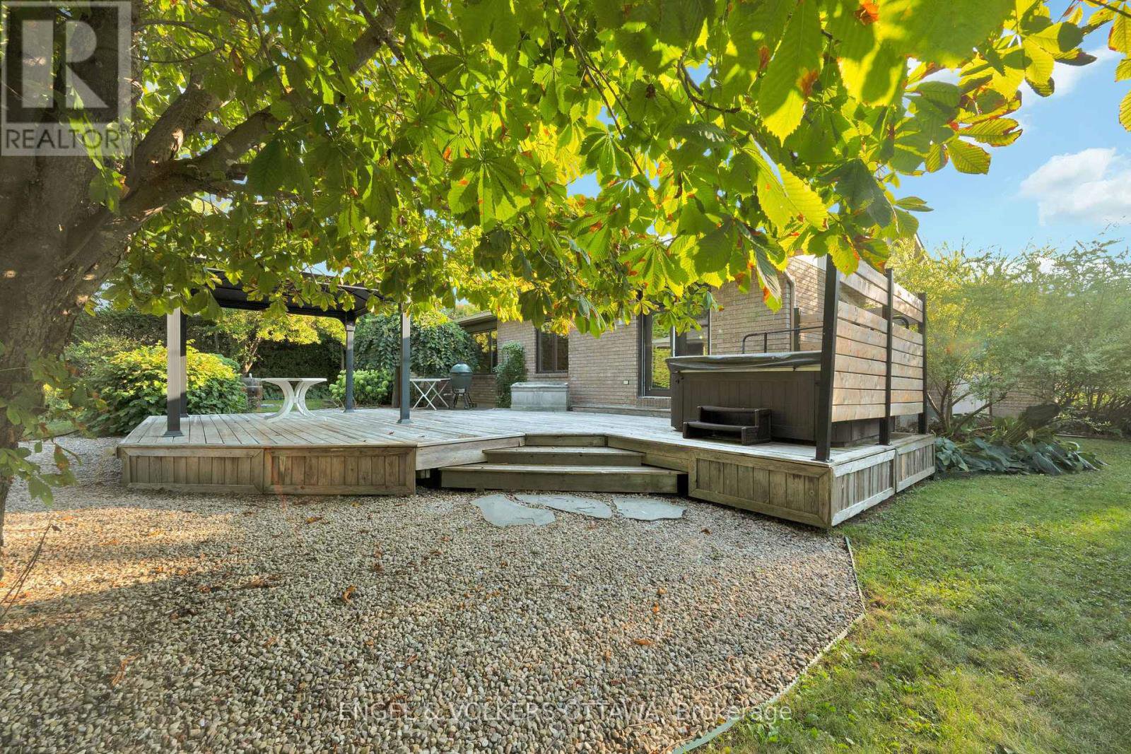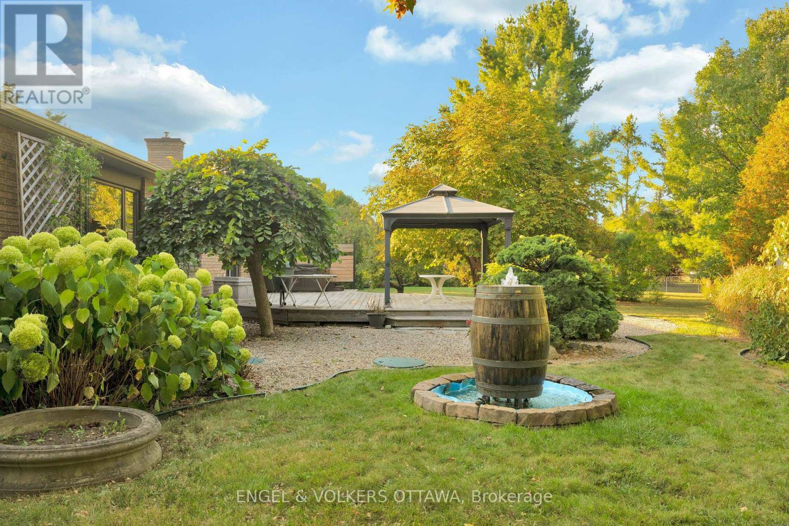 Here is rare opportunity to own a 1900+sqft custom Bravar built bungalow with a double car garage in the exclusive neighbourhood of Manotick Island. Located on just under 0.5 an acre with lush gardens and a large deck with a hot tub and gazebo - this home is perfect for entertaining. The backyard offers direct South-Western exposure with lots of space for an in ground pool. The main level is perfectly laid out with living and dining on one side, and bedrooms on the other. The updated kitchen (2008) offers a gas stove, tons of cupboard space and stainless steel appliances. Off the kitchen is a formal dining room, and living room with a garden view. There is also a bonus family room with a gas fireplace (as-is) and sliding patio door leading to the backyard. The bedrooms are located in a separate wing of the home. The primary has a walk-in closet and en-suite bathroom. Both of the other rooms are a good size with their own full bathroom off the hallway. Huge unfinished basement offering endless potential for a growing family with a bedroom or office already framed. Double car garage with EV charger and built in storage. Fantastic, low turnover neighbourhood with tons of amenities nearby including Manotick's best dog park (David Bartlett Park), Walking trails, Rideau River, Parks, Top Restaurants and Highly Rated Schools. Water system (2024), Partial Roof Re-Done (2023). Fantastic location and TONS of potential! OPEN HOUSE SUNDAY 10AM-12PM!!!