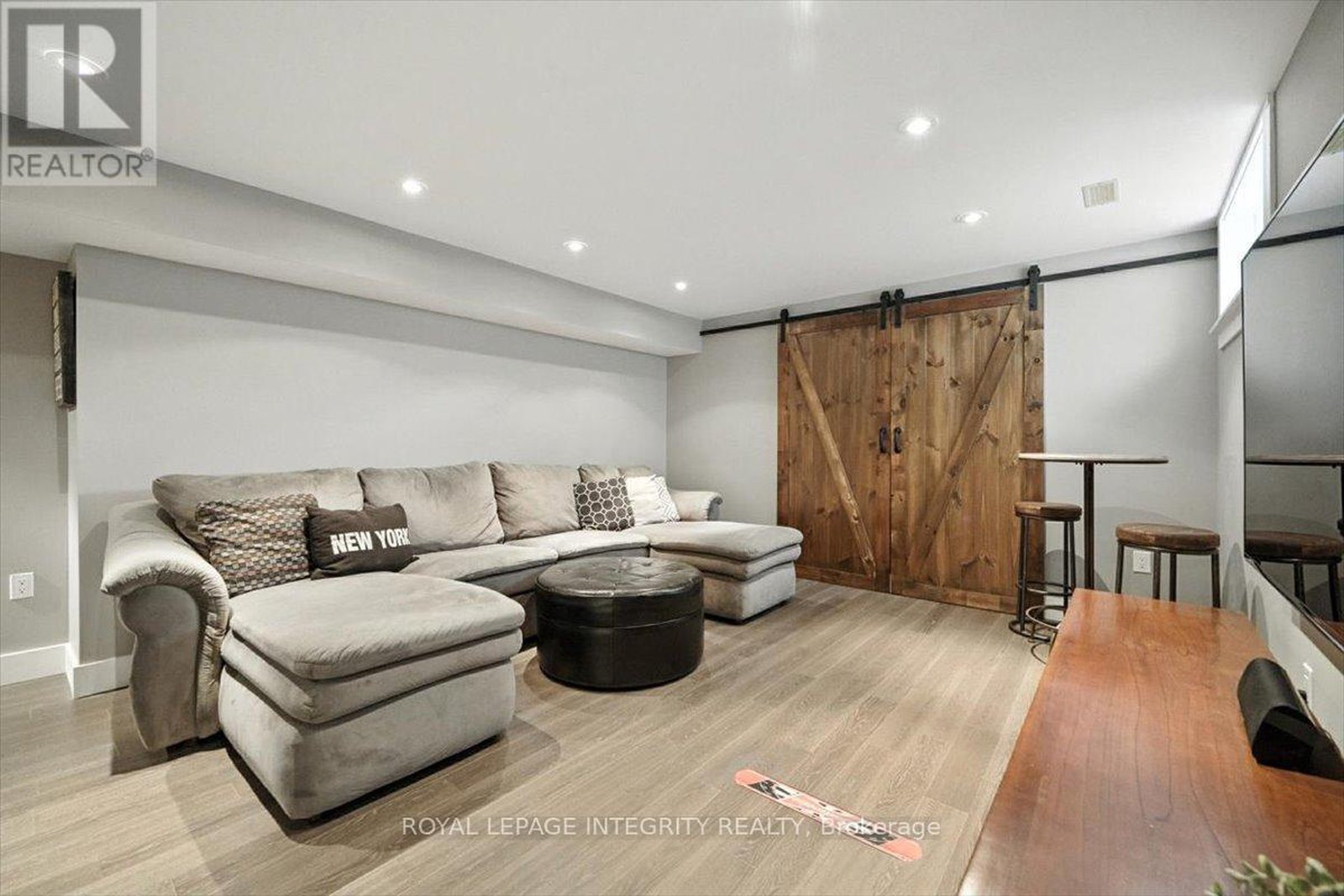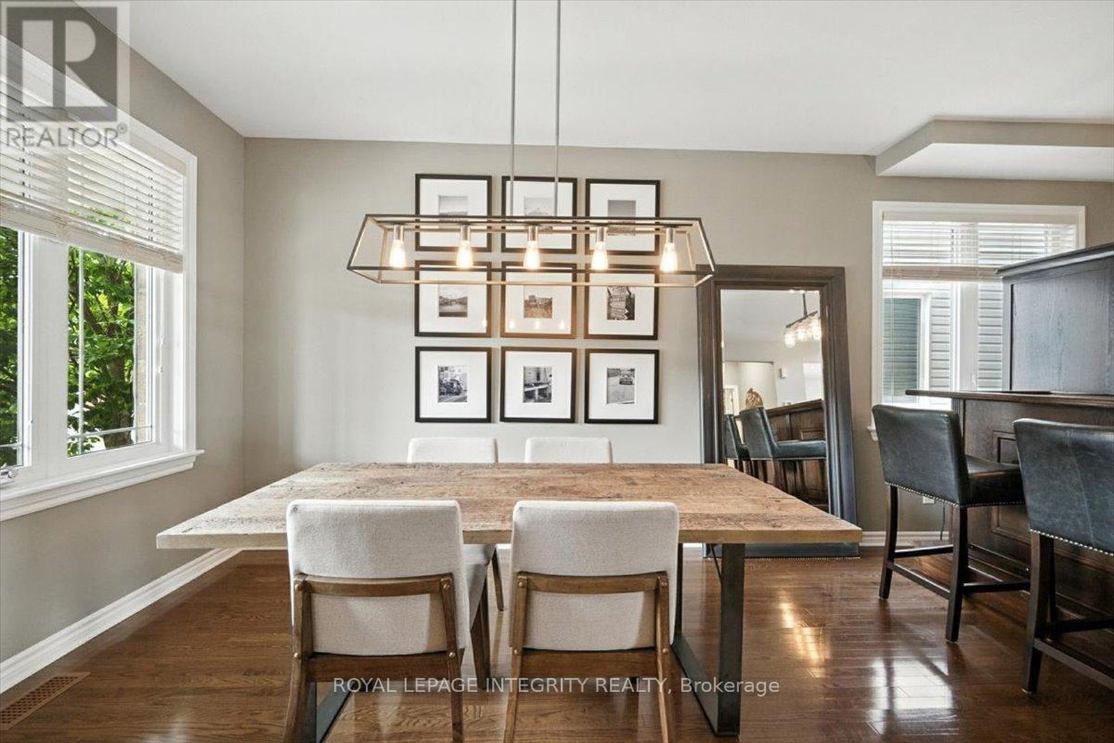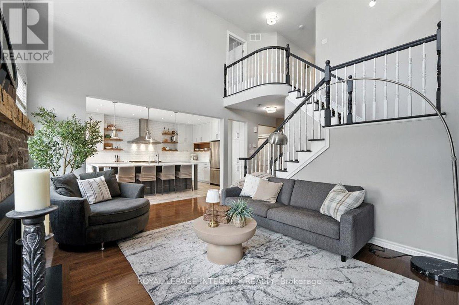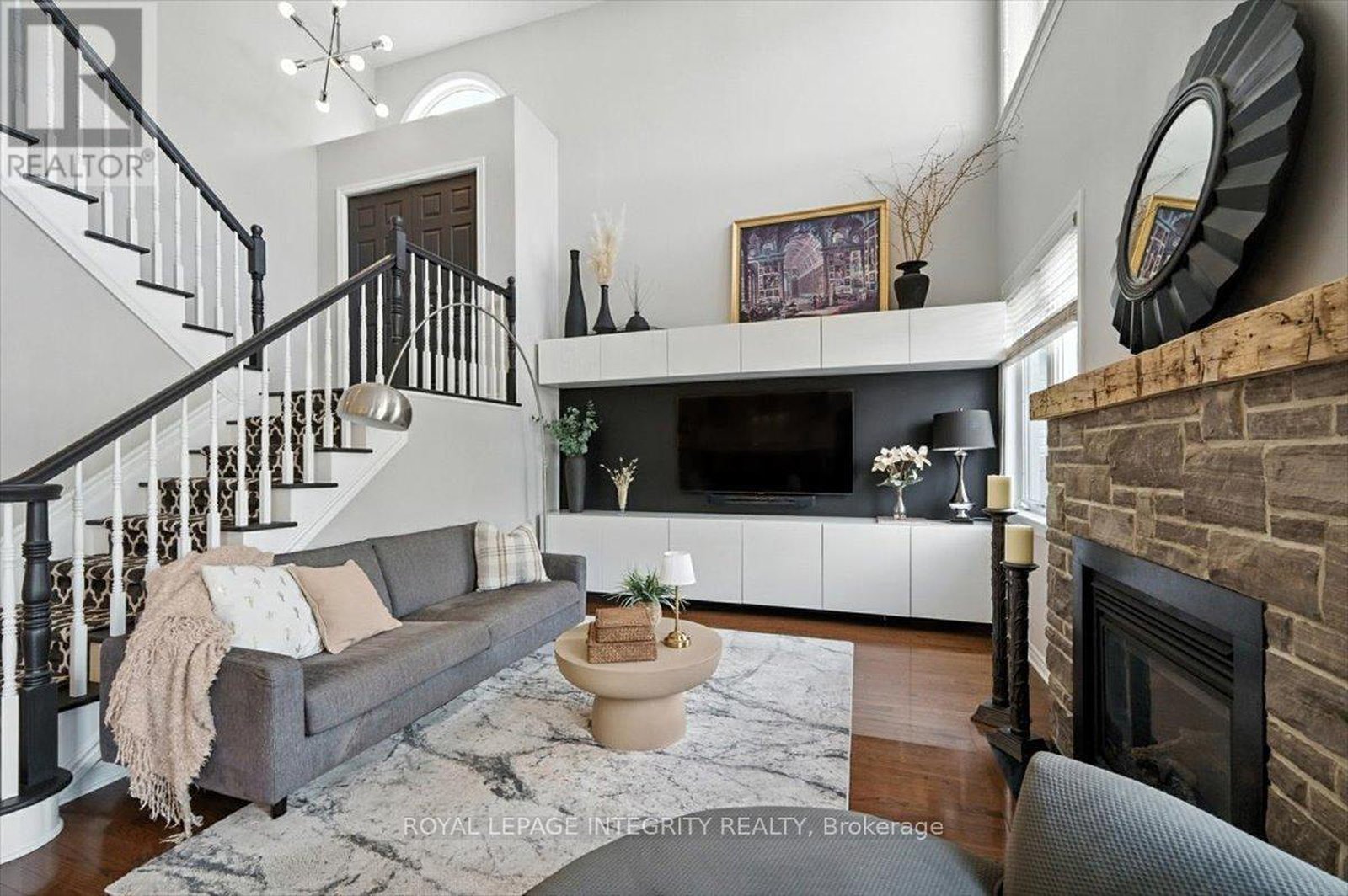 Stunning 4-bedroom, 3-bathroom renovated home with a backyard oasis! The extended interlock driveway and charming front porch create gorgeous curb appeal before stepping inside to an inviting foyer and a bright, functional layout. Gleaming hardwood floors enrich the formal living and dining areas, with a stylish bar accenting the space. Pass by the convenient mudroom/laundry with garage access adding practicality before making your way to the heart of the home. Located at the back of the home, discover a breathtaking redesigned kitchen with white cabinetry, open wood shelving, subway tile backsplash, quartz counters, and an impressive 114" island comfortably seating six, all overlooking the grand family room with fireplace and soaring ceilings open to the second floor. Upstairs, hardwood continues into the spacious primary suite with custom built ins maximizing storage while keeping a sleek, streamlined look to the primary bedroom, along with a walk-in closet and an updated ensuite featuring a glass shower and dual vanity. Three additional bedrooms and a full bathroom complete the level. The finished basement includes a versatile family room with barn-door closets, a bonus gym (or potential 5th bedroom), and generous storage. Step outside to your private retreat with a fully landscaped yard, in-ground pool, gazebo with bar, fridge and TV, garden beds, and a storage shed - perfect for entertaining or relaxing with family. Tucked away on a quiet street and ideally located near schools, parks, shopping, and all amenities, this home is sure to impress and is ready for its new family to enjoy!