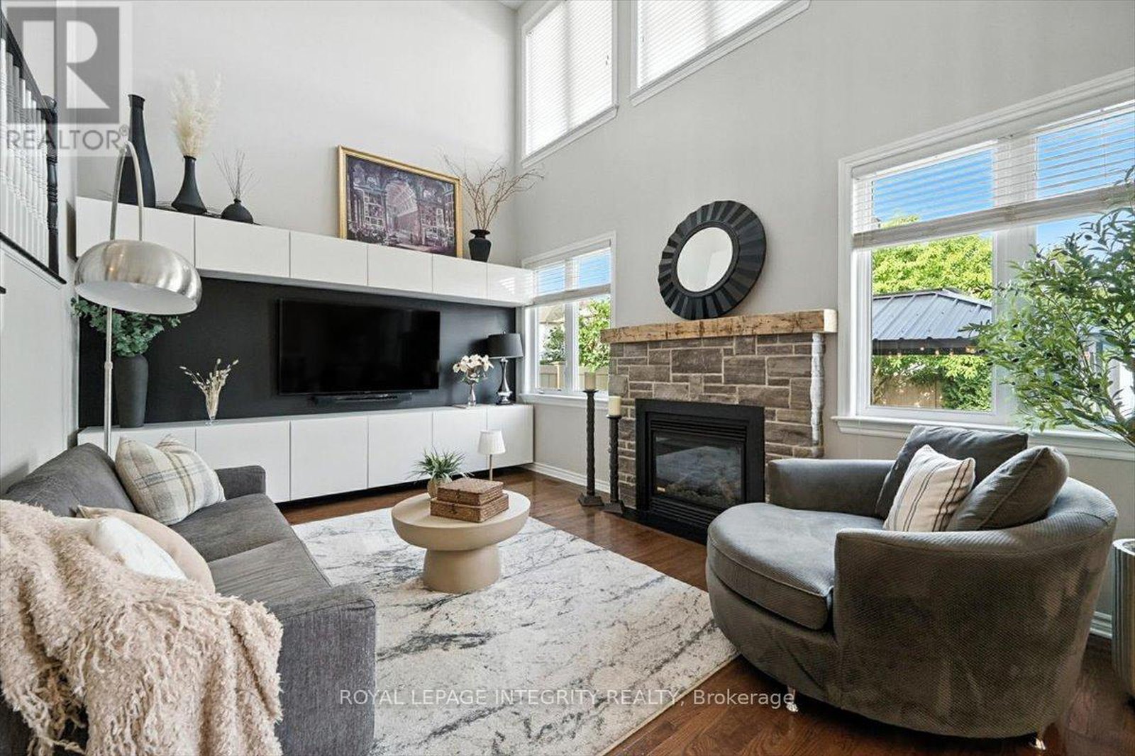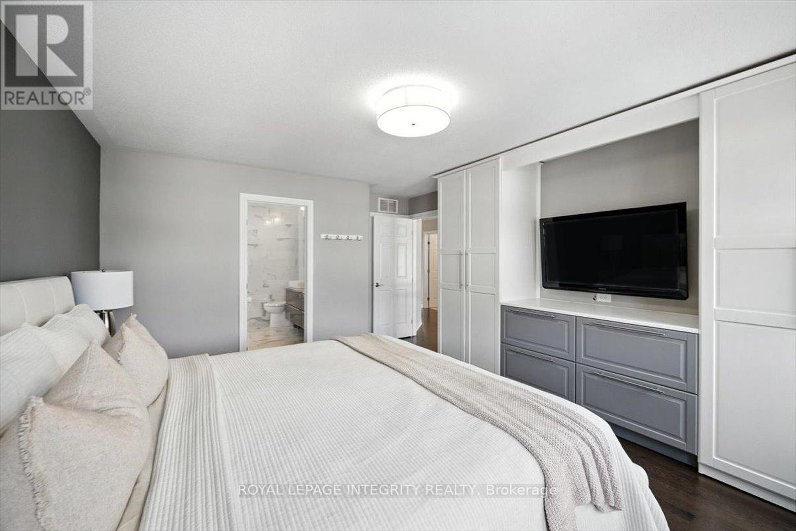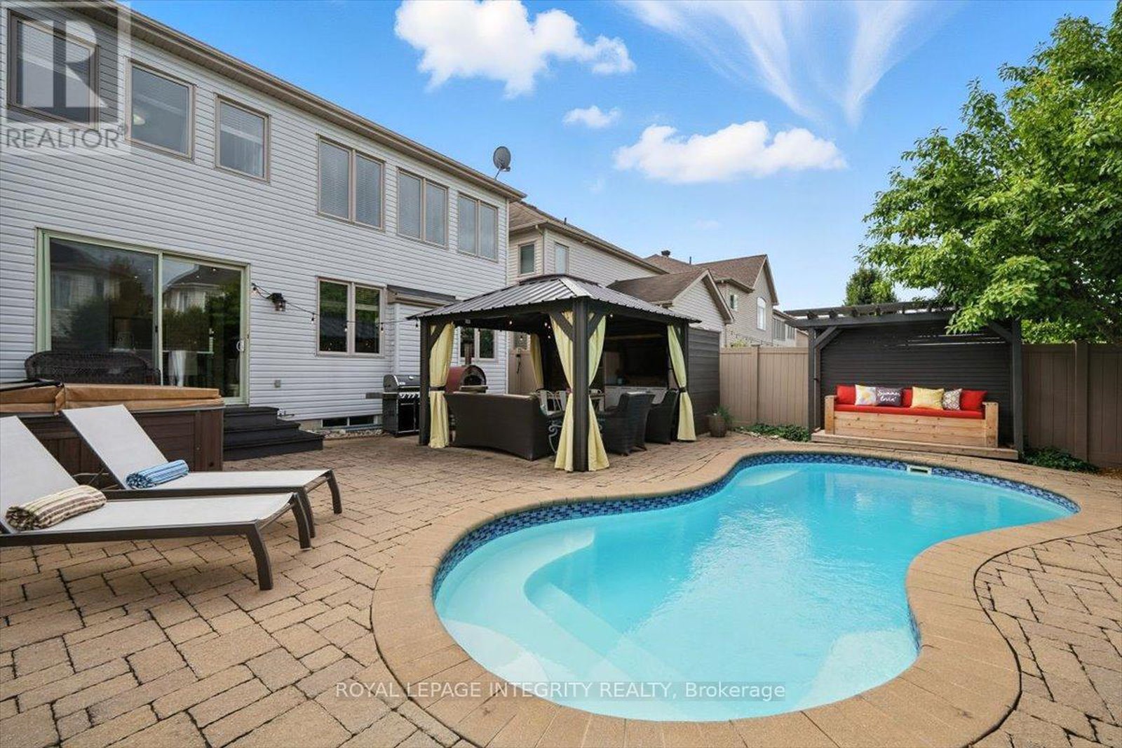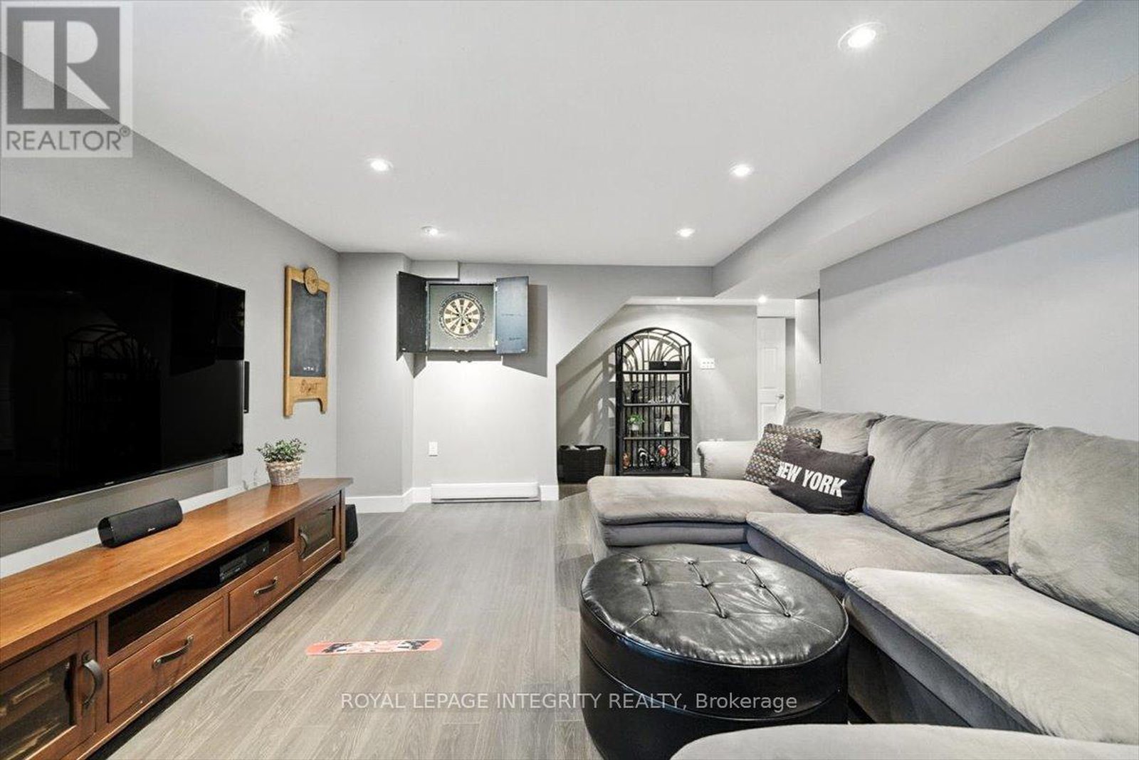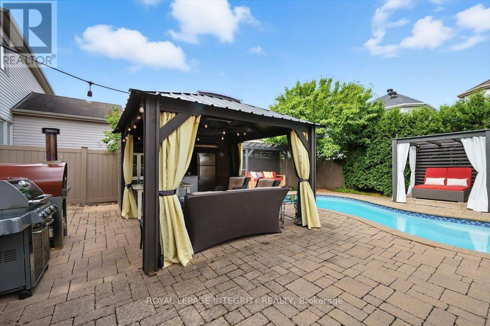 Stunning 4-bedroom, 3-bathroom renovated home with a backyard oasis! The extended interlock driveway and charming front porch create gorgeous curb appeal before stepping inside to an inviting foyer and a bright, functional layout. Gleaming hardwood floors enrich the formal living and dining areas, with a stylish bar accenting the space. Pass by the convenient mudroom/laundry with garage access adding practicality before making your way to the heart of the home. Located at the back of the home, discover a breathtaking redesigned kitchen with white cabinetry, open wood shelving, subway tile backsplash, quartz counters, and an impressive 114" island comfortably seating six, all overlooking the grand family room with fireplace and soaring ceilings open to the second floor. Upstairs, hardwood continues into the spacious primary suite with custom built ins maximizing storage while keeping a sleek, streamlined look to the primary bedroom, along with a walk-in closet and an updated ensuite featuring a glass shower and dual vanity. Three additional bedrooms and a full bathroom complete the level. The finished basement includes a versatile family room with barn-door closets, a bonus gym (or potential 5th bedroom), and generous storage. Step outside to your private retreat with a fully landscaped yard, in-ground pool, gazebo with bar, fridge and TV, garden beds, and a storage shed - perfect for entertaining or relaxing with family. Tucked away on a quiet street and ideally located near schools, parks, shopping, and all amenities, this home is sure to impress and is ready for its new family to enjoy!
