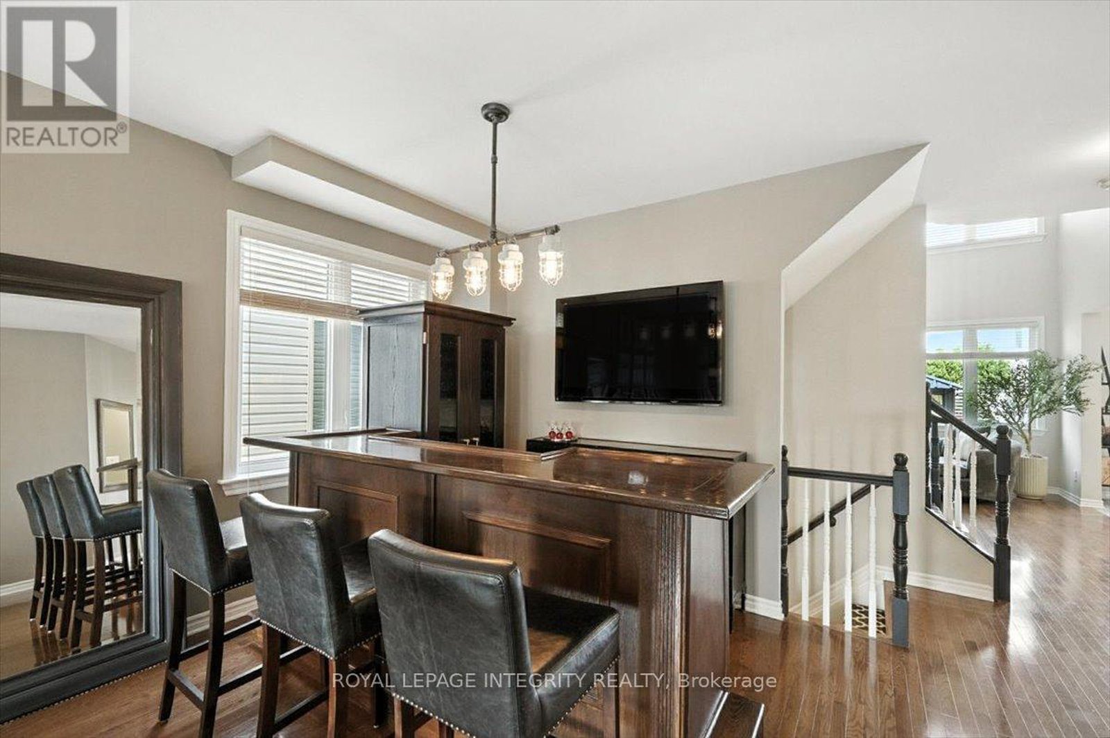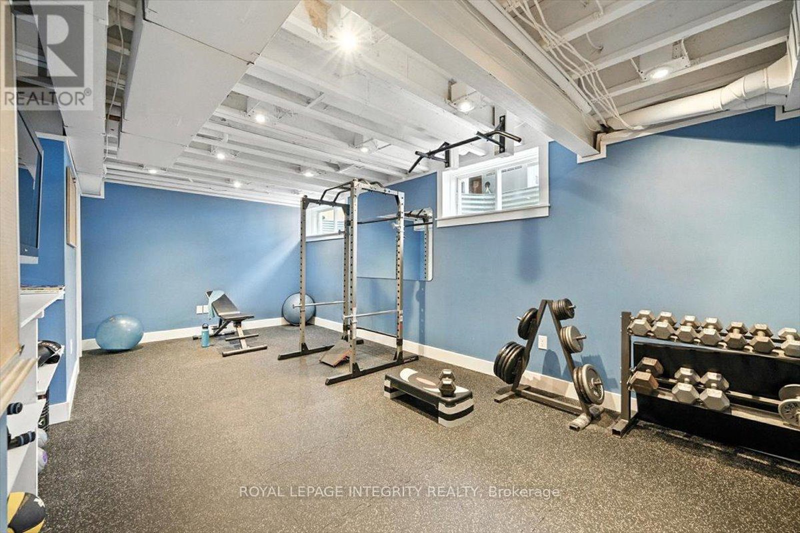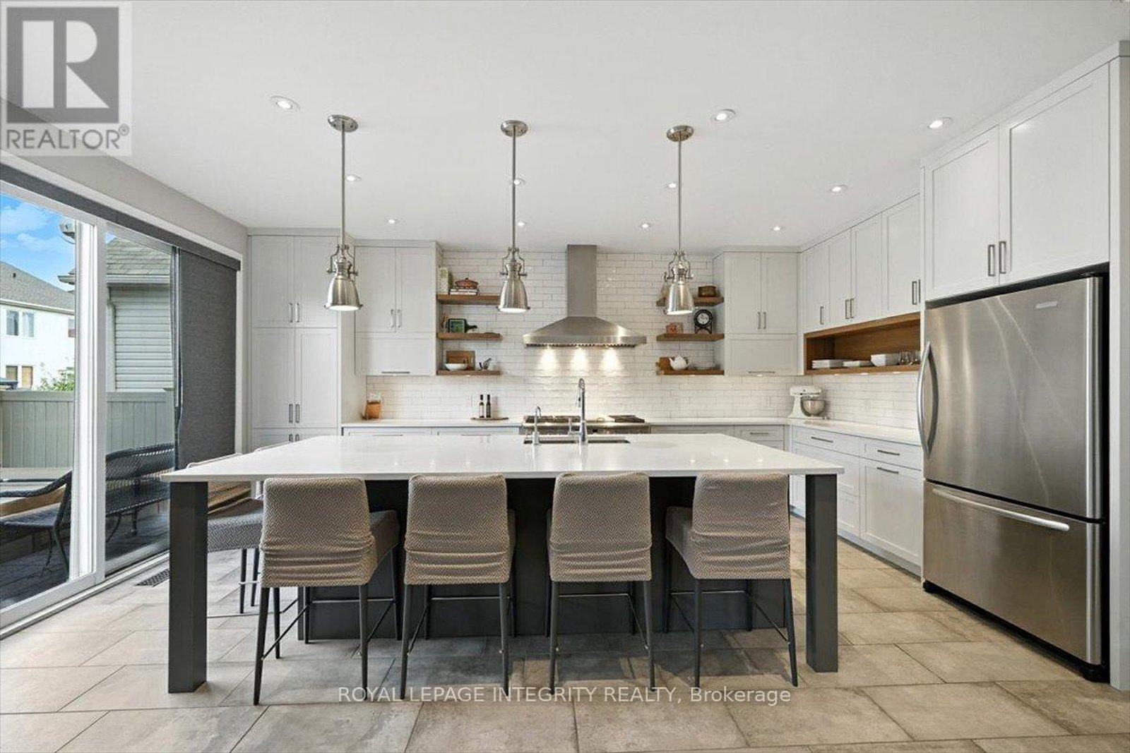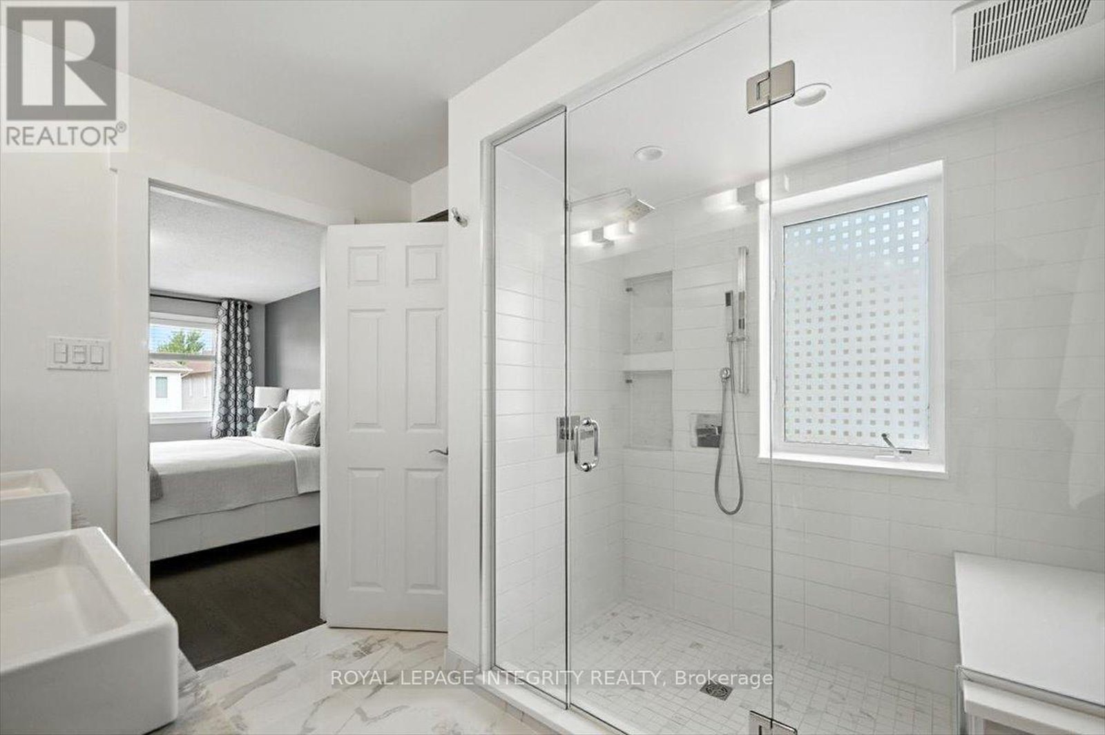 Stunning 4-bedroom, 3-bathroom renovated home with a backyard oasis! The extended interlock driveway and charming front porch create gorgeous curb appeal before stepping inside to an inviting foyer and a bright, functional layout. Gleaming hardwood floors enrich the formal living and dining areas, with a stylish bar accenting the space. Pass by the convenient mudroom/laundry with garage access adding practicality before making your way to the heart of the home. Located at the back of the home, discover a breathtaking redesigned kitchen with white cabinetry, open wood shelving, subway tile backsplash, quartz counters, and an impressive 114" island comfortably seating six, all overlooking the grand family room with fireplace and soaring ceilings open to the second floor. Upstairs, hardwood continues into the spacious primary suite with custom built ins maximizing storage while keeping a sleek, streamlined look to the primary bedroom, along with a walk-in closet and an updated ensuite featuring a glass shower and dual vanity. Three additional bedrooms and a full bathroom complete the level. The finished basement includes a versatile family room with barn-door closets, a bonus gym (or potential 5th bedroom), and generous storage. Step outside to your private retreat with a fully landscaped yard, in-ground pool, gazebo with bar, fridge and TV, garden beds, and a storage shed - perfect for entertaining or relaxing with family. Tucked away on a quiet street and ideally located near schools, parks, shopping, and all amenities, this home is sure to impress and is ready for its new family to enjoy!