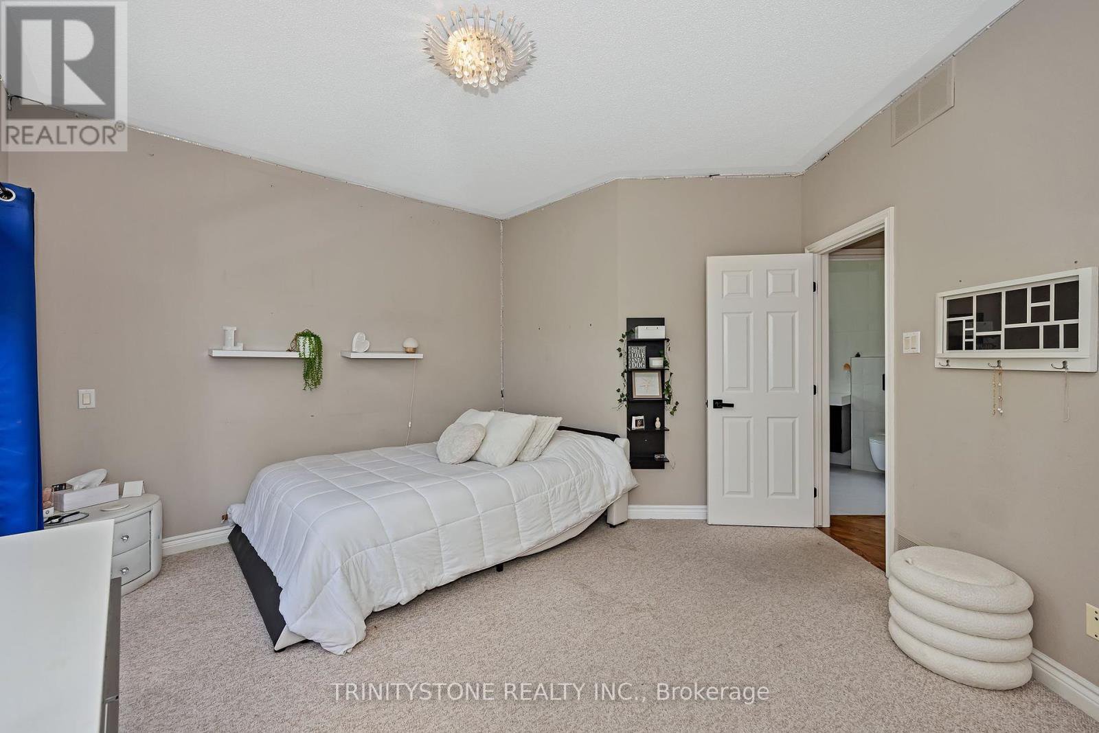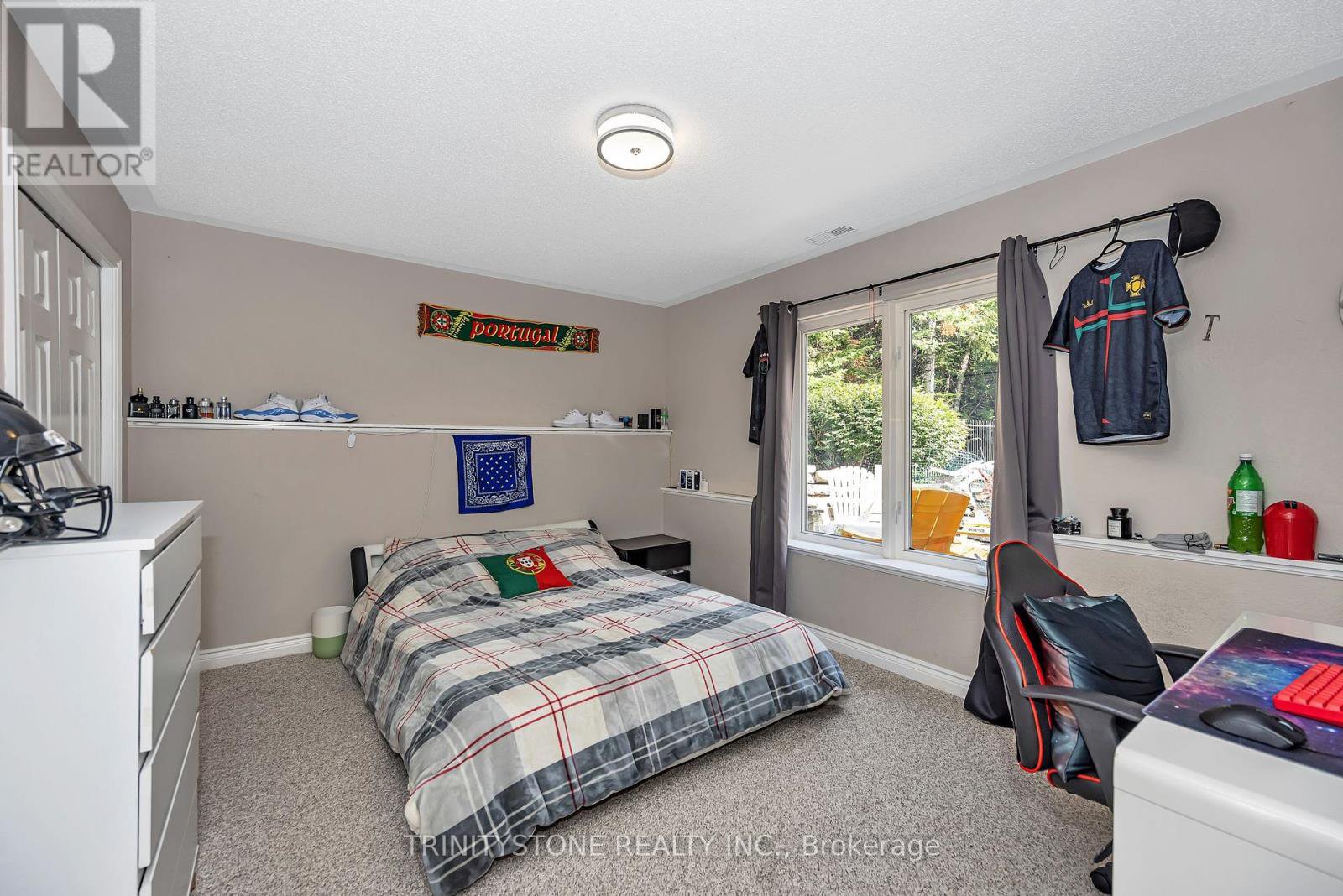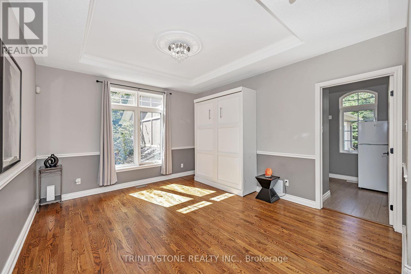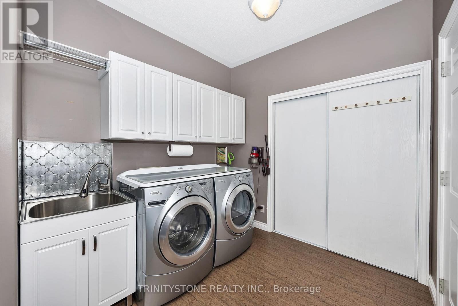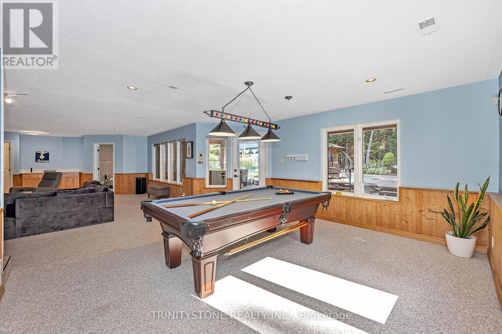 Welcome to this exceptional custom-built bungalow, perfectly nestled on a 2.3 Acre treed lot in a sought-after golf club community! A long, private driveway surrounded by lush landscaping offers ample parking and sets the tone for this inviting property. Step inside to a spacious foyer that opens to a bright and expansive living room, complete with a cozy fireplace and an abundance of natural light. The gourmet kitchen features stainless steel appliances, a breakfast bar, and generous cabinetry, seamlessly blending style and functionality. Adjacent to the kitchen, a sun-filled four-season sunroom with large windows invites you to take in the picturesque views of the backyard. The primary suite offers a walk-in closet and a luxurious 4-piece ensuite with dual sinks and a sleek glass shower. A potential fifth bedroom (or home office), an additional spacious bedroom, and a beautifully designed full bathroom with a freestanding tub and glass shower complete the main floor. A dedicated laundry room adds to the convenience of this level. The fully finished lower level feels like an extension of the main floor, with large windows providing plenty of natural light. Here, you'll find two additional bedrooms, a fitness room, a full 4-piece bathroom, and a walkout to the backyard. The backyard is a true private oasis, designed for relaxation and entertaining. Enjoy the upper-level deck perfect for gatherings, or retreat to the shaded walkout patio below. The stunning inground pool, complete with a waterfall feature, stone patio, and a large gazebo, offers a spa-like experience right at home. Schedule your exclusive showing today and see all this home has to offer!