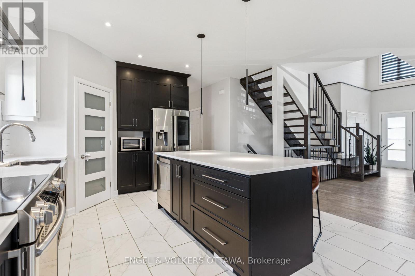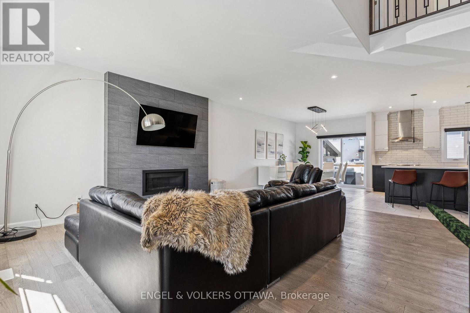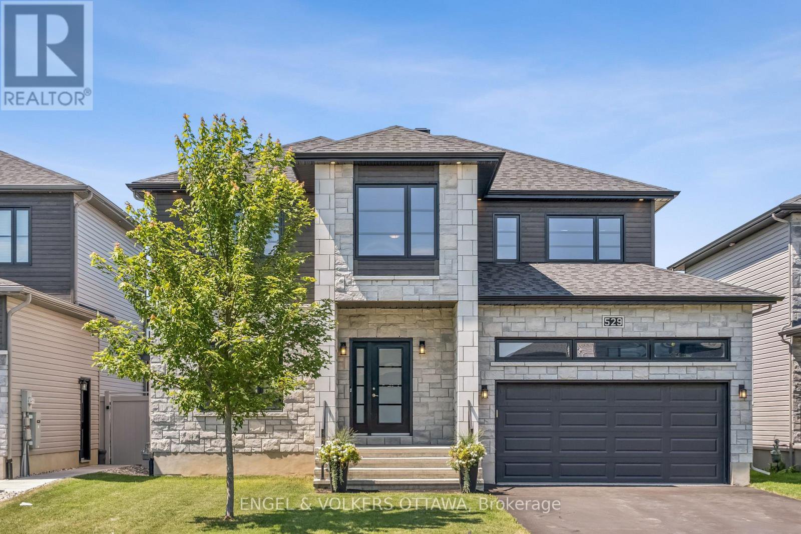 Welcome to 529 Lucent, a stunning and thoughtfully customized Melanie Construction home in Sunset Flats, in the heart of the charming village of Russell. Inspired by the popular Newport and Auberville models, this 3+1 bedroom, 2.5 bathroom home blends timeless design with modern comfort. Step into the open-to-above foyer and a bright, airy main floor featuring 9-foot ceilings, warm hardwood floors, and sleek pot lights throughout. At the heart of the home is the elegant kitchen with quartz countertops, a large island, stainless steel appliances, a farmhouse sink with a window view, and a walk-in pantry that's perfect for busy mornings or entertaining. The living room centers around a striking floor-to-ceiling tiled fireplace, creating a cozy yet contemporary atmosphere. Upstairs, three spacious bedrooms include a serene primary suite with a large walk-in closet and spa-inspired ensuite with a glass walk-in shower, freestanding tub, and dual vanities. The finished basement extends the living space with a generous rec room, a den, and a fourth bedroom that works well for guests or a home office. Outside, enjoy west-facing sunsets in the fully fenced backyard with an extended deck and gas BBQ hookup. A heated, extended garage with man door and main-level laundry add everyday convenience. Located on a quiet, family-friendly street just steps from the fitness trail and a short drive to Russell's future sports complex, parks, and local shops, this home is ideal for those looking to settle into both a beautiful home and a thriving community within easy commuting distance to the city.