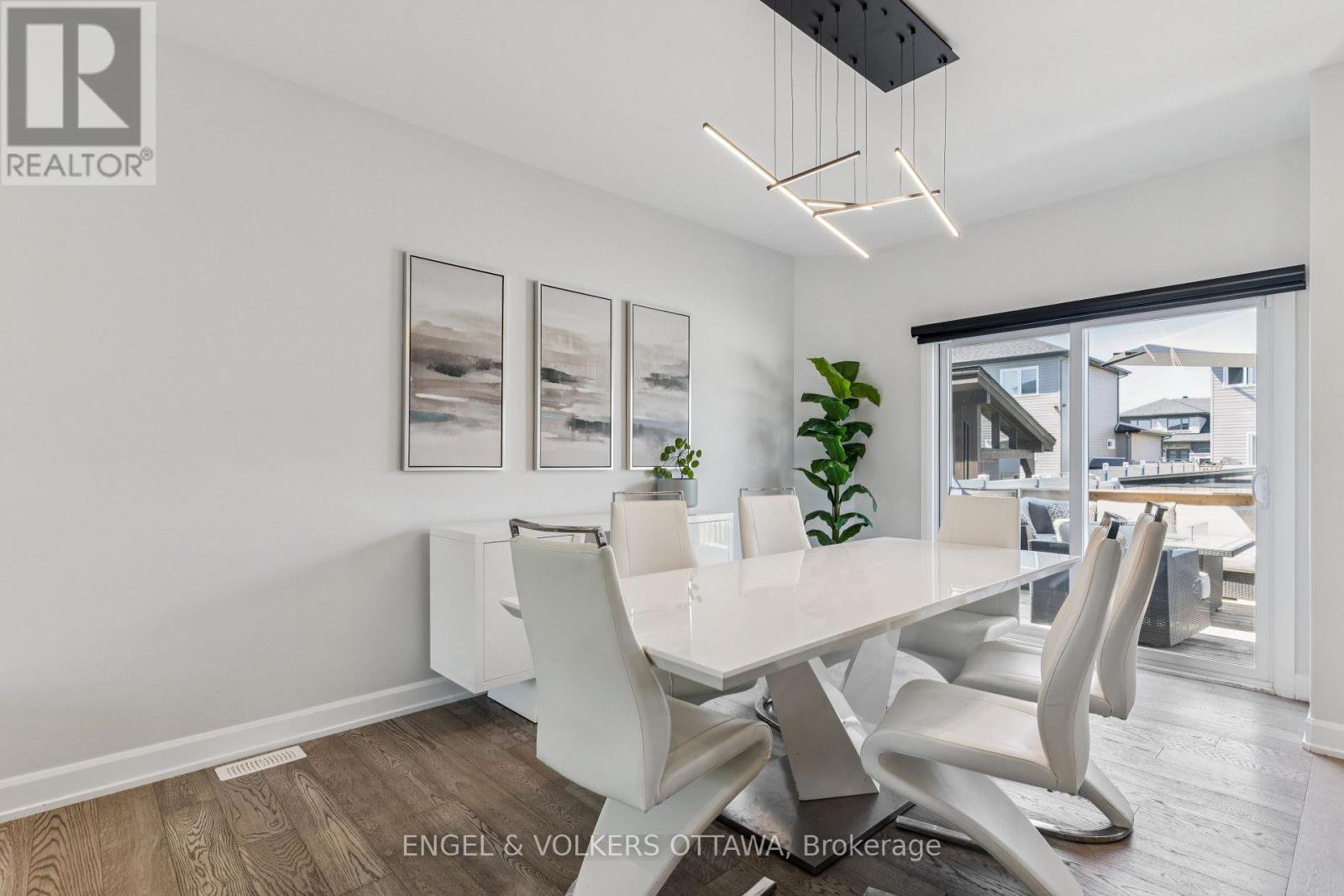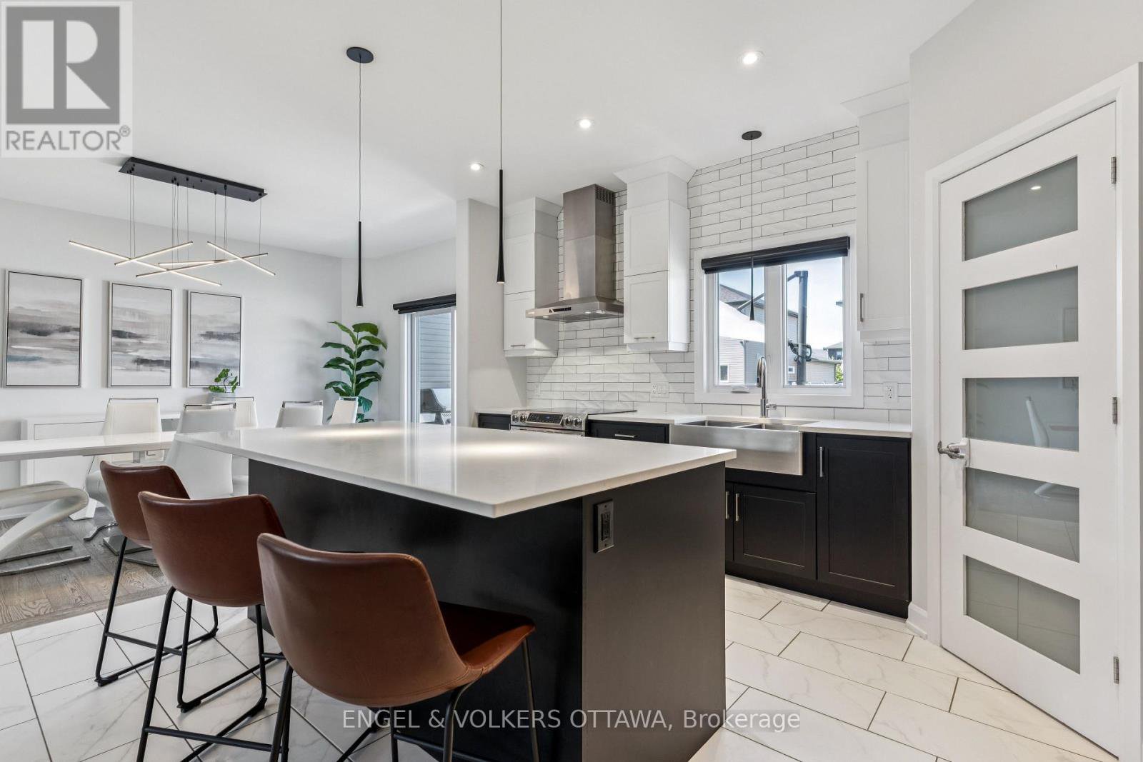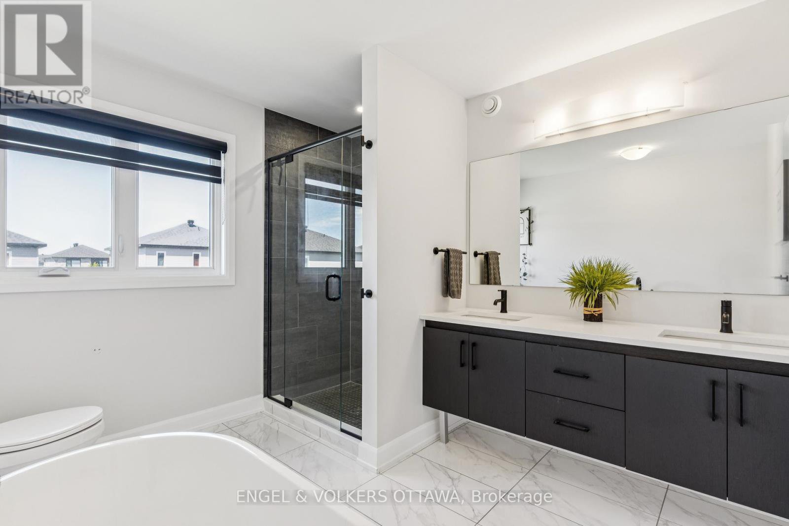 Welcome to 529 Lucent, a stunning and thoughtfully customized Melanie Construction home in Sunset Flats, in the heart of the charming village of Russell. Inspired by the popular Newport and Auberville models, this 3+1 bedroom, 2.5 bathroom home blends timeless design with modern comfort. Step into the open-to-above foyer and a bright, airy main floor featuring 9-foot ceilings, warm hardwood floors, and sleek pot lights throughout. At the heart of the home is the elegant kitchen with quartz countertops, a large island, stainless steel appliances, a farmhouse sink with a window view, and a walk-in pantry that's perfect for busy mornings or entertaining. The living room centers around a striking floor-to-ceiling tiled fireplace, creating a cozy yet contemporary atmosphere. Upstairs, three spacious bedrooms include a serene primary suite with a large walk-in closet and spa-inspired ensuite with a glass walk-in shower, freestanding tub, and dual vanities. The finished basement extends the living space with a generous rec room, a den, and a fourth bedroom that works well for guests or a home office. Outside, enjoy west-facing sunsets in the fully fenced backyard with an extended deck and gas BBQ hookup. A heated, extended garage with man door and main-level laundry add everyday convenience. Located on a quiet, family-friendly street just steps from the fitness trail and a short drive to Russell's future sports complex, parks, and local shops, this home is ideal for those looking to settle into both a beautiful home and a thriving community within easy commuting distance to the city.