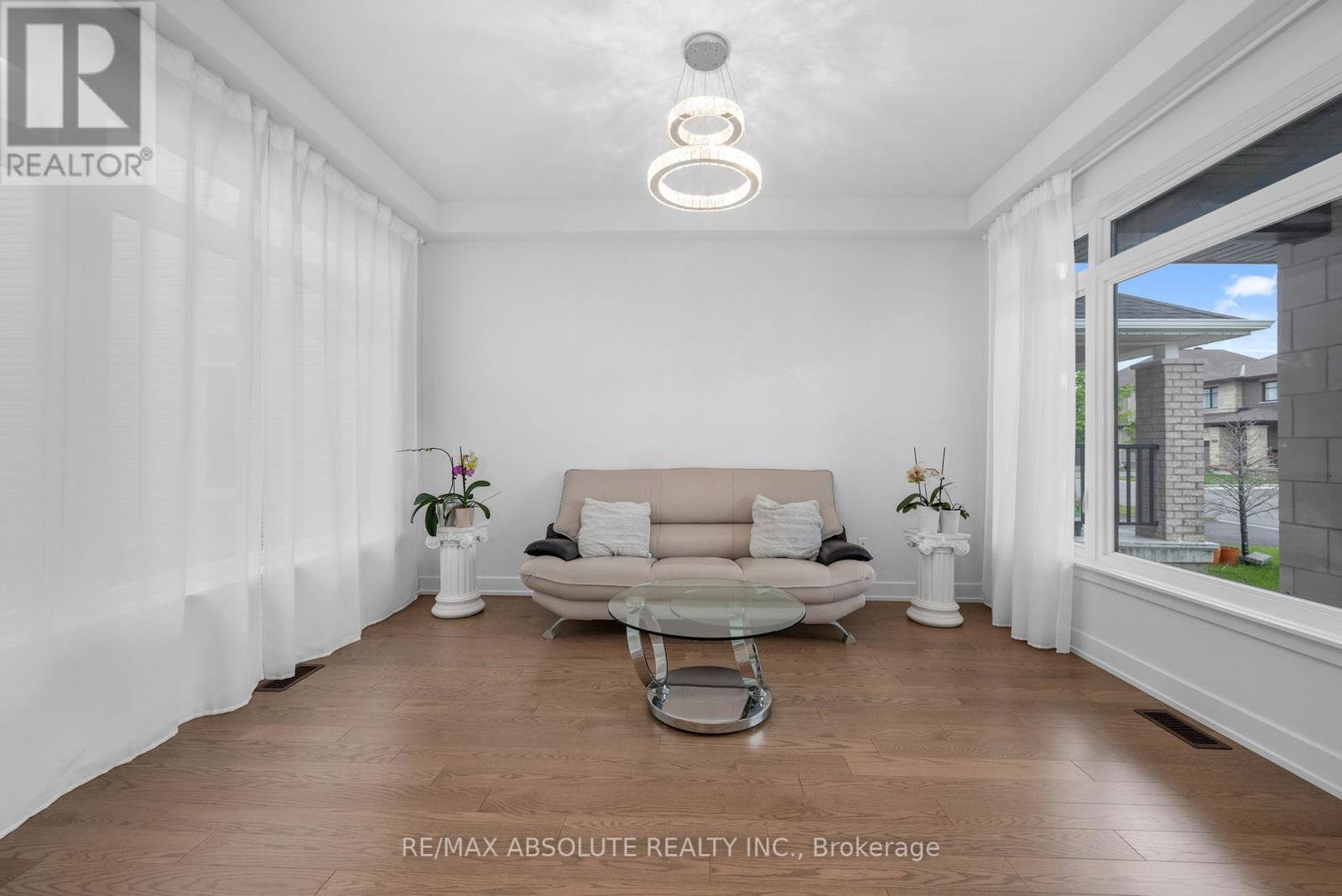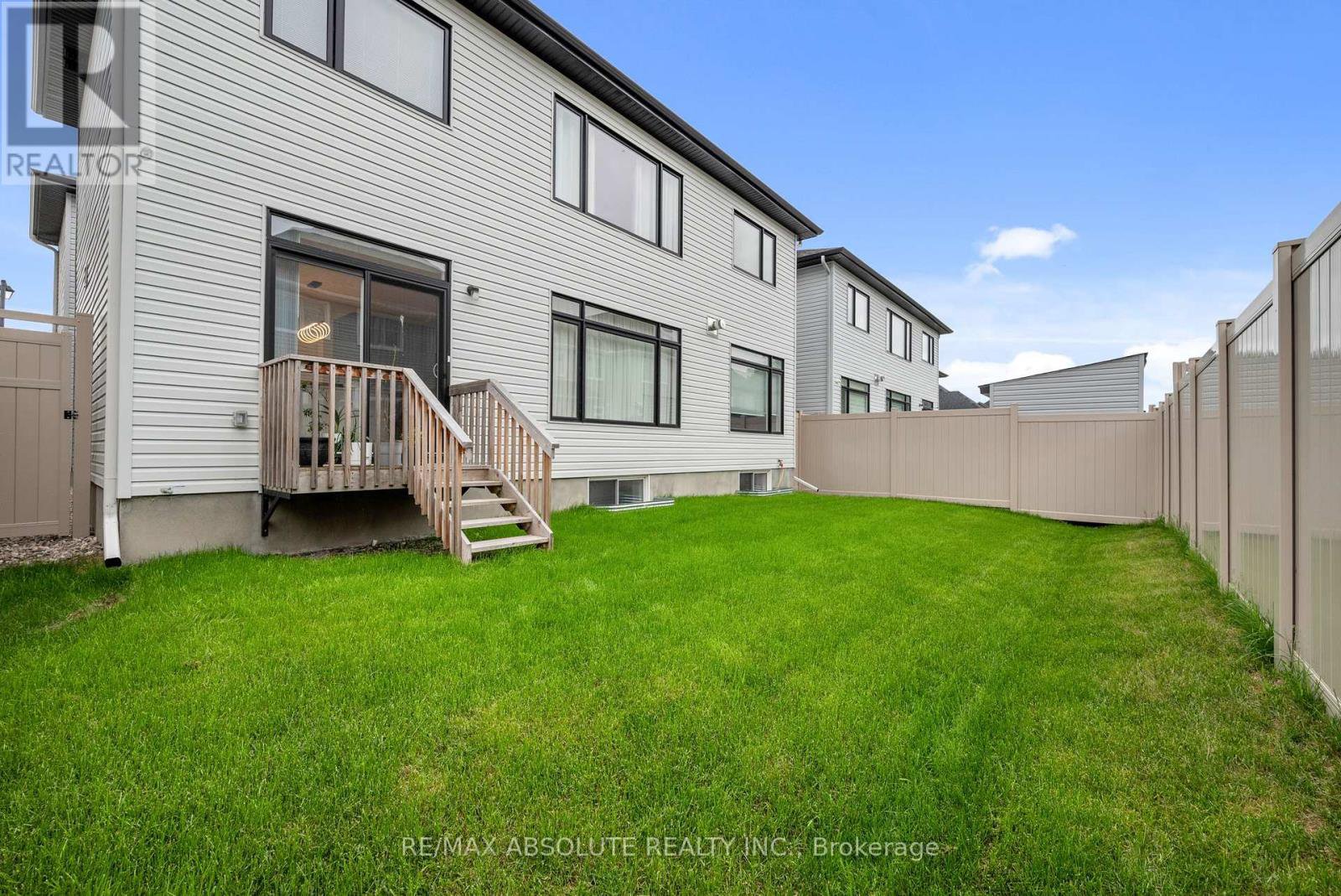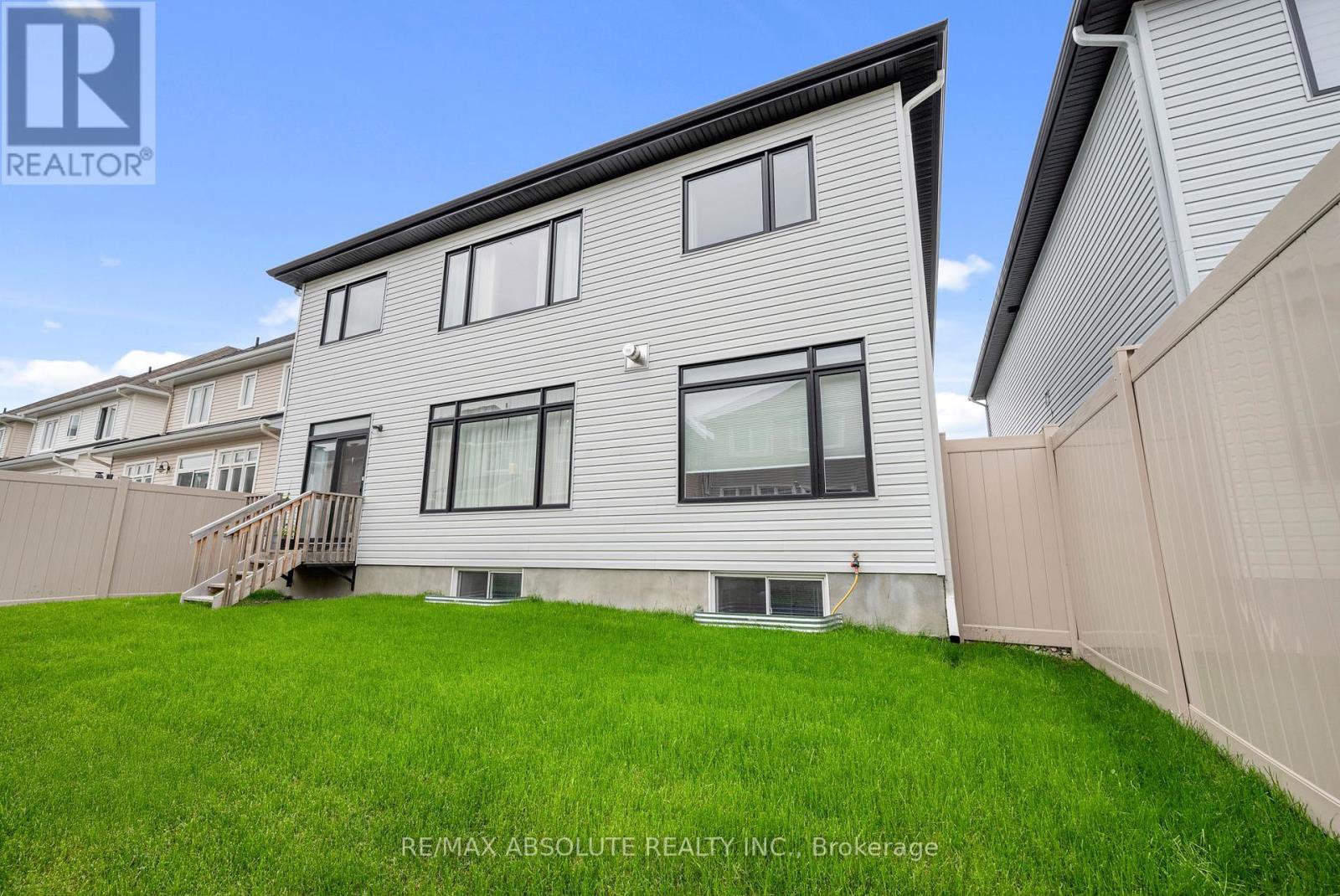 This beautifully upgraded Claridge Lockport II offes over 3,600 sq. ft. above grade, plus a well designed rec room in basement. Perfectly situated in one of Stittsville's most family-friendly neighbourhoods, this home blends space, style, and comfort. Step inside and immediately feel the spaciousness of this thoughtfully designed layout. The bright foyer opens to a separate family room filled with natural light from large windows, creating an inviting first impression. As you move through the home, the elegant formal dining area welcomes you with soaring vaulted ceilings and rich, upgraded wide-plank hardwood floors that seamlessly flow throughout the main level. At the heart of the home is the expansive kitchen, ideal for both everyday living and entertaining. It features quartz countertops, a large island with seating, and ample cabinetry. The kitchen flows effortlessly into the living room, where a cozy gas fireplace creates the perfect gathering spot. A casual dining area just off the kitchen provides access to the fully fenced backyard. Adjacent to the main living area, a quiet office or den with its own fireplace offers the perfect space to work from home or unwind in peace. Nine-foot ceilings on the main floor enhance the openness and upscale feel of the home. Upstairs, the spacious primary suite offers a generous walk-in closet and a luxurious ensuite with a double vanity, freestanding soaker tub, and glass-enclosed shower. Three additional bedrooms are bright and well-sized, complemented by a stylish main bath. The finished basement provides incredible flexibility. Whether you envision a home theatre, gym, or playroom there's space for it all. Additional highlights include a double-car garage, upgraded lighting, central air conditioning, and fenced yard. All of this is located just minutes from top-rated schools, parks, trails, shopping, and public transit.