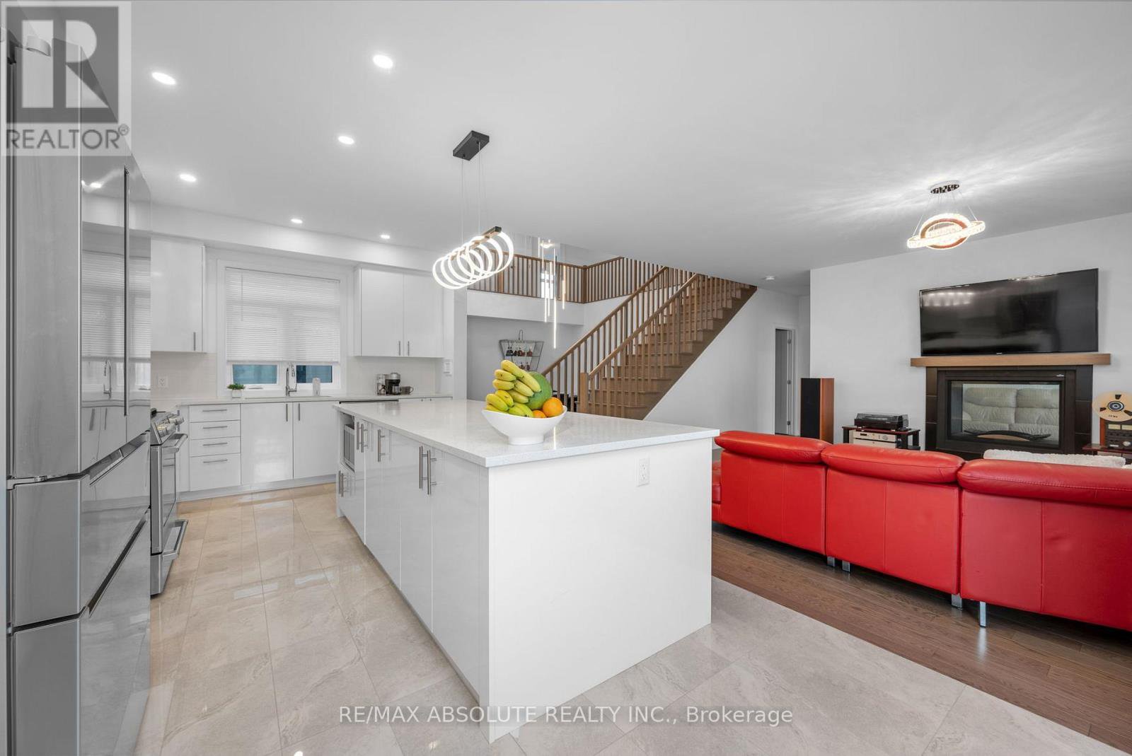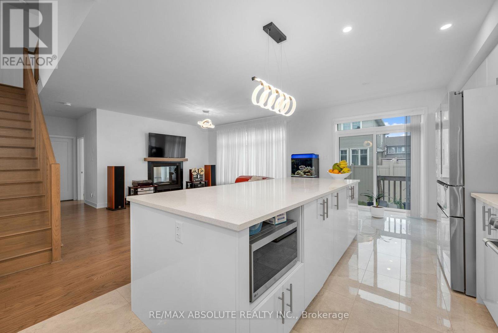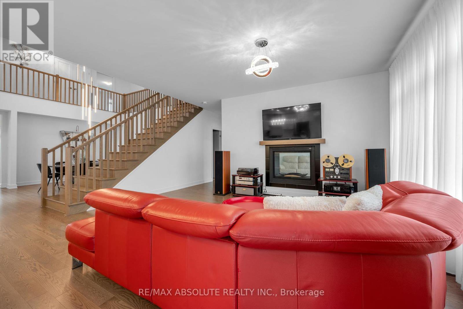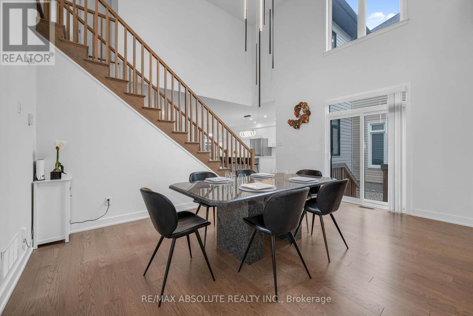 This beautifully upgraded Claridge Lockport II offes over 3,600 sq. ft. above grade, plus a well designed rec room in basement. Perfectly situated in one of Stittsville's most family-friendly neighbourhoods, this home blends space, style, and comfort. Step inside and immediately feel the spaciousness of this thoughtfully designed layout. The bright foyer opens to a separate family room filled with natural light from large windows, creating an inviting first impression. As you move through the home, the elegant formal dining area welcomes you with soaring vaulted ceilings and rich, upgraded wide-plank hardwood floors that seamlessly flow throughout the main level. At the heart of the home is the expansive kitchen, ideal for both everyday living and entertaining. It features quartz countertops, a large island with seating, and ample cabinetry. The kitchen flows effortlessly into the living room, where a cozy gas fireplace creates the perfect gathering spot. A casual dining area just off the kitchen provides access to the fully fenced backyard. Adjacent to the main living area, a quiet office or den with its own fireplace offers the perfect space to work from home or unwind in peace. Nine-foot ceilings on the main floor enhance the openness and upscale feel of the home. Upstairs, the spacious primary suite offers a generous walk-in closet and a luxurious ensuite with a double vanity, freestanding soaker tub, and glass-enclosed shower. Three additional bedrooms are bright and well-sized, complemented by a stylish main bath. The finished basement provides incredible flexibility. Whether you envision a home theatre, gym, or playroom there's space for it all. Additional highlights include a double-car garage, upgraded lighting, central air conditioning, and fenced yard. All of this is located just minutes from top-rated schools, parks, trails, shopping, and public transit.