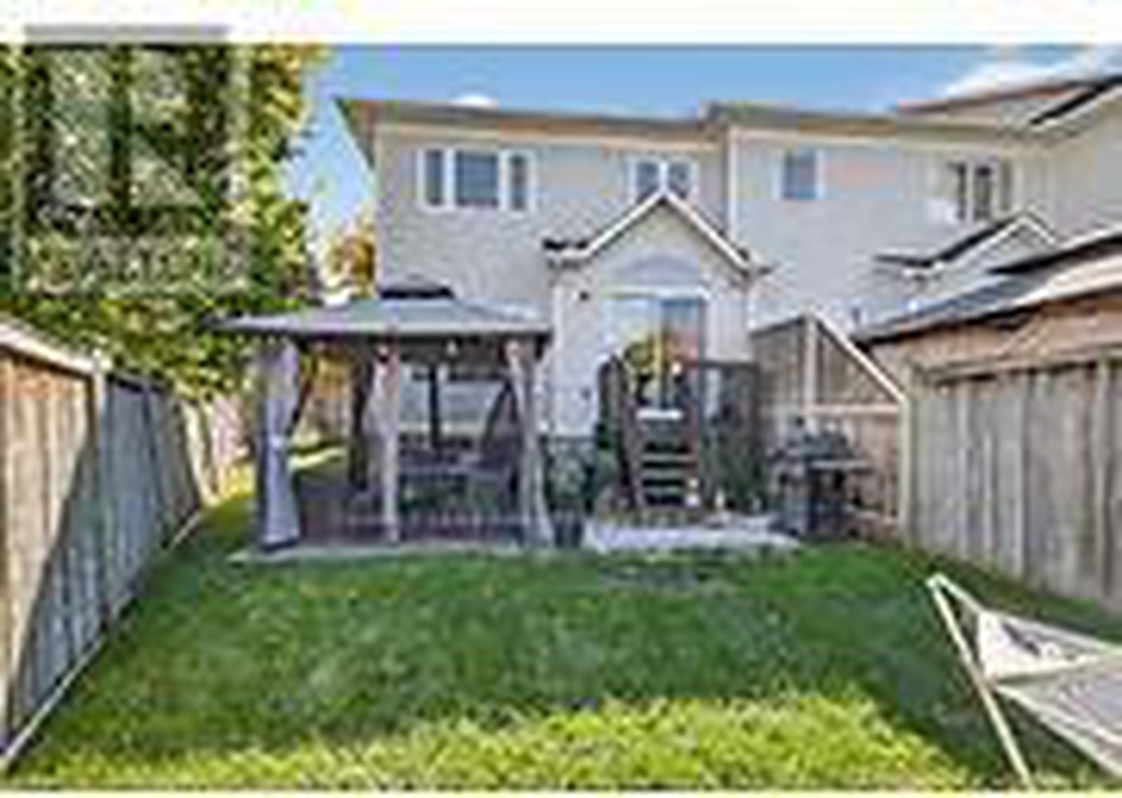 Welcome home! This beautiful freehold Minto Fifth Avenue end unit model is well-maintained and ideally located in the heart of family-friendly Emerald Meadows. This townhome sits on a spacious corner lot, offering added privacy and an expanded side yard perfect for outdoor play or entertaining. Inside, you'll find tasteful updates including refinished hardwood floors, ceramic tile, and elegant crown and wall moulding throughout the main level. The bright galley-style kitchen offers a clear view of the backyard and is filled with natural light throughout the day. The second floor features three generously sized bedrooms, including a primary suite with a walk-in closet and private ensuite. Recent updates provide peace of mind: Roof with 42-year shingles (2016) Upper-level windows and carpets (2016) Main floor and basement windows (2022) Furnace and heat pump (2024). All appliances are included. Located within walking distance to schools, parks, and public transit, this home combines comfort, convenience, and long-term value. Measurements are approximate as per builders floor plan.