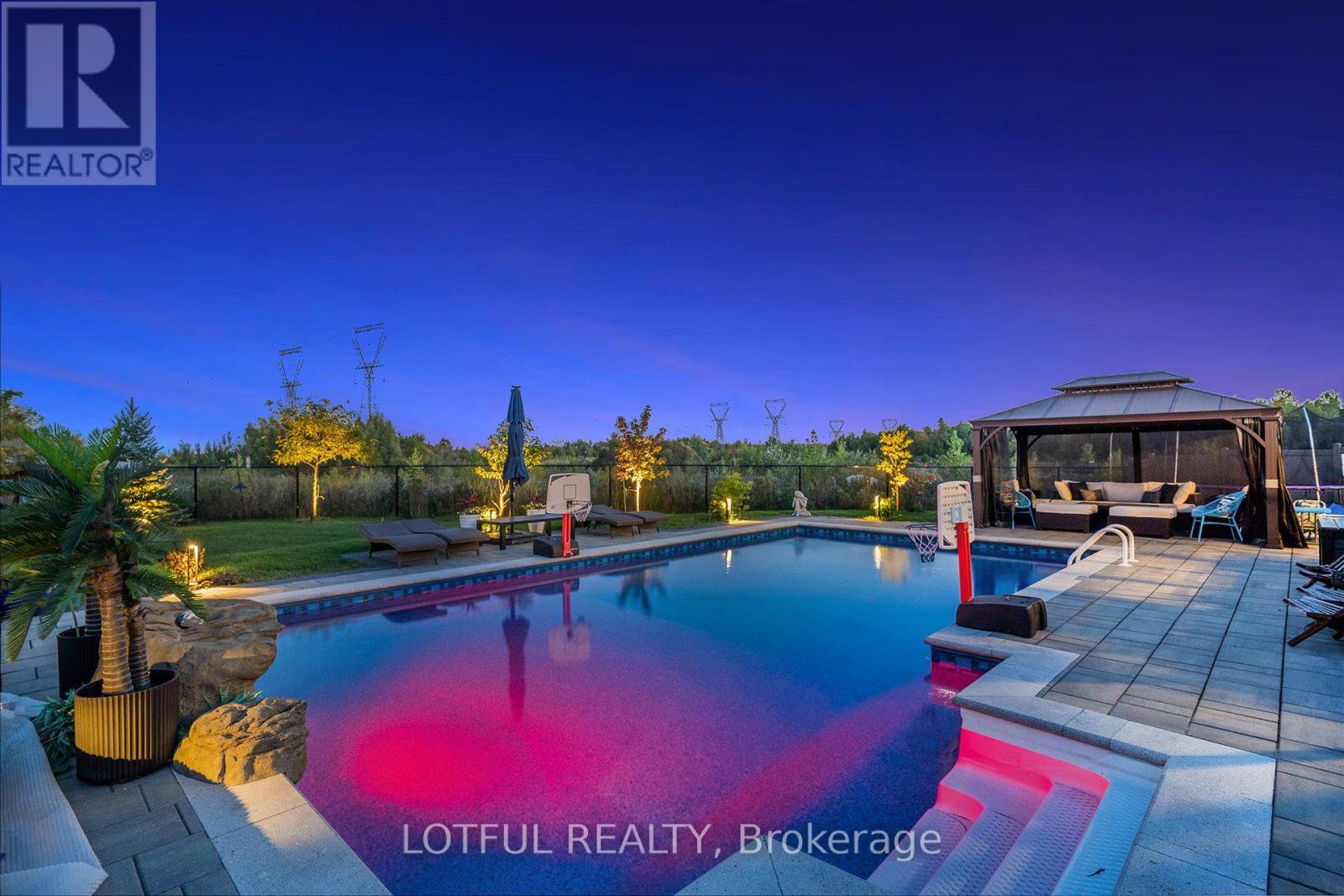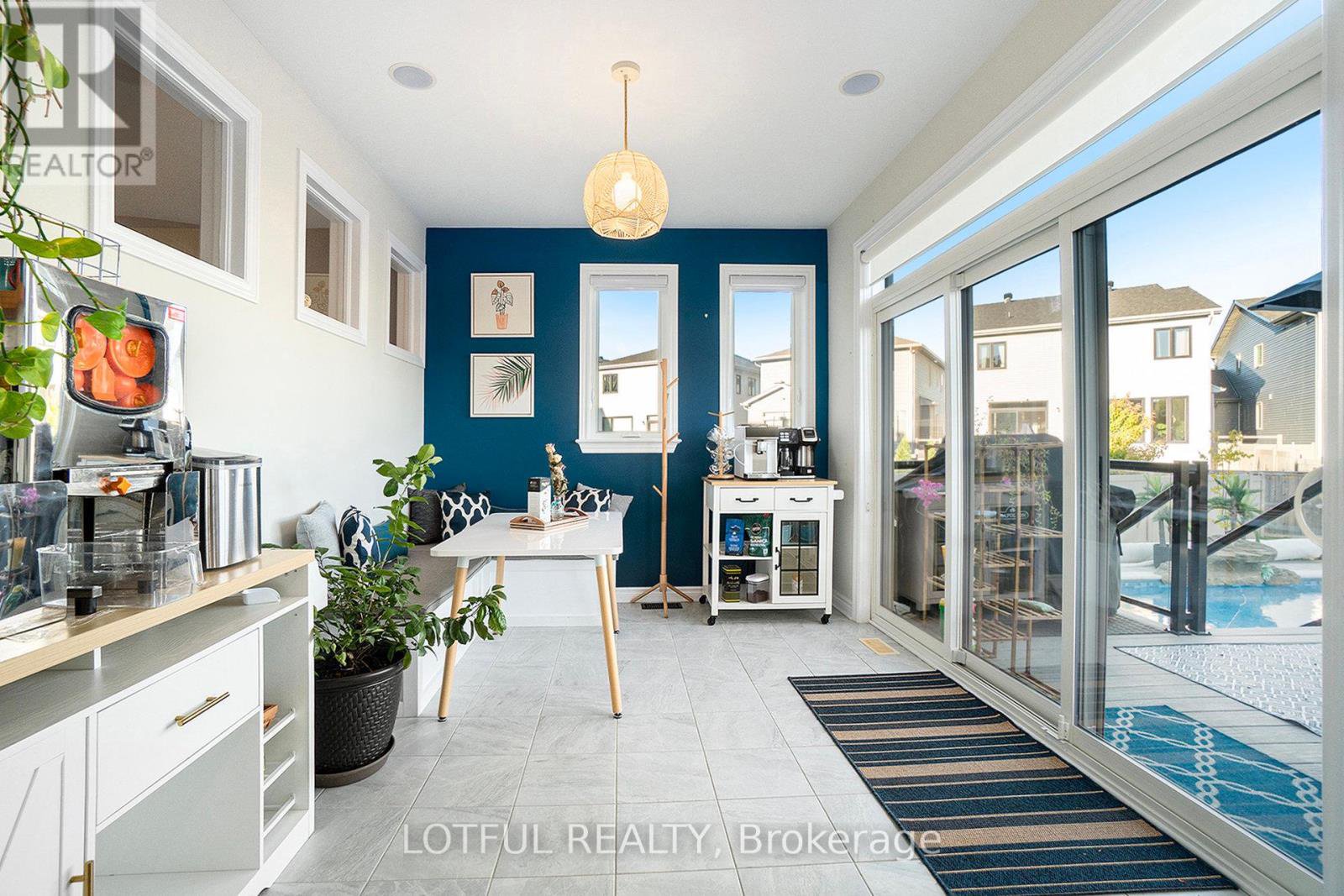 Welcome to this stunning 4,383 sq. ft. detached home in the heart of Stittsville, offering 5 bedrooms and 5 bathrooms. The main floor boasts a grand tiled entrance, gleaming hardwood floors, an upgraded kitchen with extended cabinetry, large island with seating, coffee bar, Samsung stainless steel appliances, and expansive windows that flood the space with natural light. Enjoy the cozy gas fireplace and the beautiful sunroom leading to your backyard retreat, complete with an inground pool, stone patio, outdoor lighting, fenced yard, outdoor shower, shed, gazebo and beautiful garden. Upstairs features a luxurious primary suite with two walk-in closets and a 5-piece ensuite, plus 4 additional bedrooms, 2 full baths, and a convenient laundry room. The lower level offers a spacious rec room, storage, utility space, and another full bath. A perfect home for family living and entertaining come see it today!