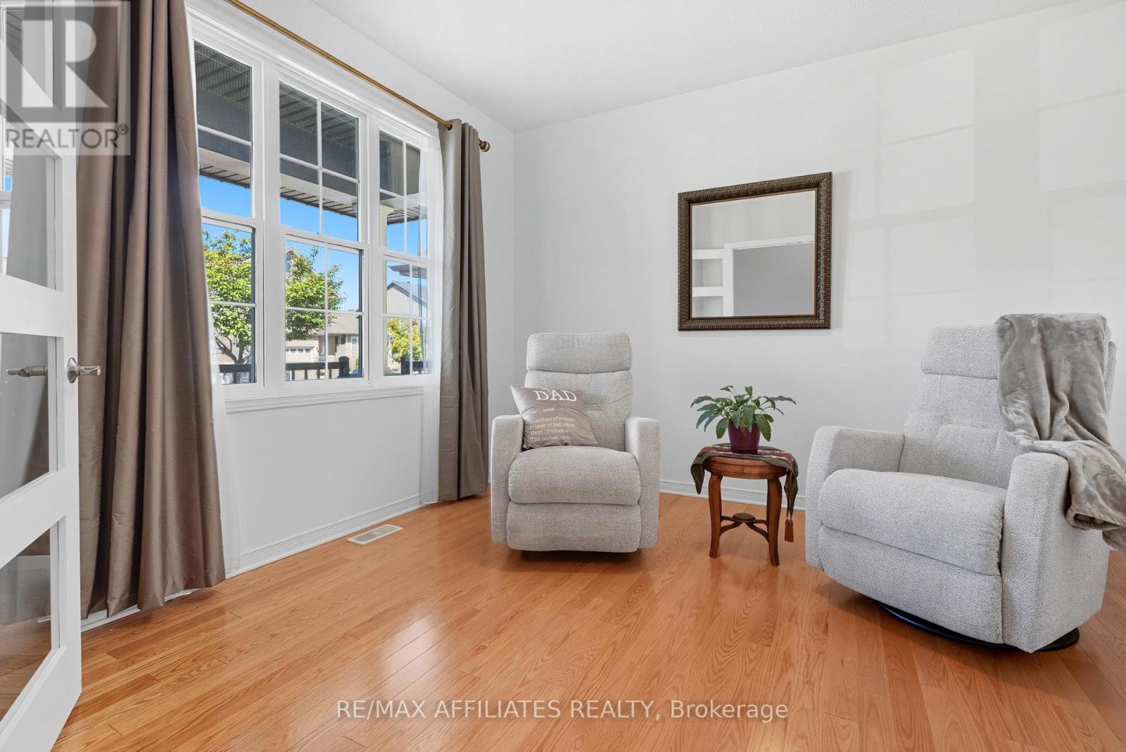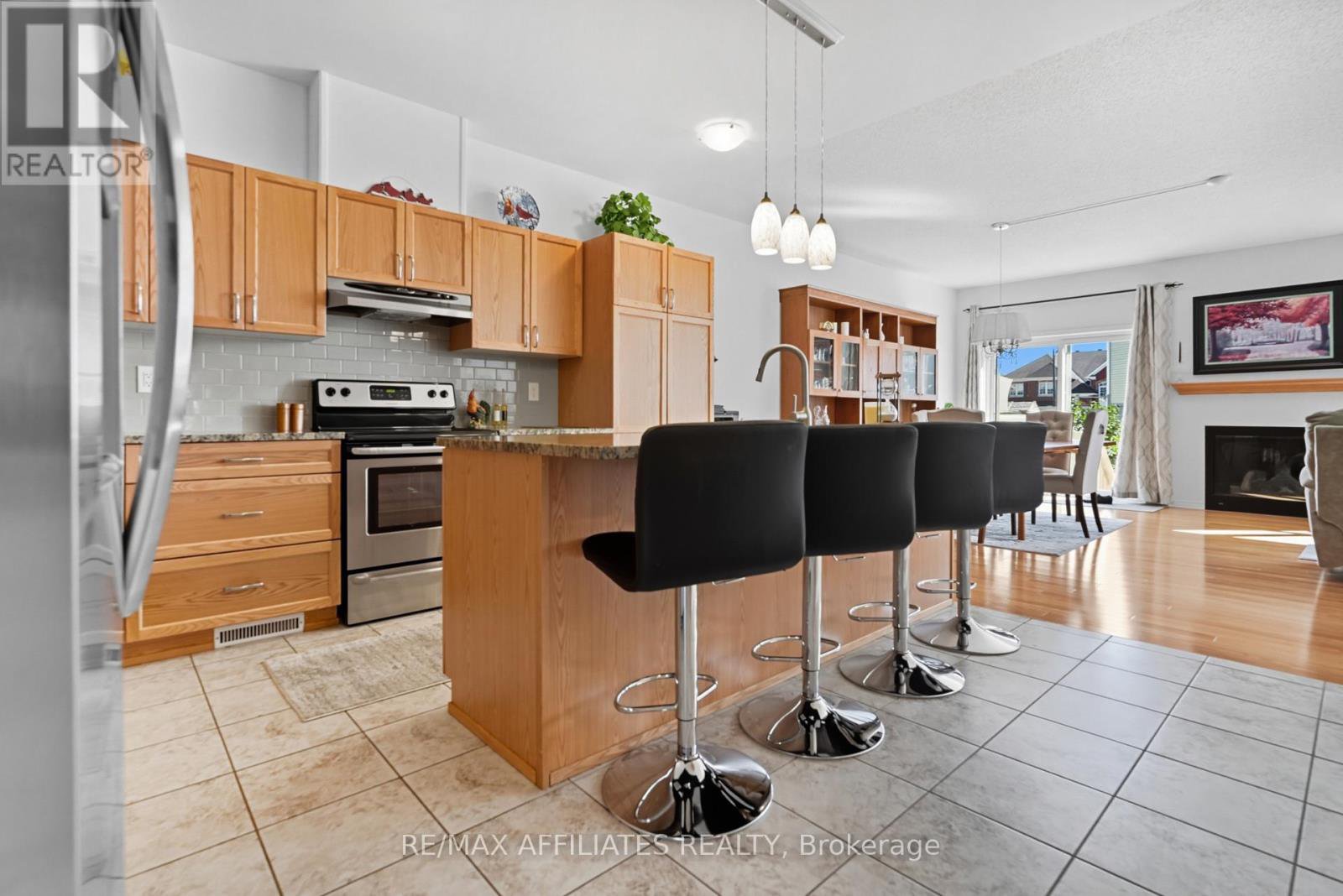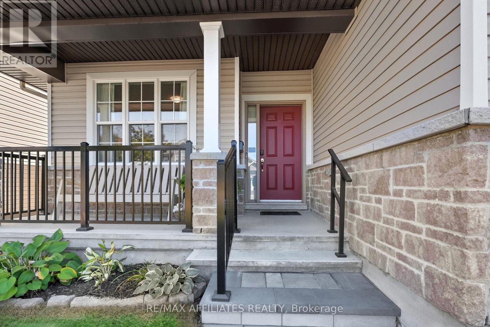 Welcome to this beautifully maintained home in Blackstone, one of Kanata/Stittsville's most sought-after neighbourhoods. This Bungalow has great curb appeal, with a deep front porch perfect for watching sunsets. The porch is upgraded with aluminum railings, and the modern interlocked walkway sets the tone. The South-facing backyard provides sunshine all day, perfect for gardening and outdoor living, complete with established flowerbeds throughout the property. With over 2670 sqft inside, French doors open to a spacious office or den that can also be converted to serve as a 4th bedroom. The open-concept main floor is perfect for entertaining. It showcases a cozy gas fireplace, a chef's kitchen with an oversized island comfortably seating four, and ample cabinetry. A custom-built-in hutch adds charm and function to the dining area, ideal for glassware, art, or a liquor cabinet. Sunlight floods the kitchen, dining, and living rooms through large windows and a patio door leading to the fenced backyard with a natural gas BBQ hookup. The spacious primary suite features a walk-in closet and a 4-piece ensuite spa, with a soaker tub and a standing shower. Also on the main level, a second bedroom, a 4-piece washroom, main floor laundry, mudroom, and inside entry to the double car garage complete the level. All of the Bathrooms are equipped with grab bars for added stability for those who appreciate it. The finished lower level offers a large family room with an electric fireplace with custom mantle, a flex space to play, and 3rd bedroom with double closets. As a bonus, downstairs outside the bedroom, there is also a rough-in for another bathroom (vanity & sink included). A massive storage area holds endless potential for hobbies, fitness, or future income suite or multifamily living. All this in a family-friendly community close to top schools, parks, trails, transit, and shopping. Move-in ready with thoughtful upgrades throughout, this home truly has it all! 2679