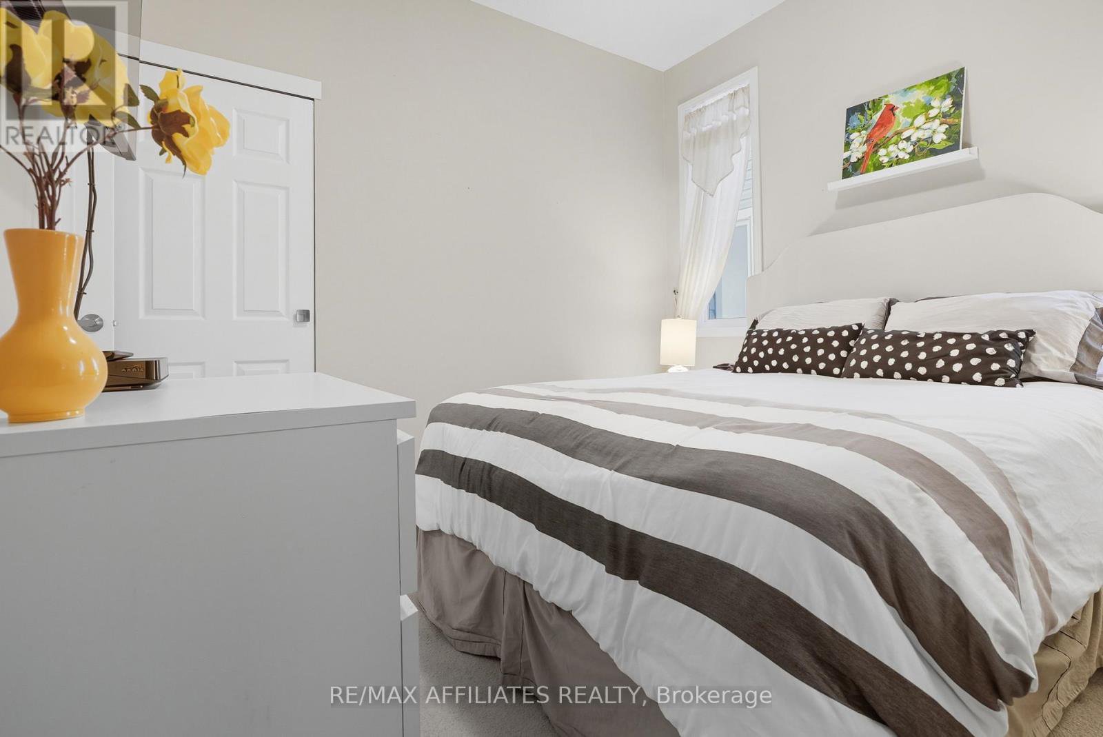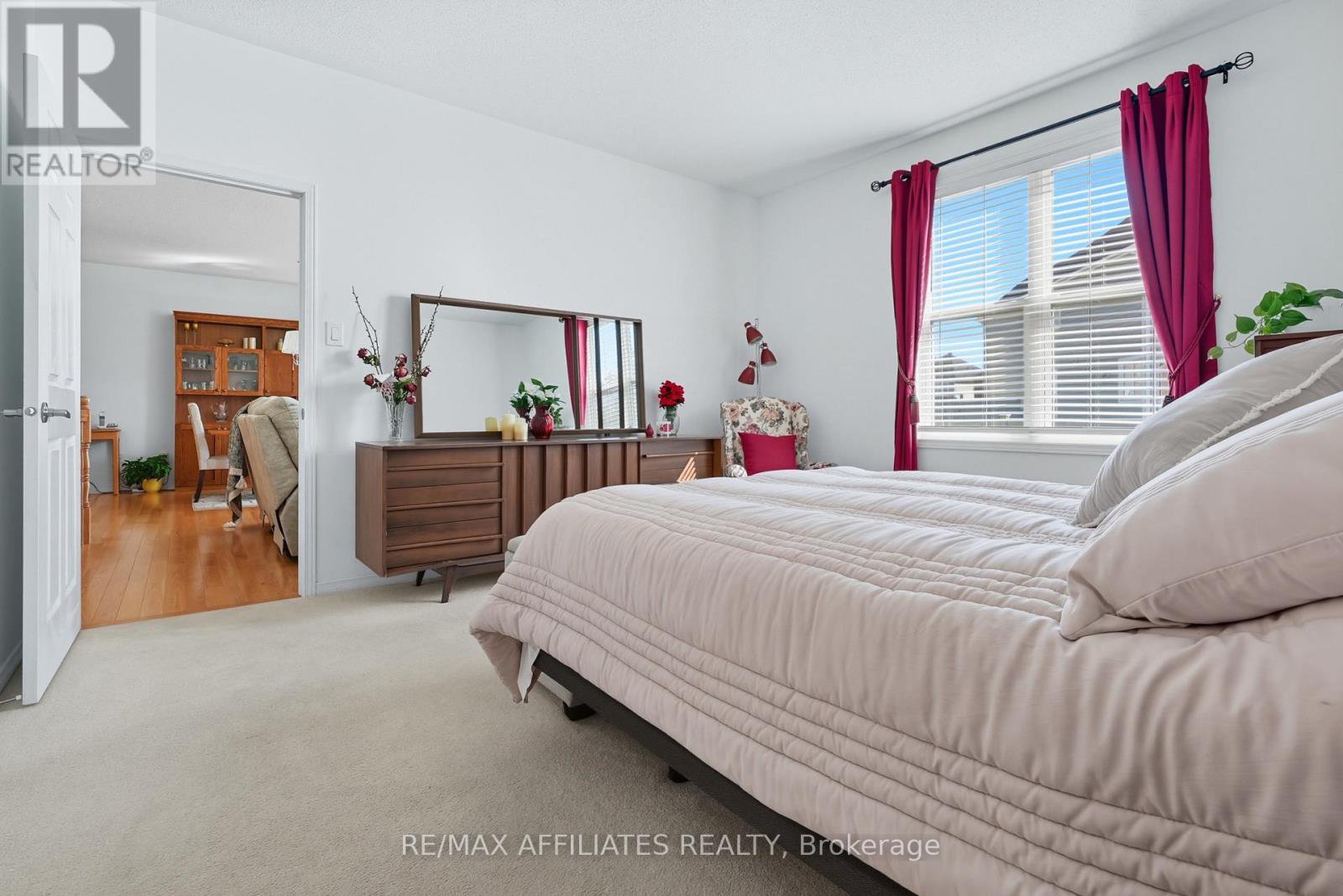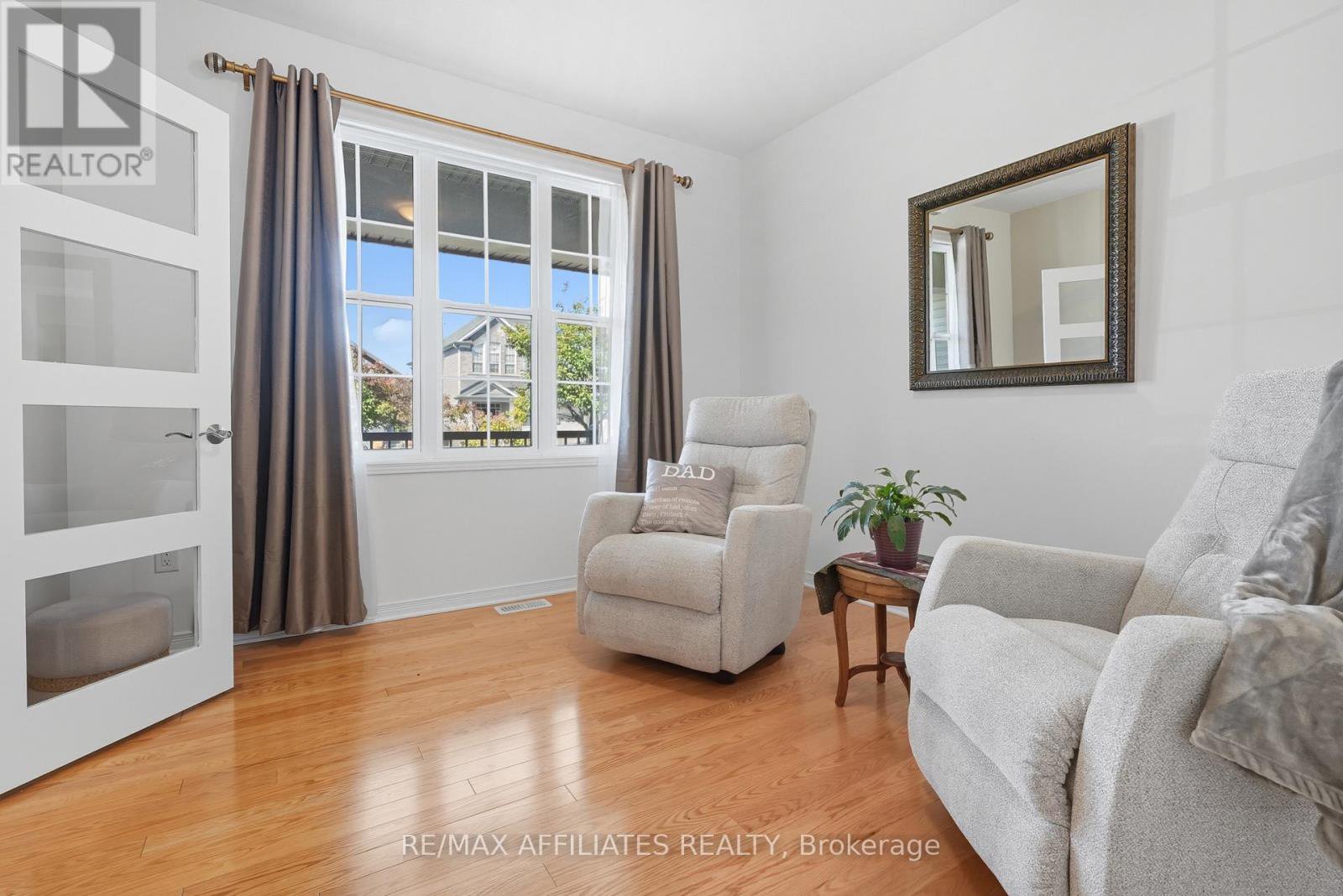 Welcome to this beautifully maintained home in Blackstone, one of Kanata/Stittsville's most sought-after neighbourhoods. This Bungalow has great curb appeal, with a deep front porch perfect for watching sunsets. The porch is upgraded with aluminum railings, and the modern interlocked walkway sets the tone. The South-facing backyard provides sunshine all day, perfect for gardening and outdoor living, complete with established flowerbeds throughout the property. With over 2670 sqft inside, French doors open to a spacious office or den that can also be converted to serve as a 4th bedroom. The open-concept main floor is perfect for entertaining. It showcases a cozy gas fireplace, a chef's kitchen with an oversized island comfortably seating four, and ample cabinetry. A custom-built-in hutch adds charm and function to the dining area, ideal for glassware, art, or a liquor cabinet. Sunlight floods the kitchen, dining, and living rooms through large windows and a patio door leading to the fenced backyard with a natural gas BBQ hookup. The spacious primary suite features a walk-in closet and a 4-piece ensuite spa, with a soaker tub and a standing shower. Also on the main level, a second bedroom, a 4-piece washroom, main floor laundry, mudroom, and inside entry to the double car garage complete the level. All of the Bathrooms are equipped with grab bars for added stability for those who appreciate it. The finished lower level offers a large family room with an electric fireplace with custom mantle, a flex space to play, and 3rd bedroom with double closets. As a bonus, downstairs outside the bedroom, there is also a rough-in for another bathroom (vanity & sink included). A massive storage area holds endless potential for hobbies, fitness, or future income suite or multifamily living. All this in a family-friendly community close to top schools, parks, trails, transit, and shopping. Move-in ready with thoughtful upgrades throughout, this home truly has it all! 2679