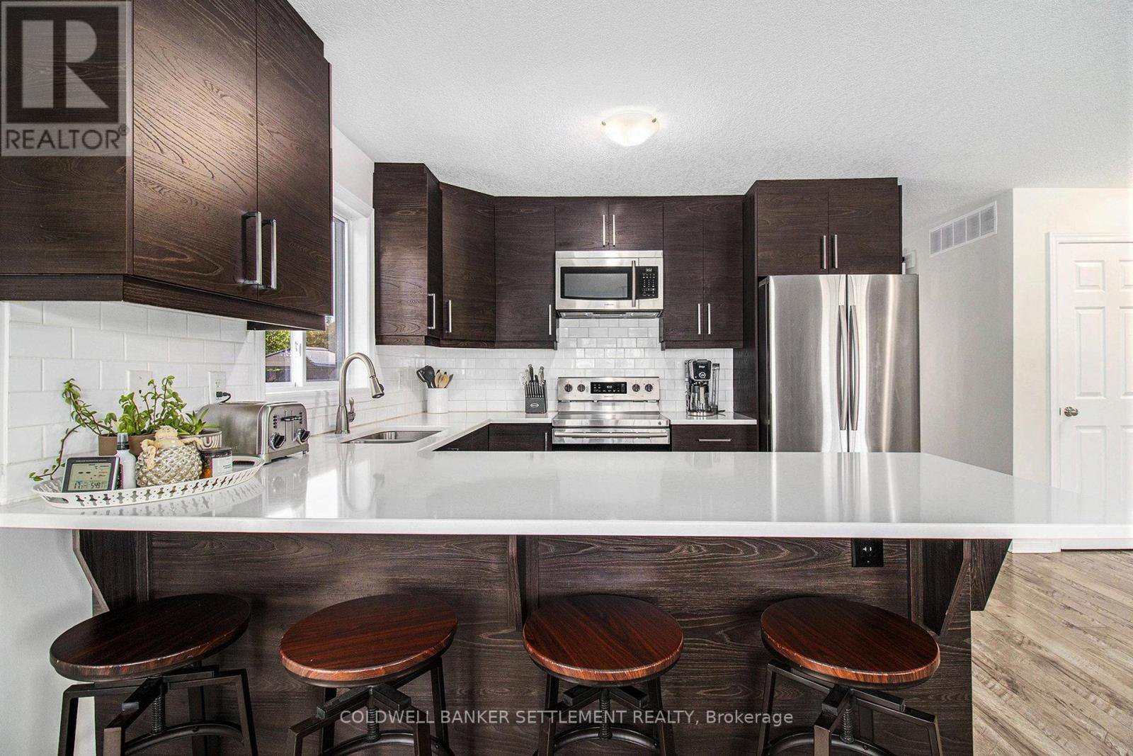 Welcome to this beautiful 2+1 bedroom, 2 bathroom home, perfectly situated on a quiet dead-end street in a lovely, family-friendly neighbourhood. Conveniently located just 10 minutes to Perth and less than 15 to Carleton Place, this property offers easy commuting while still providing the peace of country living. Step inside and be greeted by a spacious foyer, perfectly situated at the front door and entrance in from the garage. The living, dining, and kitchen areas flow seamlessly together, with the kitchen highlighted by quartz countertops and plenty of space for everyday living. The main floor offers two bedrooms and a modern 4-piece bathroom with a quartz vanity. The lower level is fully finished, featuring a spacious family room with storage, an additional bedroom, and a second bathroom ideal for guests or extended family. Outside, enjoy the beautifully landscaped grounds, including a stone pathway to the back, a lovely newer 12 x 18 deck extending your living space outdoors, playground for the kiddos and a stone patio with a cozy campfire area and no immediate rear neighbours. A paved driveway leads to the double attached garage, while an extra storage shed behind the garage is perfect for lawn equipment and garden tools. Added convenience includes school bus pick-up as well as garbage and recycling collection right at your doorstep.This move-in ready home combines comfort, convenience, and is the perfect choice for your next home!