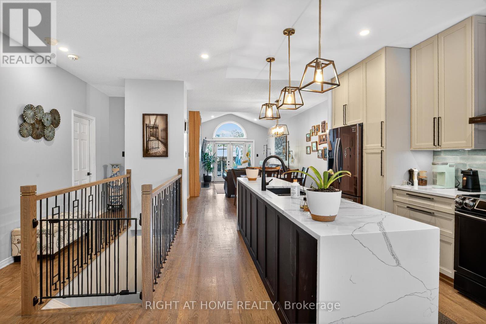 Welcome to this Stunning unique 2 + 1 Bedroom 3 full bath SEMI DETACHED BUNGALOW in Longfields Barrhaven featuring double garage and custom cabinetry throughout, never want for storage again! Main level features gleaming hardwood floors. The kitchen boasts custom kitchen cabinetry, waterfall quartz counter tops and a breakfast nook. The dining and living room with gas fireplace vaulted ceilings filled with sunlight from East facing large windows and full glass French door's opening to a wonderful, landscaped back yard for all those memorable family and friend get togethers. All bedrooms including the large Primary bedroom features custom cabinet walk though closet and 4-piece bath. The lower level offers a generous rec room 3rd bedroom, Den and Full bathroom. Windows 2014, HRV 2015, Furnace 2011, Air conditioner 2011 and stainless-steel appliance 2019. Don't miss out this will not last long so book a showing today.