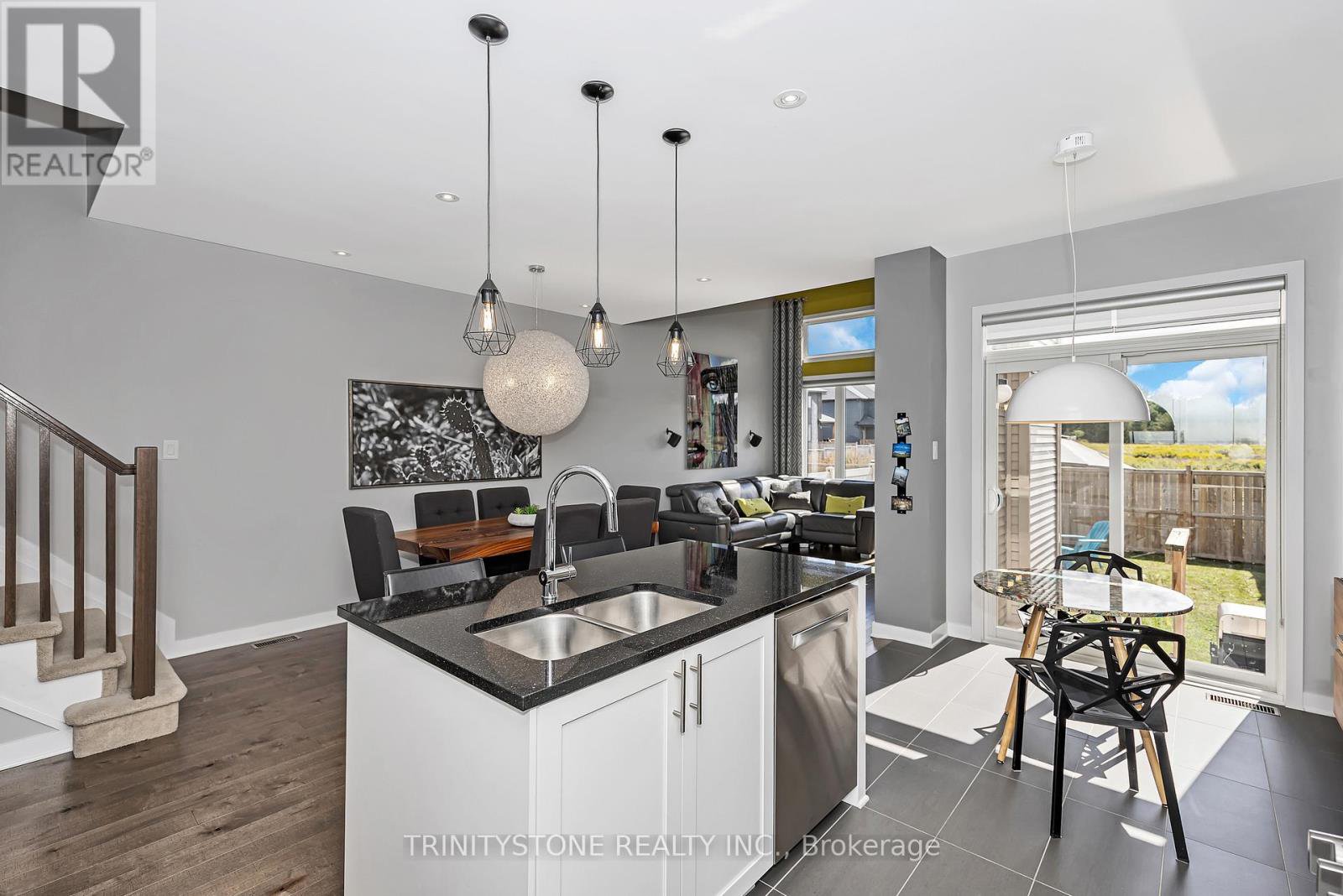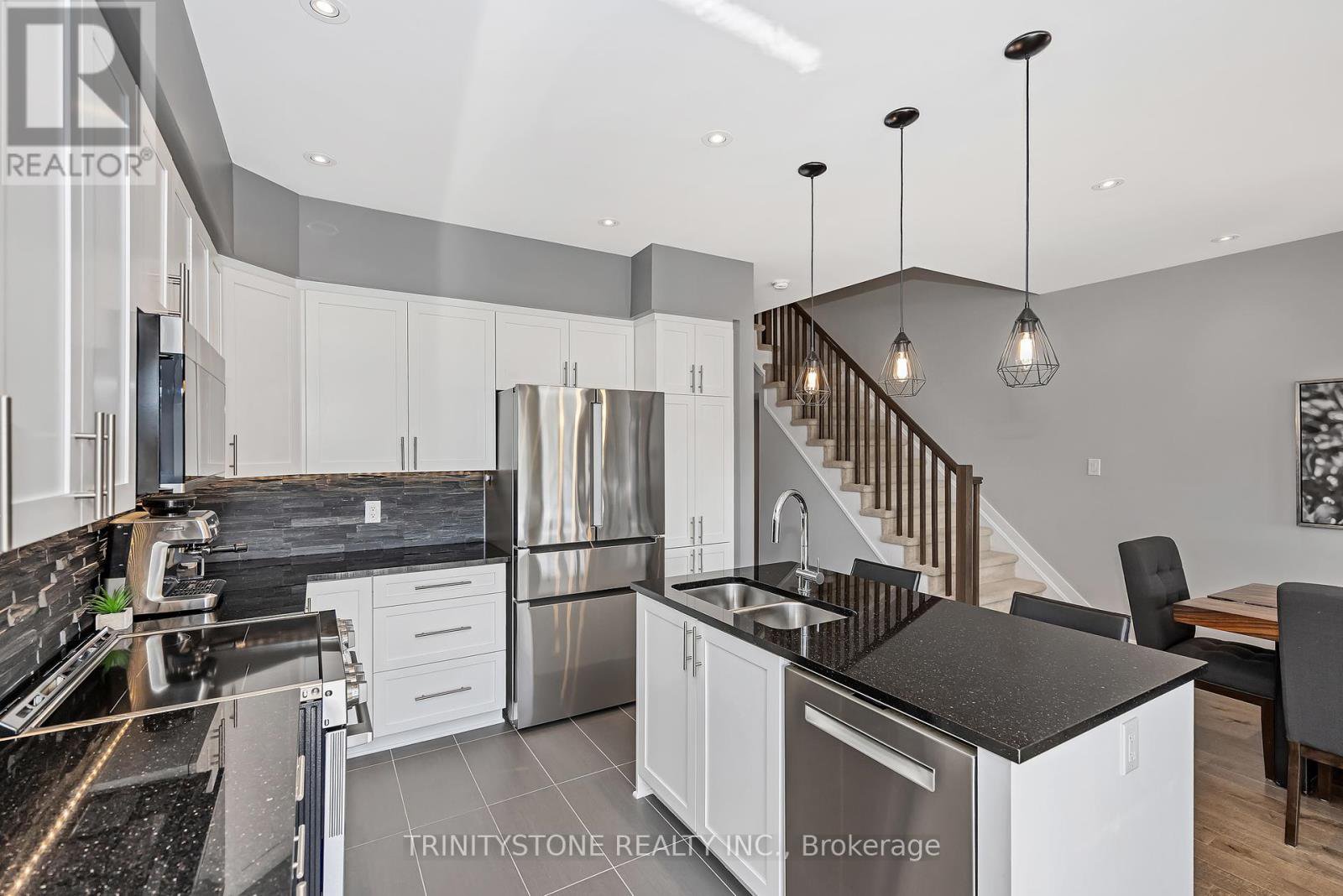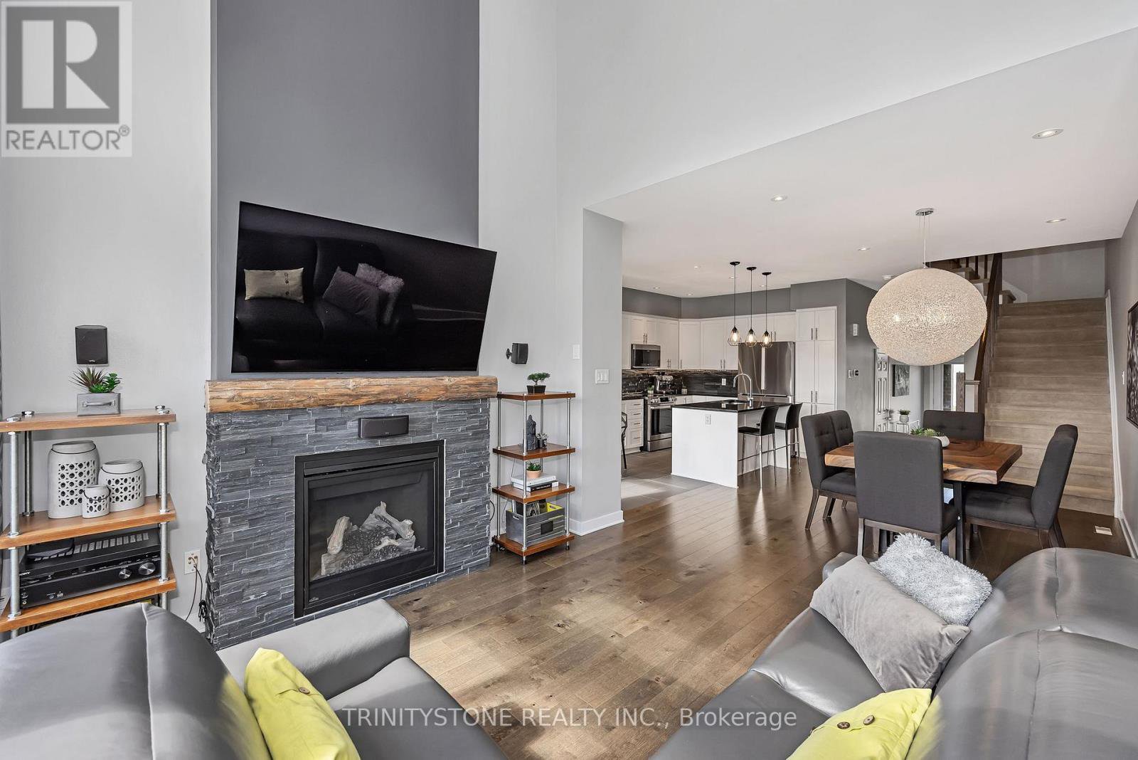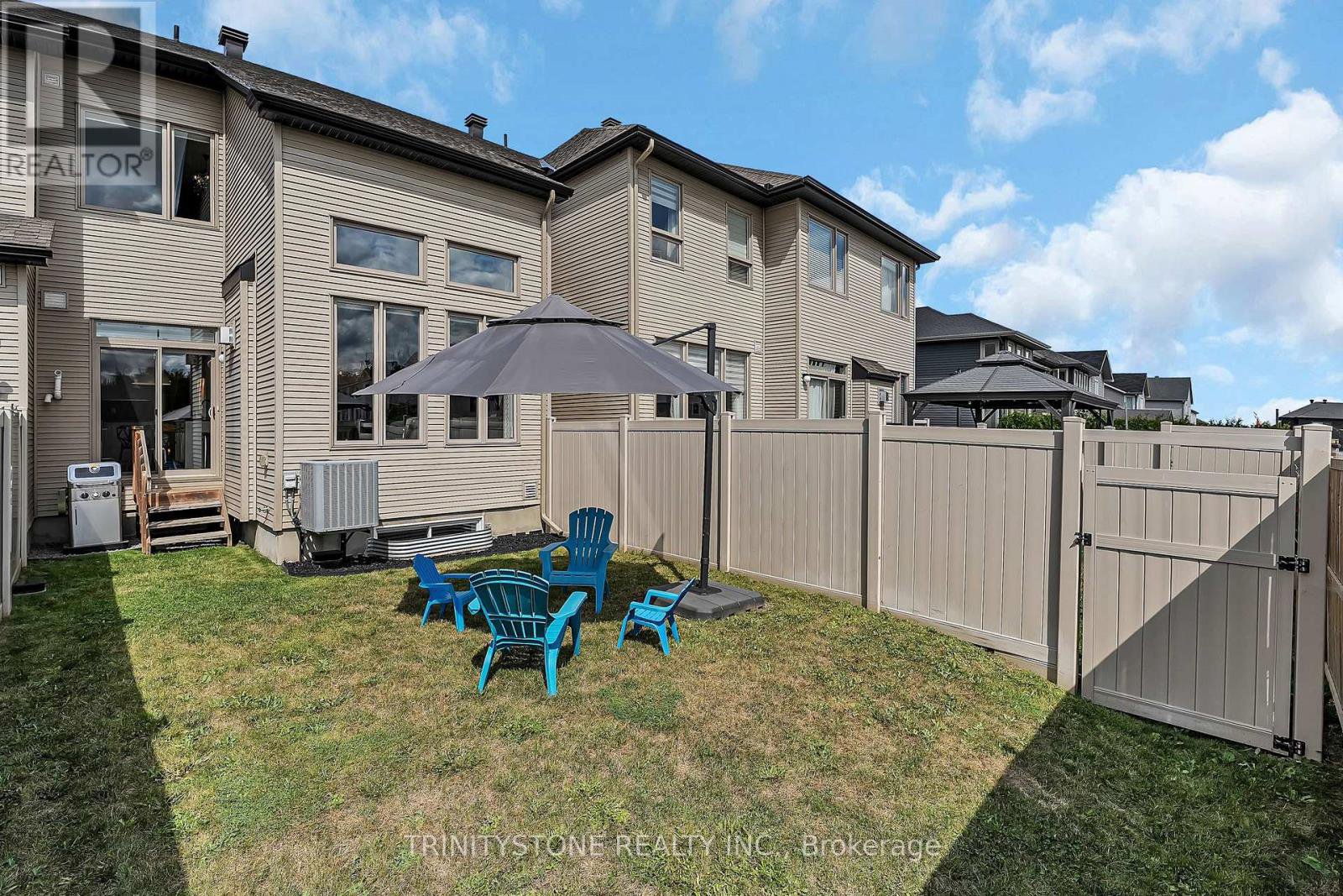 Welcome to this magazine worthy 3 Bedroom, 3 Bathroom home nestled in a family-oriented neighbourhood on the outskirts of Stittsville. This beautiful home offers style, comfort, and functionality with a fully finished basement and no rear neighbours for added privacy. Step inside to a bright open-concept main floor featuring a chefs kitchen with granite countertops, sleek white cabinetry, and stainless steel appliances. The dining area flows seamlessly into the living room, where you'll find large windows and a stunning gas fireplace with black stone surround. Patio doors lead you to your privately fenced backyard oasis, perfect for relaxing or entertaining. A convenient powder room and inside access to the garage complete the main floor. Upstairs, the primary suite impresses with a stone accent wall, walk-in closet, and a spa-inspired ensuite with a glass shower, extended counter space, and oversized mirror. Two additional spacious bedrooms and a stylish 4-piece bathroom complete the upper level. The fully finished lower level offers endless potential whether as a cozy family room, home gym, or office space. Outside, enjoy your private fenced yard, a perfect retreat for family gatherings or quiet evenings. This home truly checks all the boxes modern finishes, thoughtful design, and a welcoming community!