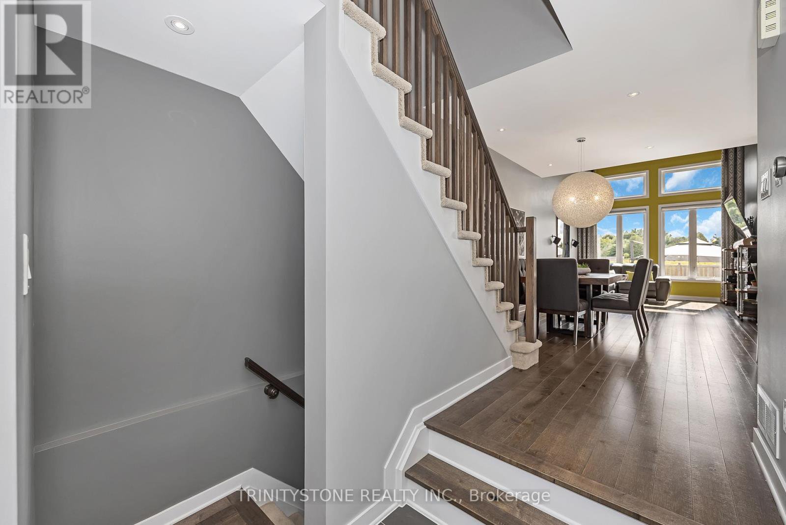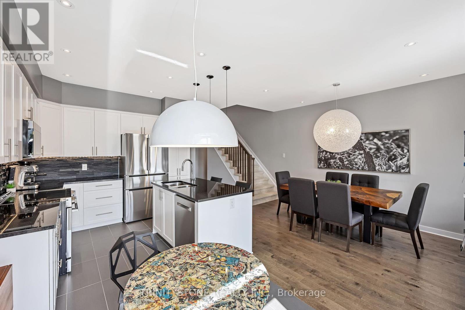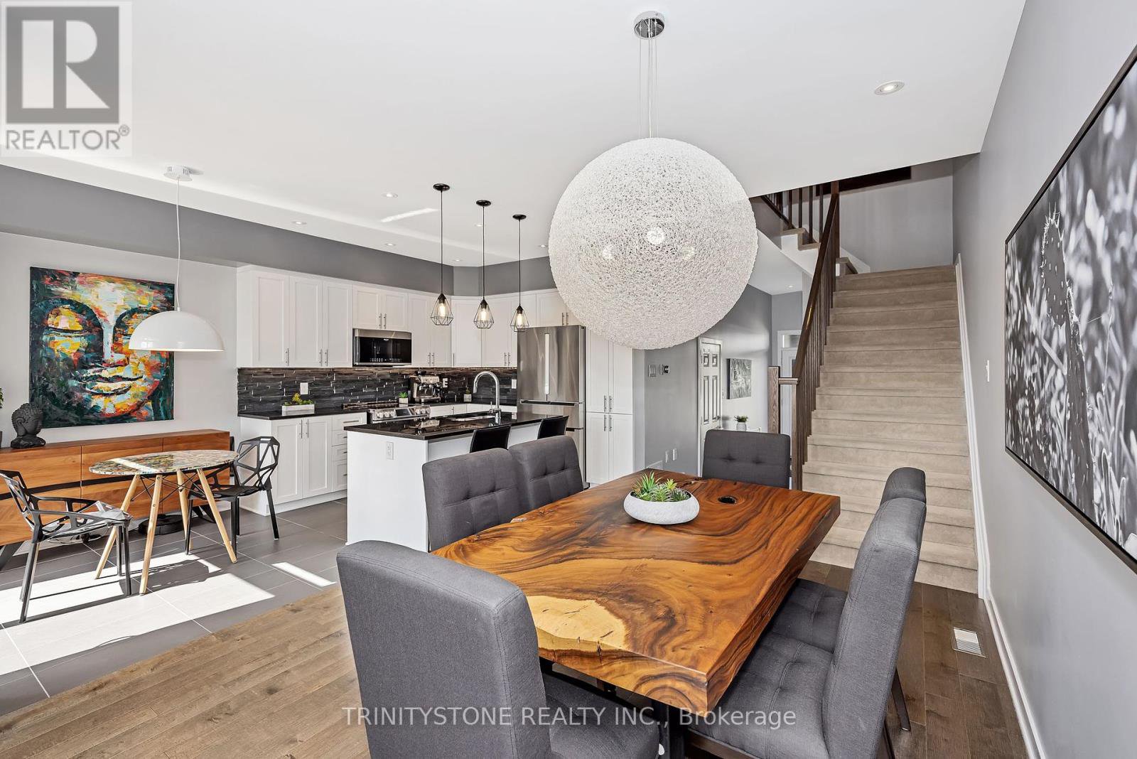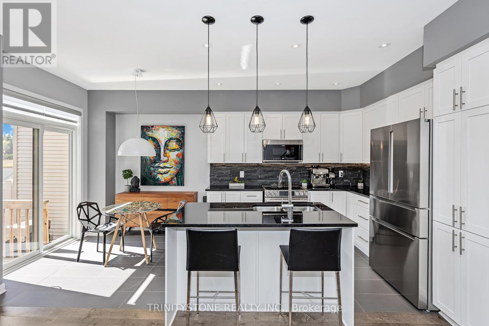Welcome to this magazine worthy 3 Bedroom, 3 Bathroom home nestled in a family-oriented neighbourhood on the outskirts of Stittsville. This beautiful home offers style, comfort, and functionality with a fully finished basement and no rear neighbours for added privacy. Step inside to a bright open-concept main floor featuring a chefs kitchen with granite countertops, sleek white cabinetry, and stainless steel appliances. The dining area flows seamlessly into the living room, where you'll find large windows and a stunning gas fireplace with black stone surround. Patio doors lead you to your privately fenced backyard oasis, perfect for relaxing or entertaining. A convenient powder room and inside access to the garage complete the main floor. Upstairs, the primary suite impresses with a stone accent wall, walk-in closet, and a spa-inspired ensuite with a glass shower, extended counter space, and oversized mirror. Two additional spacious bedrooms and a stylish 4-piece bathroom complete the upper level. The fully finished lower level offers endless potential whether as a cozy family room, home gym, or office space. Outside, enjoy your private fenced yard, a perfect retreat for family gatherings or quiet evenings. This home truly checks all the boxes modern finishes, thoughtful design, and a welcoming community!