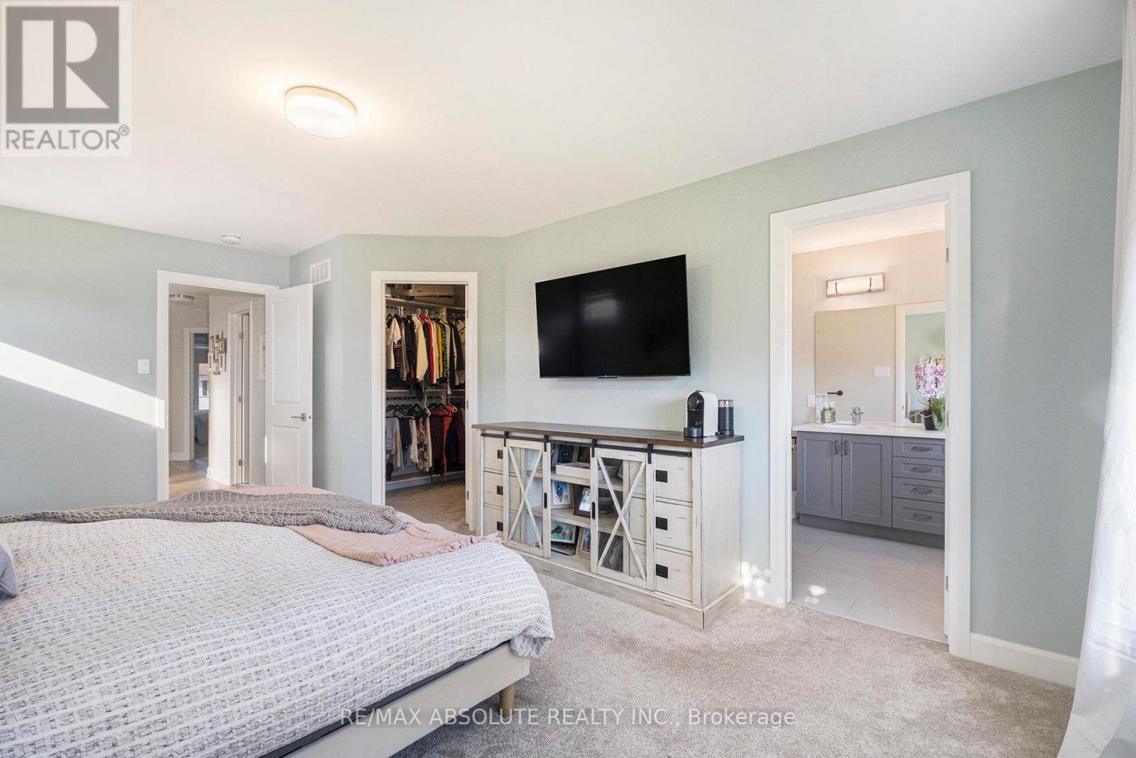 THE CARDIGAN Model part of Talos's newest enclave of single-family homes built in 2023 (each joined only at the garage wall) on a spacious, 200'+ deep lot. This 3-bedroom layout features an oversized single-car garage and a beautifully appointed main level with hardwood and ceramic flooring throughout. Entertain effortlessly in the Laurysen kitchen, complete with a large center island, under-cabinet lighting, stylish backsplash, quartz countertops, and convenient pots-and-pans drawers. The adjacent great room boasts ton of natural light, while a dining area that provides additional space for hosting . The wide, open staircase leads upstairs to three generous bedrooms. The primary suite, tucked away at the rear, offers a walk-in closet and a spacious ensuite bathroom, featuring dual sinks and an upgraded glass-enclosed shower. You'll also find a second-floor laundry room with overhead storage. Downstairs, an open staircase takes you to a fully finished rec room, prepped for a future bathroom. Notable upgrades include pot lights, metal stair railings, quartz surfaces in the kitchen, central air conditioning, and a full set of four stainless-steel kitchen appliances. Book your viewing today!