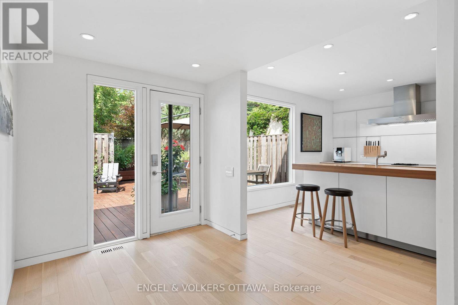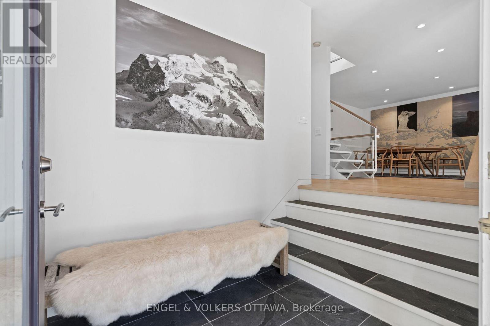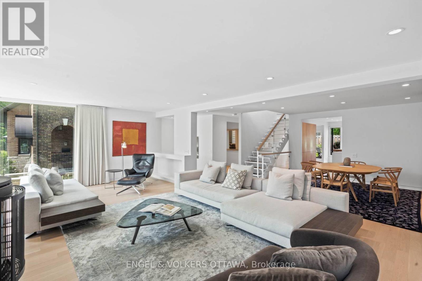 The Modern House on Patterson Creek. This architecturally refined residence is one of only a handful of homes gracing the tranquil waters of Patterson Creek. Designed by John Donkin, the home is a study in modernist restraint. clean lines, light-filled interiors, and a seamless relationship between structure and setting. The current owners collaborated with Astro Design Centre and Bulthaup Toronto to reimagine the interiors, enhancing the original architecture with an uncompromising approach to craftsmanship and material quality. Every surface and junction was considered, walnut veneers, polished quartz, brushed stainless steel, and softly textured marble contribute to an atmosphere of quiet sophistication. The open-concept main level is anchored by a sculptural steel staircase that filters light through all three floors. Expansive glass walls frame park and water vistas, bringing nature into daily view. The living room centres on a minimalist Jøtul gas fireplace, while the Bulthaup kitchen sleek walnut cabinetry, chef-grade appliances, and a generous island defines contemporary elegance. The main floor office or guest suite provides a perfect private space to work from. .Upstairs, the principal suite provides a tranquil retreat with a bespoke walk-in closet and a spa-like ensuite appointed with marble and refined European fixtures. A secondary bedroom, guest bath, and flexible sitting area continue the home's cohesive aesthetic of calm and clarity. The lower level, with 9-foot ceilings, offers a versatile family or media room, gym or guest space, and full bath. A private south-facing garden extends the living space outdoors, designed for intimate entertaining and quiet reflection. Patterson Creek offers a rare balance of serenity and urban convenience steps from the Rideau Canal, and Lansdowne Park. This exceptional property embodies architectural integrity, thoughtful design, and the timeless elegance of modern living. Exceptional Value and Lifestyle!