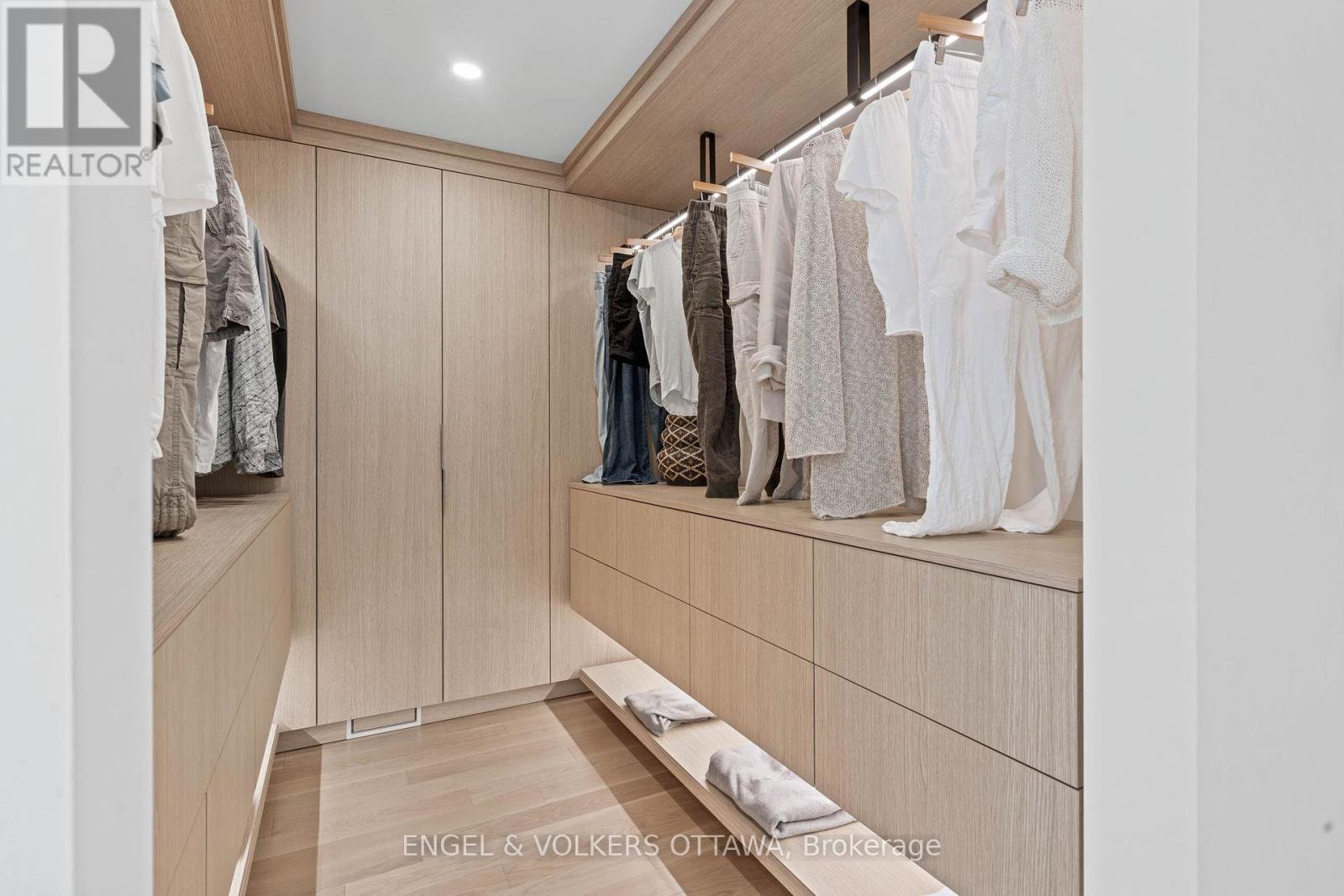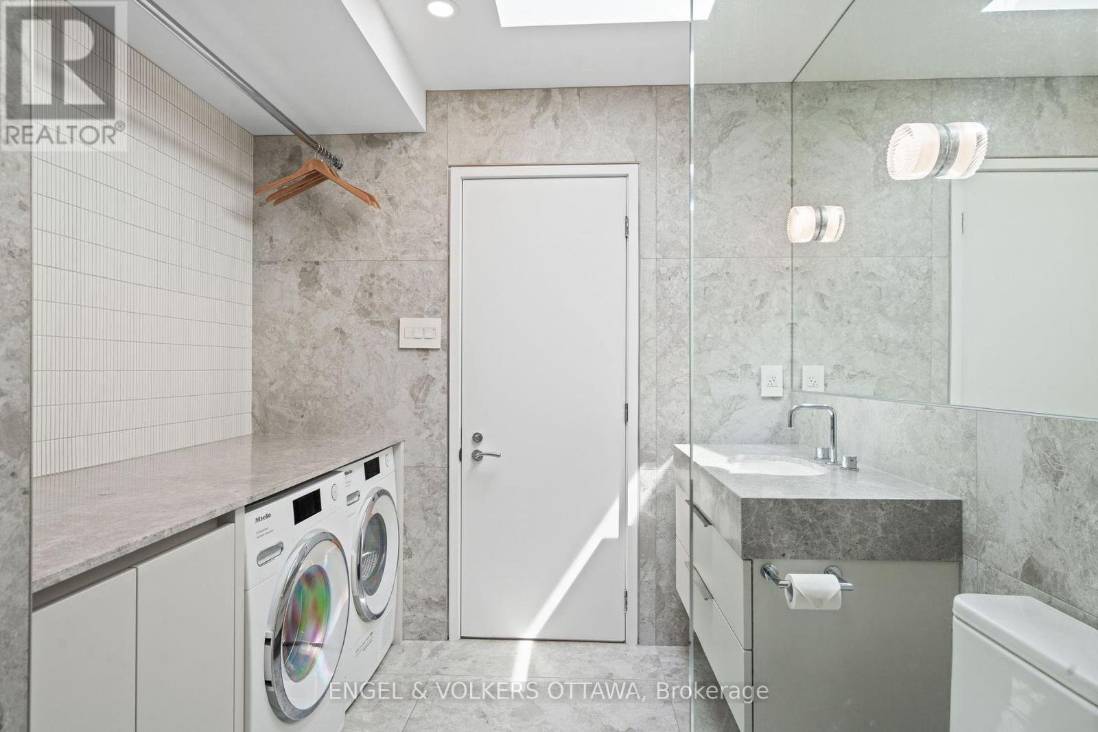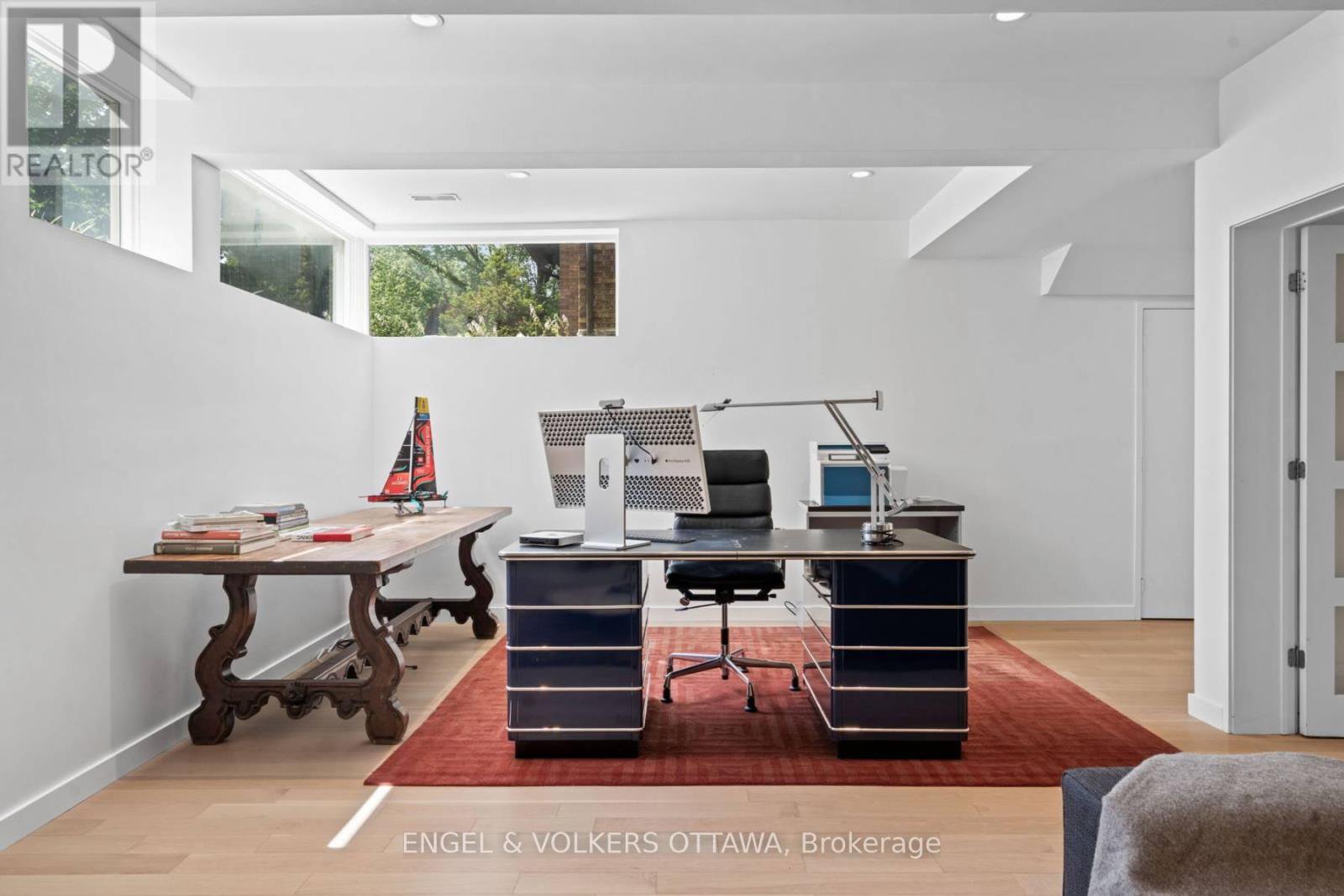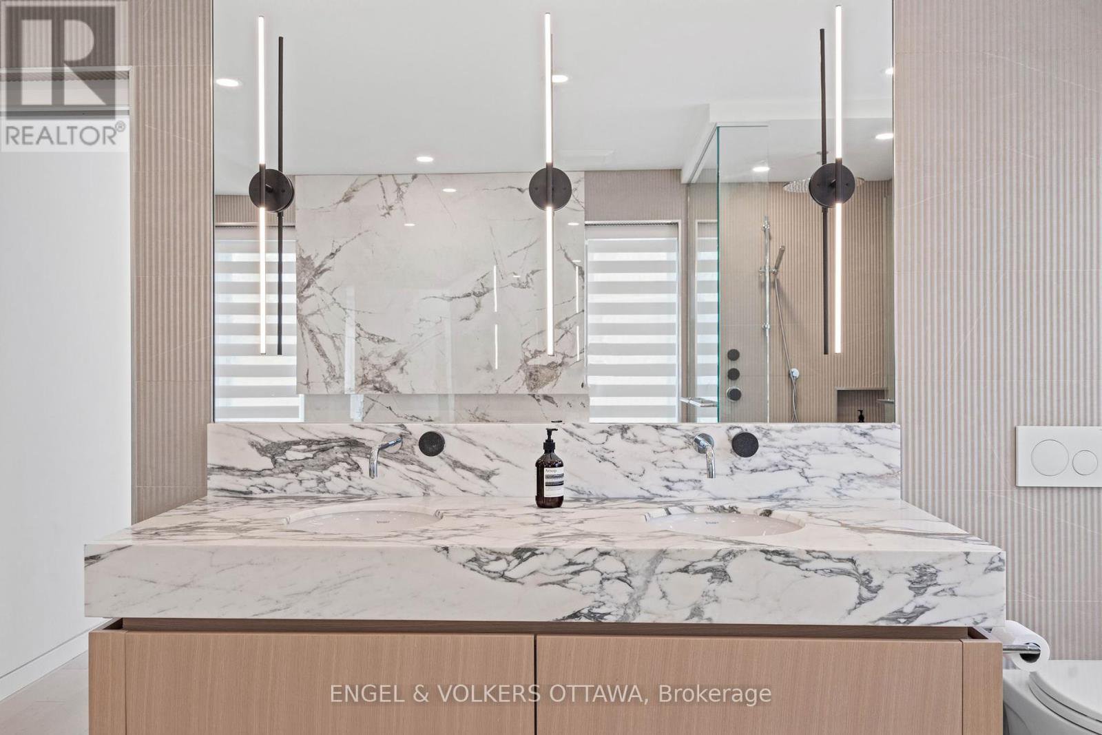 The Modern House on Patterson Creek. This architecturally refined residence is one of only a handful of homes gracing the tranquil waters of Patterson Creek. Designed by John Donkin, the home is a study in modernist restraint. clean lines, light-filled interiors, and a seamless relationship between structure and setting. The current owners collaborated with Astro Design Centre and Bulthaup Toronto to reimagine the interiors, enhancing the original architecture with an uncompromising approach to craftsmanship and material quality. Every surface and junction was considered, walnut veneers, polished quartz, brushed stainless steel, and softly textured marble contribute to an atmosphere of quiet sophistication. The open-concept main level is anchored by a sculptural steel staircase that filters light through all three floors. Expansive glass walls frame park and water vistas, bringing nature into daily view. The living room centres on a minimalist Jøtul gas fireplace, while the Bulthaup kitchen sleek walnut cabinetry, chef-grade appliances, and a generous island defines contemporary elegance. The main floor office or guest suite provides a perfect private space to work from. .Upstairs, the principal suite provides a tranquil retreat with a bespoke walk-in closet and a spa-like ensuite appointed with marble and refined European fixtures. A secondary bedroom, guest bath, and flexible sitting area continue the home's cohesive aesthetic of calm and clarity. The lower level, with 9-foot ceilings, offers a versatile family or media room, gym or guest space, and full bath. A private south-facing garden extends the living space outdoors, designed for intimate entertaining and quiet reflection. Patterson Creek offers a rare balance of serenity and urban convenience steps from the Rideau Canal, and Lansdowne Park. This exceptional property embodies architectural integrity, thoughtful design, and the timeless elegance of modern living. Exceptional Value and Lifestyle!
