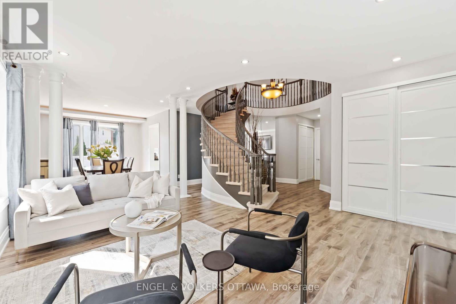 Welcome to this stunning 4 bed, 4 bath detached home in the heart of Avalon. Thoughtfully renovated with high-end finishes, this residence offers over 3,300 sq.ft. of elegant living. The main floor boasts a sophisticated office with French doors, an airy open-concept living room with fireplace flowing into the dining area, and a stylish family room with panelled walls and a second fireplace. The chefs kitchen (2019) showcases full-height wall of cabinetry, premium appliances, striking 48x48 porcelain tile, potlights and sliding doors leading to a landscaped backyard with stone patio (2022). Upstairs, a versatile loft provides the perfect space for entertaining or quiet study. Four generous sized bedrooms include a secondary bedroom with its own private ensuite and walk in closet. The spacious primary bedroom is a true retreat, with oversized windows, a large walk-in closet, and a private seating nook. The spa-inspired 5-pc ensuite offers a luxury stand-alone soaking tub, jet shower, double vanity, and elegant finishes. Additional upgrades include 8 ft doors on the main floor, 7 1/4" baseboards, high-end laminate flooring (2019), renovated bathrooms with built-in speakers and LED lighting (2020), an upgraded 200 amp panel, and a refreshed laundry room (2020). Freshly painted in 2022, this home is move-in ready. Perfectly situated across from a large park and close to excellent schools, shopping, and everyday amenities, this home blends luxury, comfort, and convenience in one of Orleans most desirable neighbourhoods.