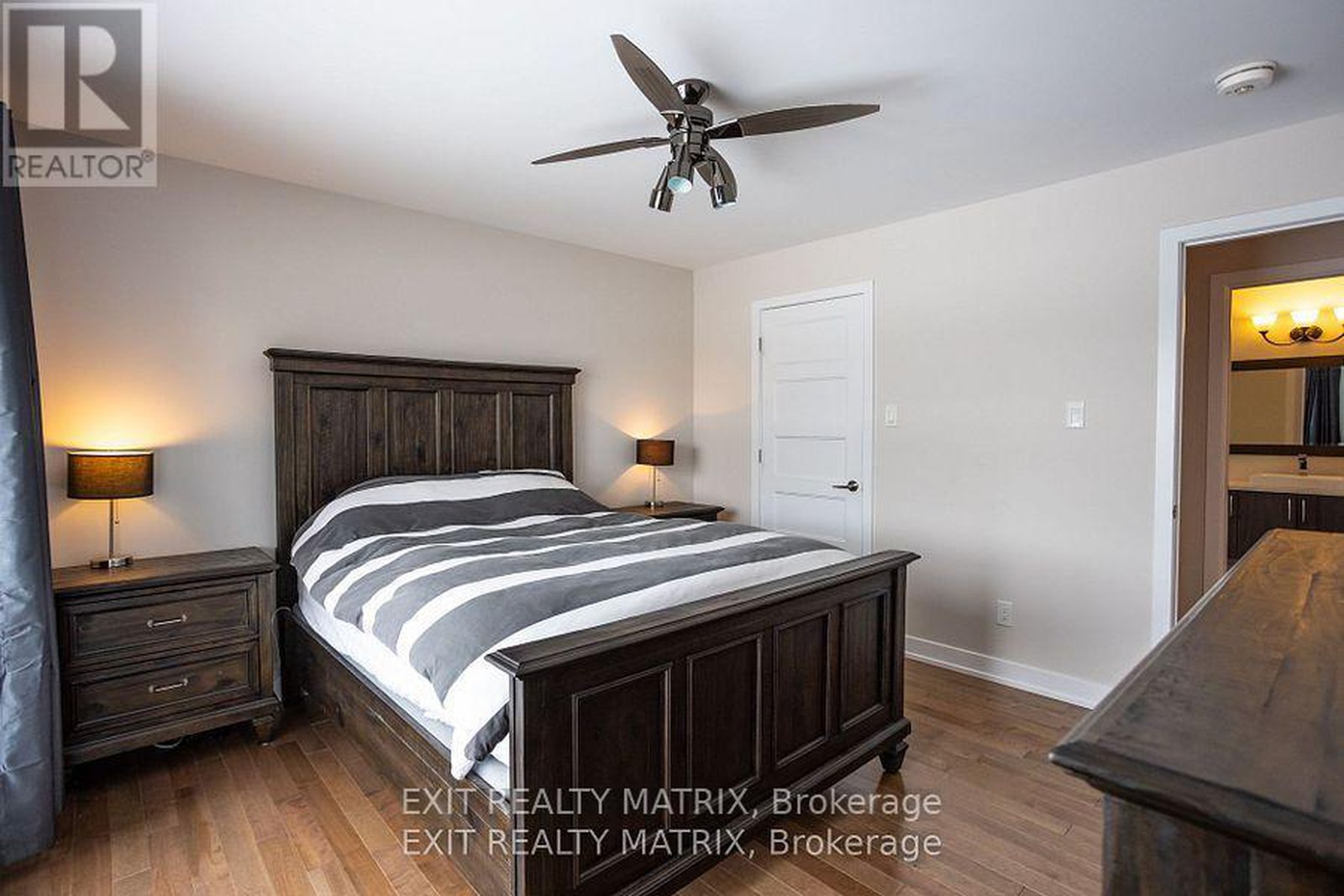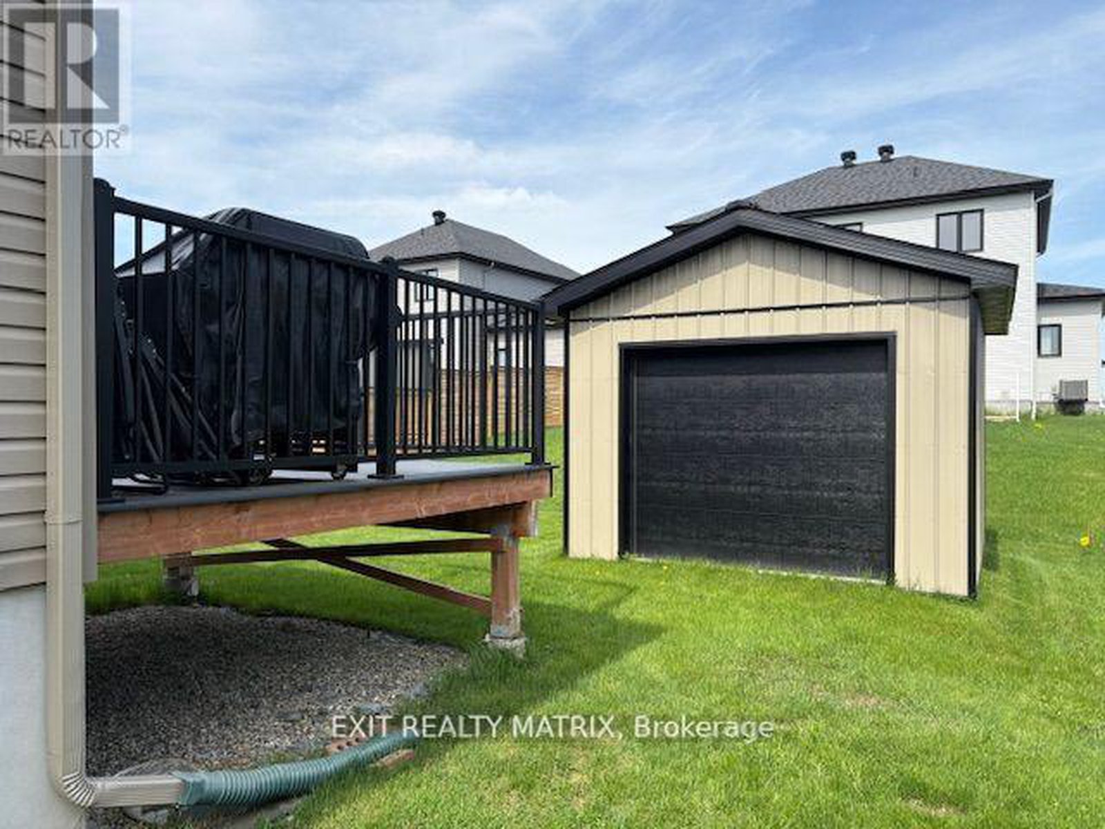 River view bungalow nestled in a family-friendly neighbourhood. River access for all your kayak, canoe, paddleboard or fishing needs. *River access (2min walk) from 298 Nature, lot owned by the city of Casselman*. Spacious primary bedroom with walk-in closet and a second main floor bedroom that is great for family, guests or a home office. Gorgeous full bath, beautiful glass shower, large windows flood the back of the home with natural lighting where you find the open-concept kitchen with quartz countertop stainless steel appliances, gorgeous soft close cabinets, with ceramic and hardwood flooring. Patio door gives direct access to the backyard and high quality trex deck for those summer bbq's, a rare detach 12 x 12 garage. Spacious living room with gas fireplace. Lower level offers a half finish basement with a nice size bedroom and full bathroom right beside it. Lots of space for a family room, a gym or added bedrooms. Complete with laundry. Heated attached garage with inside entry has bonus extended paved driveway. Located just a short drive from Casselman arena, schools, church and shopping, enjoy city services in a nice friendly "country living atmosphere" neighbourhood. Build in 2018, Hydro avg: $90/mth, nat gaz $55/mth avg, taxes $4537/yr.
