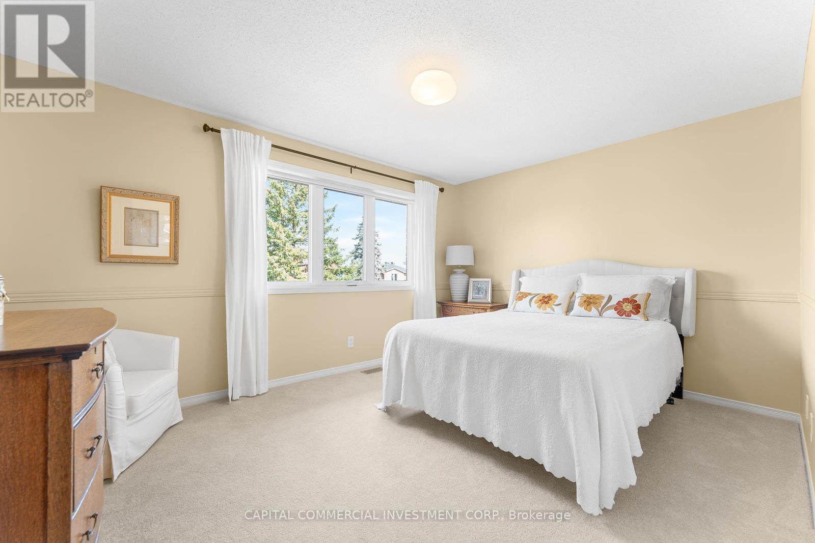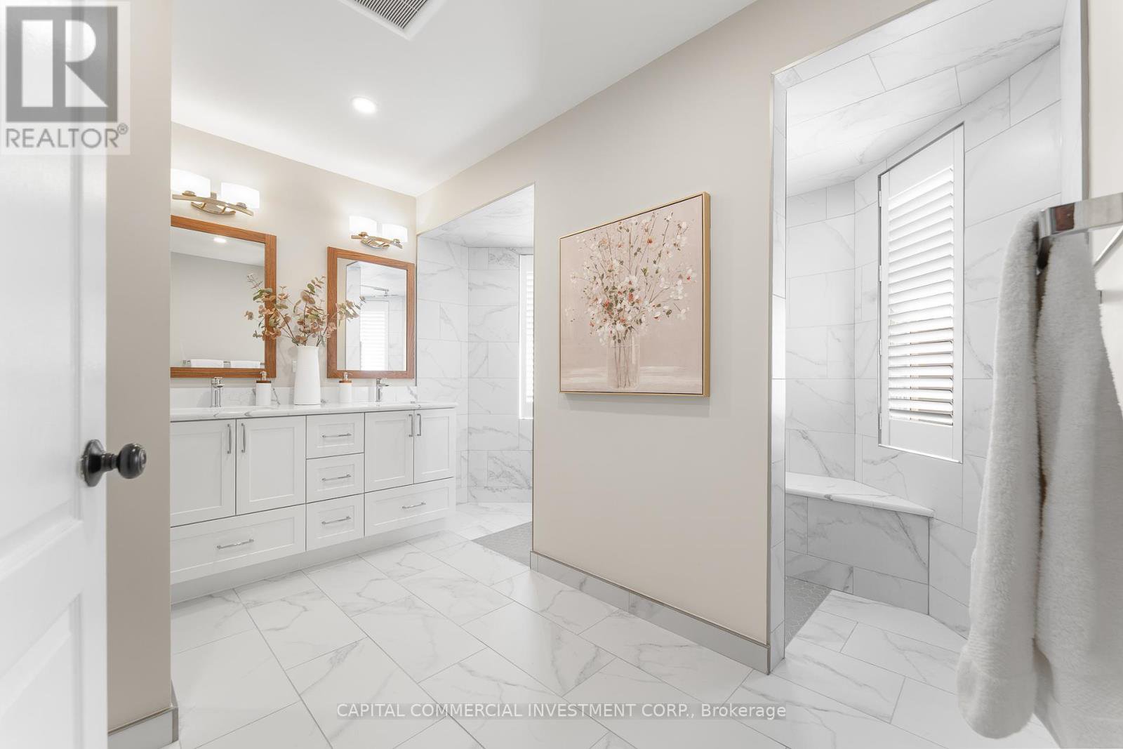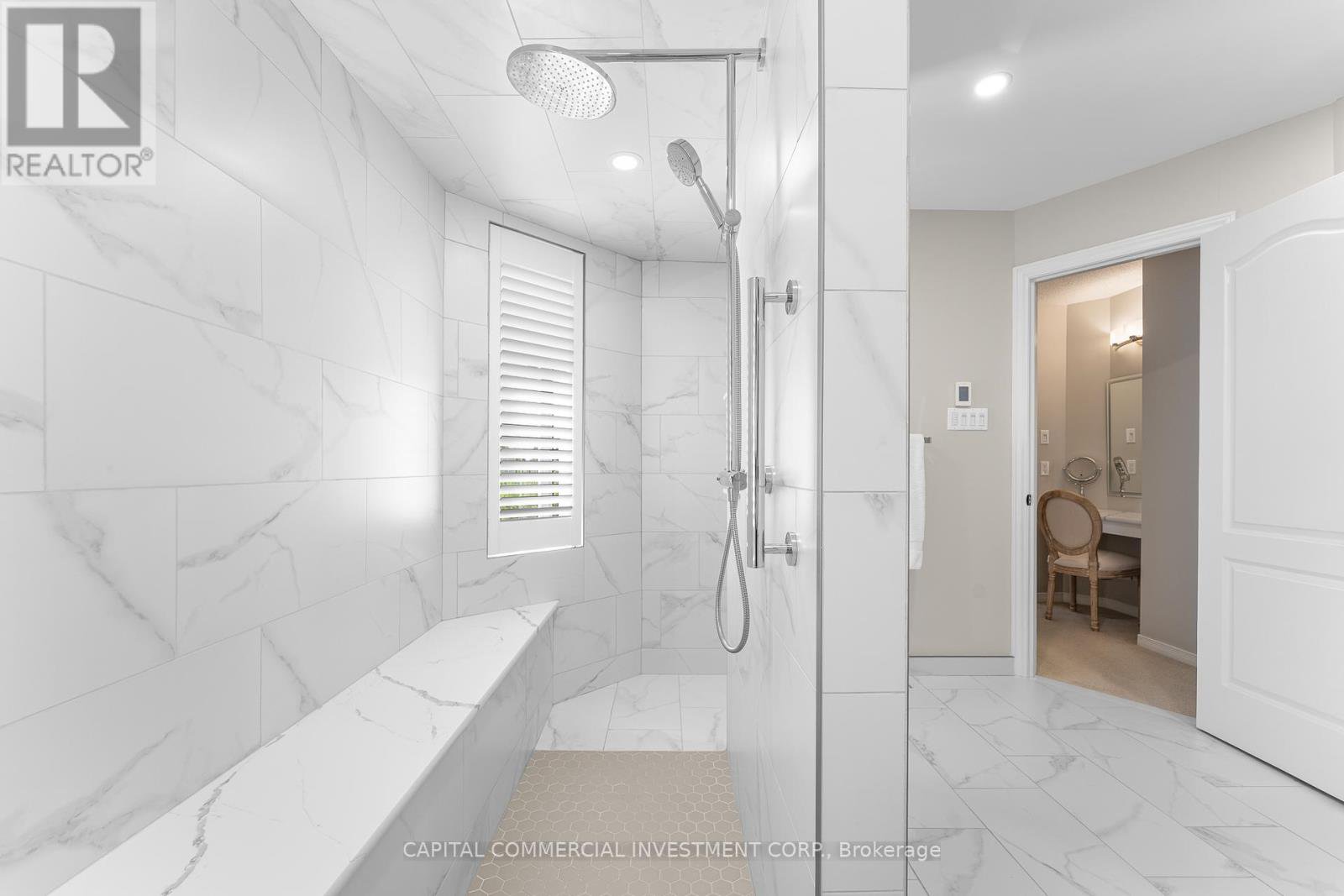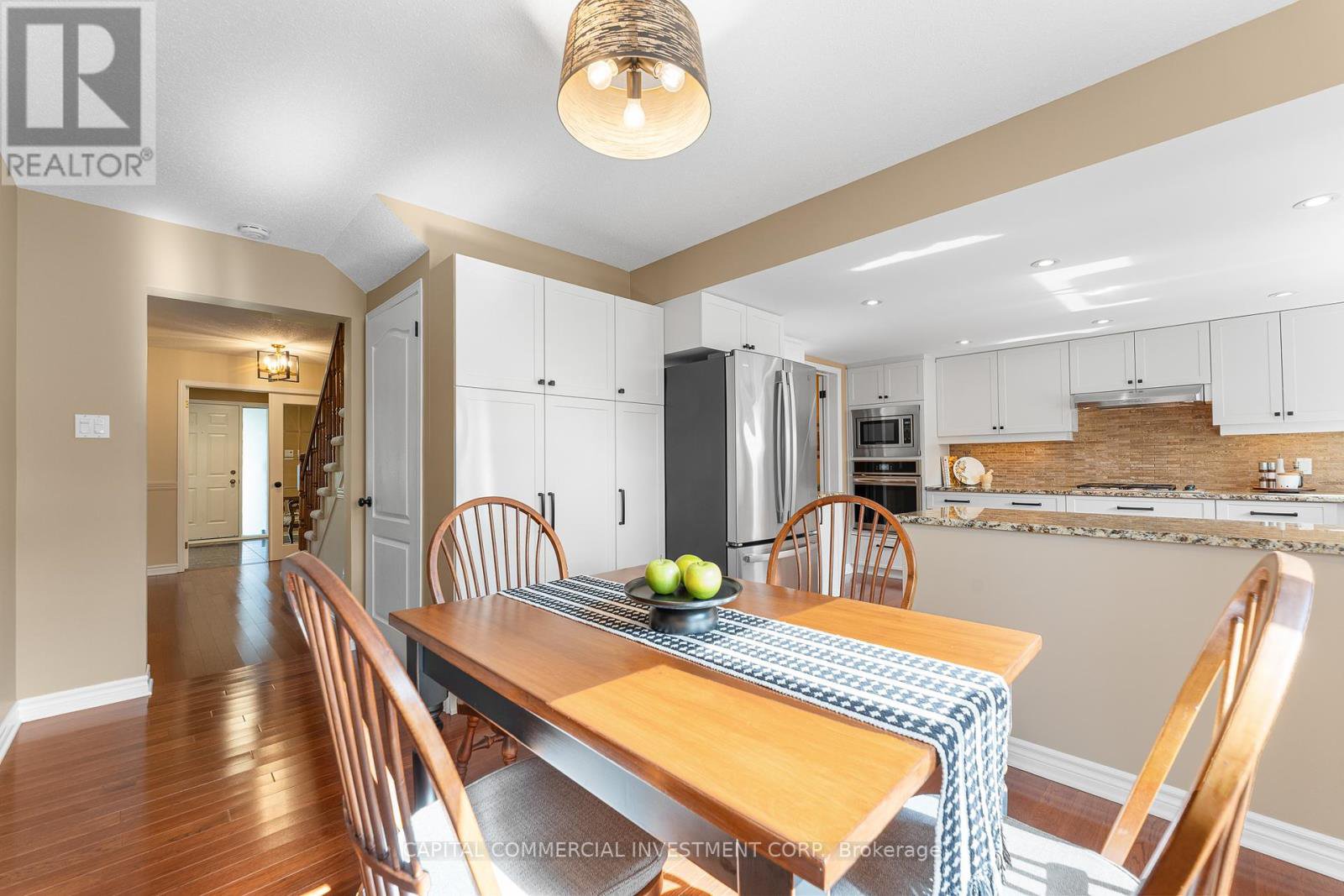 Welcome to this impeccably maintained 4 bed / 4 bath home on a quiet crescent in Bridlewood, blending modern design with timeless style. Upon entering the spacious entryway, the main floor showcases hardwood flooring, large windows with California shutters, and a floor plan that lends itself to growing families; boasting a sizeable living room, private dining room, convenient main floor laundry, powder room, and cozy sunken family room with gas fireplace. The expansive custom eat-in kitchen is freshly renovated with granite countertops, ample cabinetry and stainless steel appliances. The patio door from the eat-in kitchen provides easy access to the peaceful, south facing backyard, with large deck, creating the perfect setting for outdoor dining, relaxation, or entertaining. Surrounded by beautifully landscaped perennial gardens and a lush cedar hedge for maximum privacy, the backyard is a true retreat. Both the front and rear yards have been fully landscaped with the utmost detail in mind. The charming staircase to the 2nd floor is filled with sunlight from the updated skylight. Through French doors, the stunning primary suite awaits, featuring a spacious walk-in closet, a serene reading nook with window bench, and a beauty station. The open-concept ensuite is nothing short of luxurious, offering dual sinks, an open concept rain shower, heated floors and a spa-like atmosphere. An adjoining bedroom connected to the primary suite is ideal as a nursery, cozy retreat, or can be easily converted back to a private 4th bedroom. The secondary bedrooms have generous square footage conveniently located near the updated 4-piece bath. The fully finished lower level adds even more living space, including a large rec room, 3-piece bath, and generous storage area complete with built-in shelving. Access Bridlewood Park via public path on Tower Hill Crs. Located within walking distance to top-rated schools, shopping, recreation and more! Roof 2019. Furnace 2023. Windows 2015-2019.