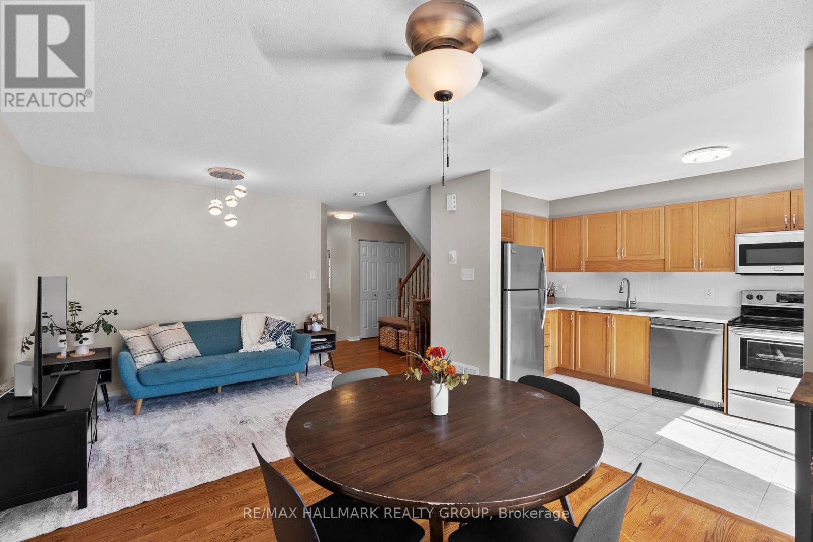 Welcome to this well-maintained 3-bedroom, 2-bathroom townhouse in the family-friendly Bradley Estates community. Featuring a functional layout across three finished levels, this home combines comfort and practicality in a great location close to nature and essential amenities. Enjoy the outdoors with nearby Mer Bleu Conservation Area, scenic walking trails, and several parks and schools, including a new school under construction! The open-concept main floor offers hardwood floors, freshly painted neutral tones, modern light fixtures, and a refreshed kitchen with quartz countertops, stainless steel appliances, tiled backsplash, and ample cabinetry for everyday convenience. Upstairs, three comfortable bedrooms feature cozy Berber carpets, large windows that bring in natural light, and ceiling fans for year-round comfort. The fully finished basement provides flexible living space with a generous rec room and dedicated storage areas. Step outside to spacious outdoor areas, including a southeast-facing backyard thats fully fenced with a multi-tiered deck and gazebo - perfect for relaxing and entertaining. Recent updates include the furnace, AC, owned tankless water heater, gazebo, light fixtures, and appliances. With its efficient design, low maintenance, and inviting outdoor spaces, this home is ideal for down sizers or first-time buyers seeking a move-in ready property in a welcoming neighbourhood.