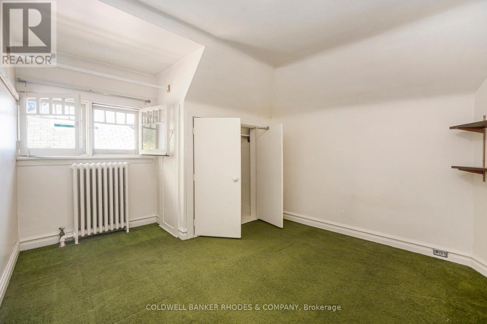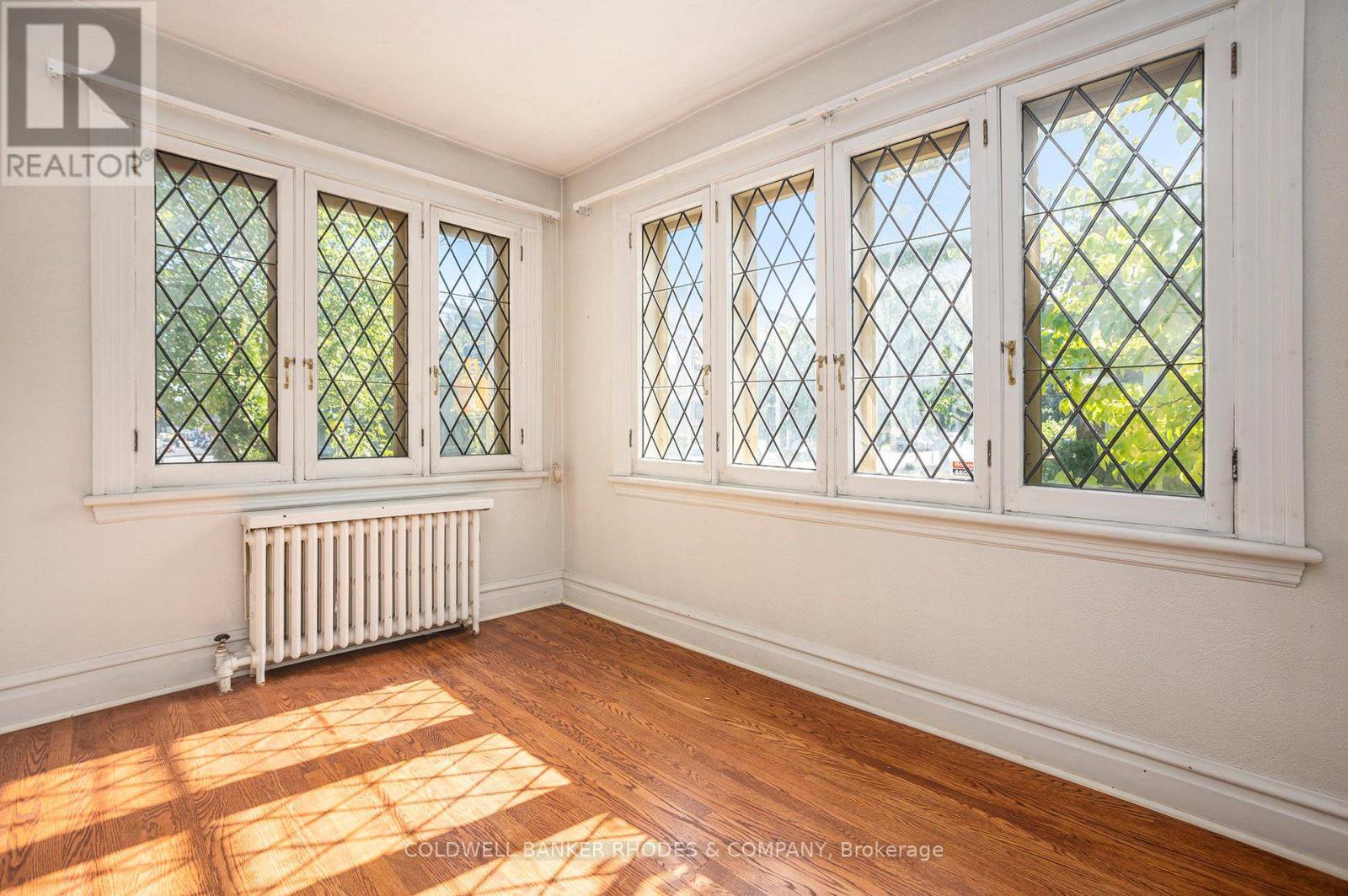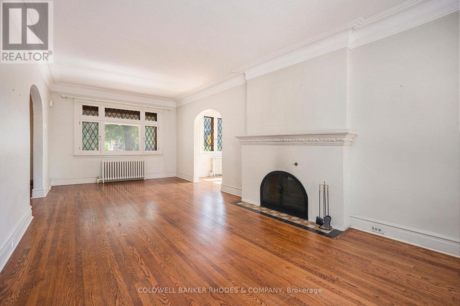 Your chance to own a piece of coveted Civic Hospital history! A stately circa 1930s Younghusband designed Arts & Crafts style home owned by the same family for over 50 years! Original details have been lovingly preserved in this incredible three storey brick landmark on the corner of Ruskin and Parkdale. Centre hall plan main floor offers a striking foyer with curved wood banister, strip hardwood flooring in excellent condition and crown molding. Main floor living room with original wood burning fireplace and mantel with plaster detailing. Lovely main floor solarium with original leaded windows. Main floor dining room features built-in corner cabinet. Circa 1988 additional blends seamlessly with the home and features large eat-in kitchen with unique details like hand painted tile backsplash, laundry room, powder room storage/pantry with inside entry to attached double garage. Stained glass windows at the head of the stairs lead up to the 2nd floor that features four good sized bedrooms with hardwood flooring and full bathroom. 3rd level features additional two bedrooms with full 4 piece washroom. Fully finished basement in vintage retro style with lots of storage and half bath. Mature treed lot offers privacy in the back yard with interlocking patio. 3 additional parking spaces in the interlocking brick driveway accessed from laneway off of Ruskin. Newer Hot water heated gas boiler (November 2024). Across the street from the Ottawa Hospital Civic Campus. A block walk to the Experimental Farm and recreational trails/bike routes. 10 minutes stroll to Wellington Village!