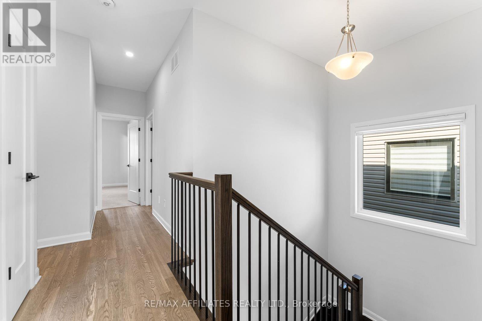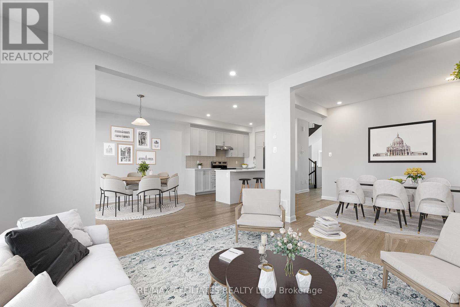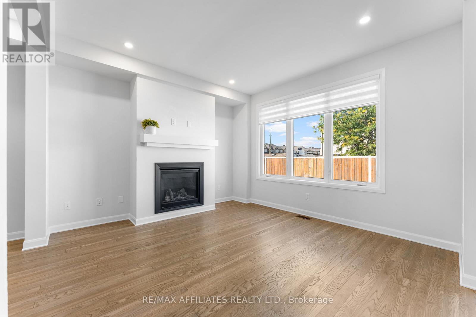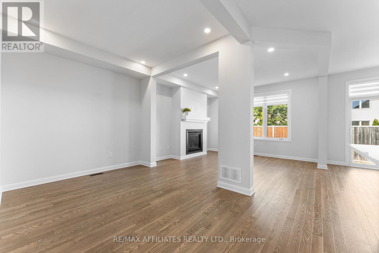 Welcome to this beautifully upgraded 4-bedroom, 3-bathroom home located in the highly sought-after Avalon Orleans community. Offering approximately 1,778 square feet above grade plus a spacious unfinished basement, this property is ideally situated just steps from parks, schools, trails, public transit, and all essential amenities. The main floor features elegant hardwood and tile flooring, soaring 9-foot ceilings, and a large walk-in closet off the foyer for added storage. A versatile front room serves perfectly as either a den or formal dining area. The open-concept kitchen and living room are ideal for entertaining, complete with a cozy gas fireplace, recessed lighting, and ample space for family gatherings. The kitchen boasts quartz countertops, stainless steel appliances, a stylish backsplash, abundant cabinetry, a center island with breakfast bar, and an oversized eat-in area with patio doors leading to the backyard. A hardwood staircase leads to the second level, which also features 9-foot ceilings. The spacious primary bedroom includes a large walk-in closet and a luxurious 4-piece ensuite with quartz counters and tile flooring. Three additional generously sized bedrooms, a second-floor laundry room, and a beautifully finished 4-piece main bathroom complete the upper level. The unfinished basement offers plenty of room for storage or future customization. High-end blinds throughout add a touch of sophistication to this move-in-ready home.24 hours irrevocable for all offers.*some photos virtually staged*