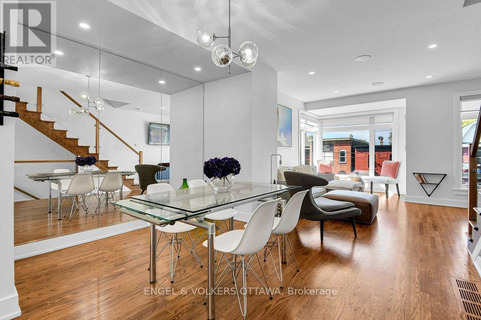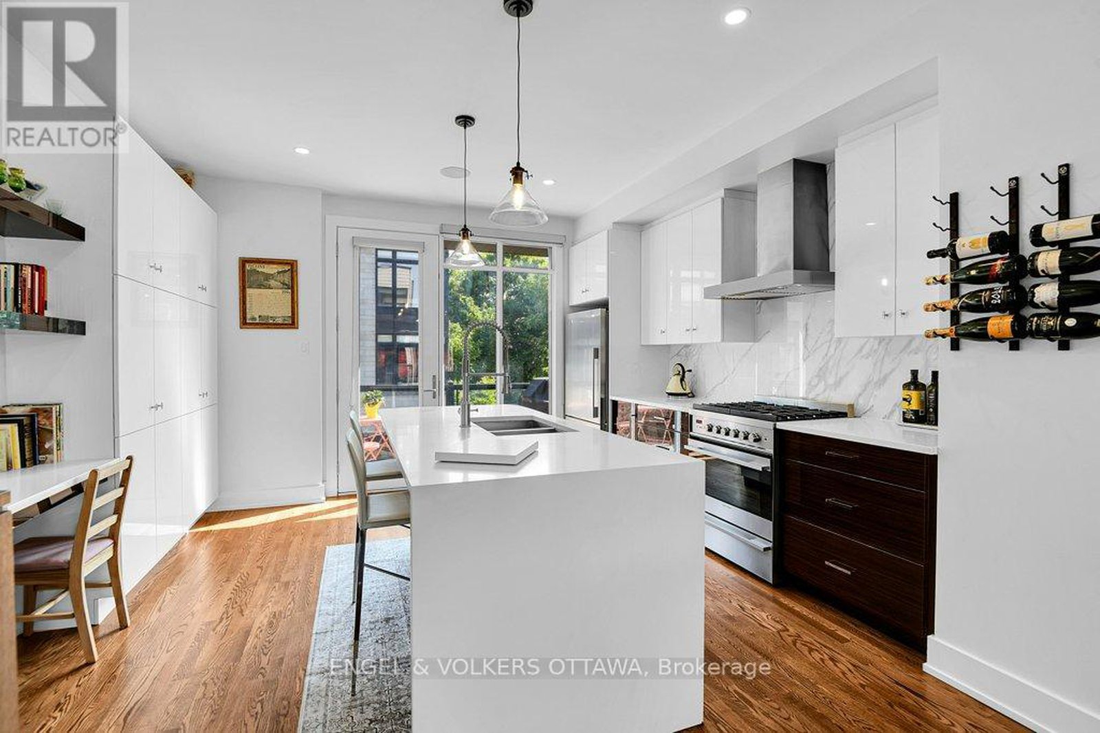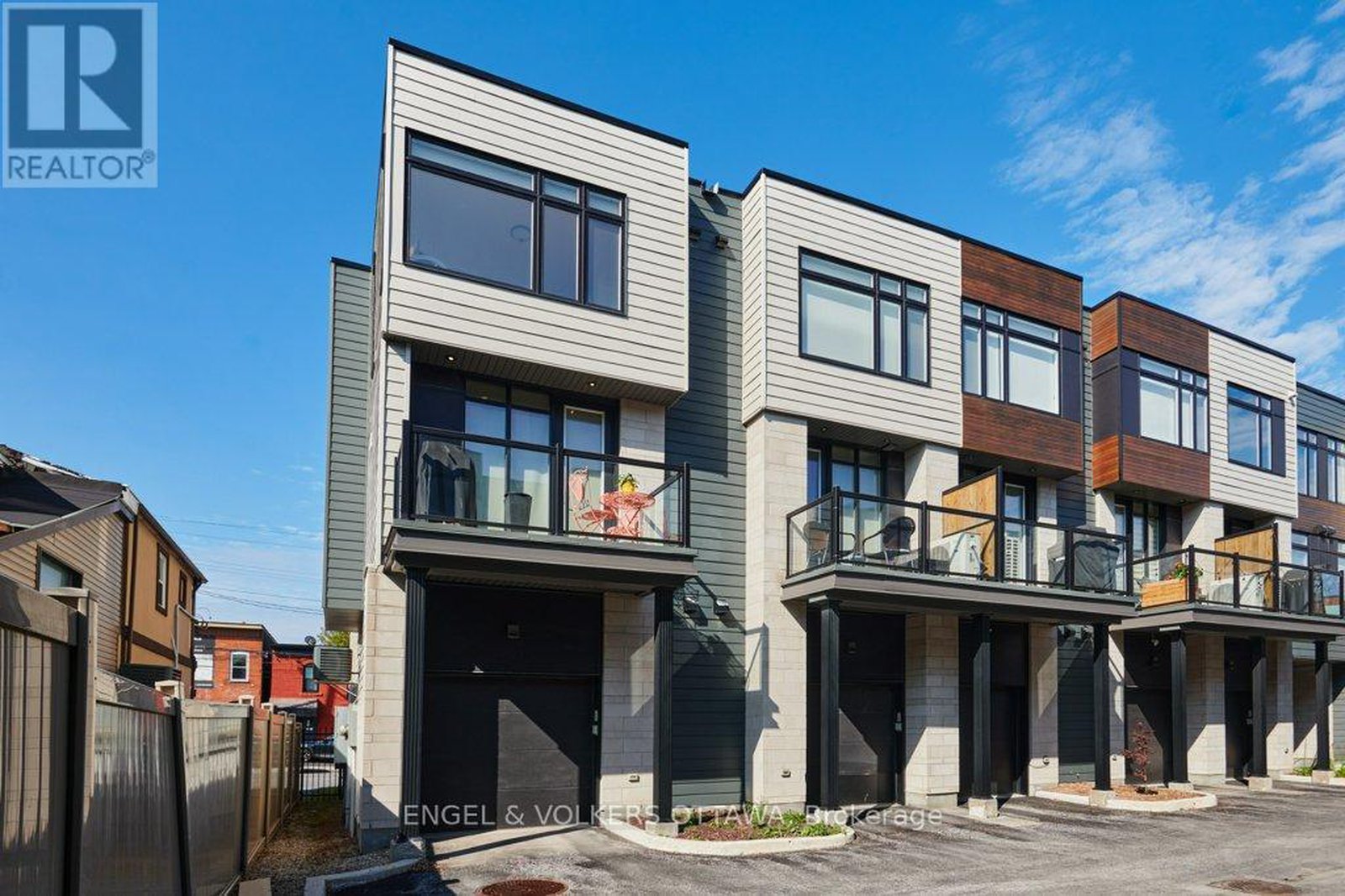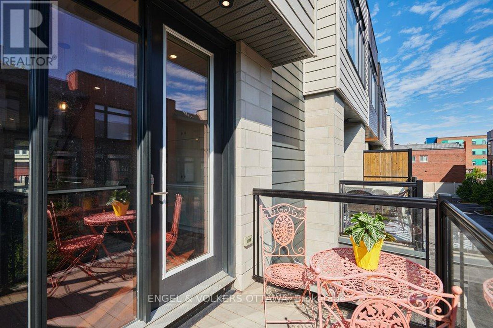 Welcome to 353E Booth Street, an elegant three-level end-unit townhome offering a refined, bespoke living experience in the heart of Ottawa. Built in 2016 and maintained to perfection, this home feels practically brand new while providing thoughtful design and sophisticated details throughout. The main level features a bright office with hardwood floors and oversized windows and is easily adaptable as a third bedroom, along with a powder room and convenient inside access to the garage, plus additional storage below. Upstairs, the open-concept second floor is designed for both style and function. A generous kitchen with ample cabinetry, built-in storage, and a workspace opens to a private balcony, perfect for morning coffee or evening drinks. The dining area is enhanced by a striking mirror feature wall, while the airy living room benefits from windows on two sides and a charming nook under the bay windows. Integrated speakers on both the second and third floors add to the ambiance. The top level is dedicated to rest and comfort, with a primary suite featuring his-and-hers closets and a private ensuite, plus a guest bedroom and second full bathroom. Laundry is thoughtfully located on this floor, with hardwood carried throughout. Perfectly positioned just steps from Pimisi LRT, Lebreton Flats, and some of Ottawa's best restaurants, with quick access to Dows Lake and scenic trails, this residence is an ideal pied-a-terre or full-time city home.