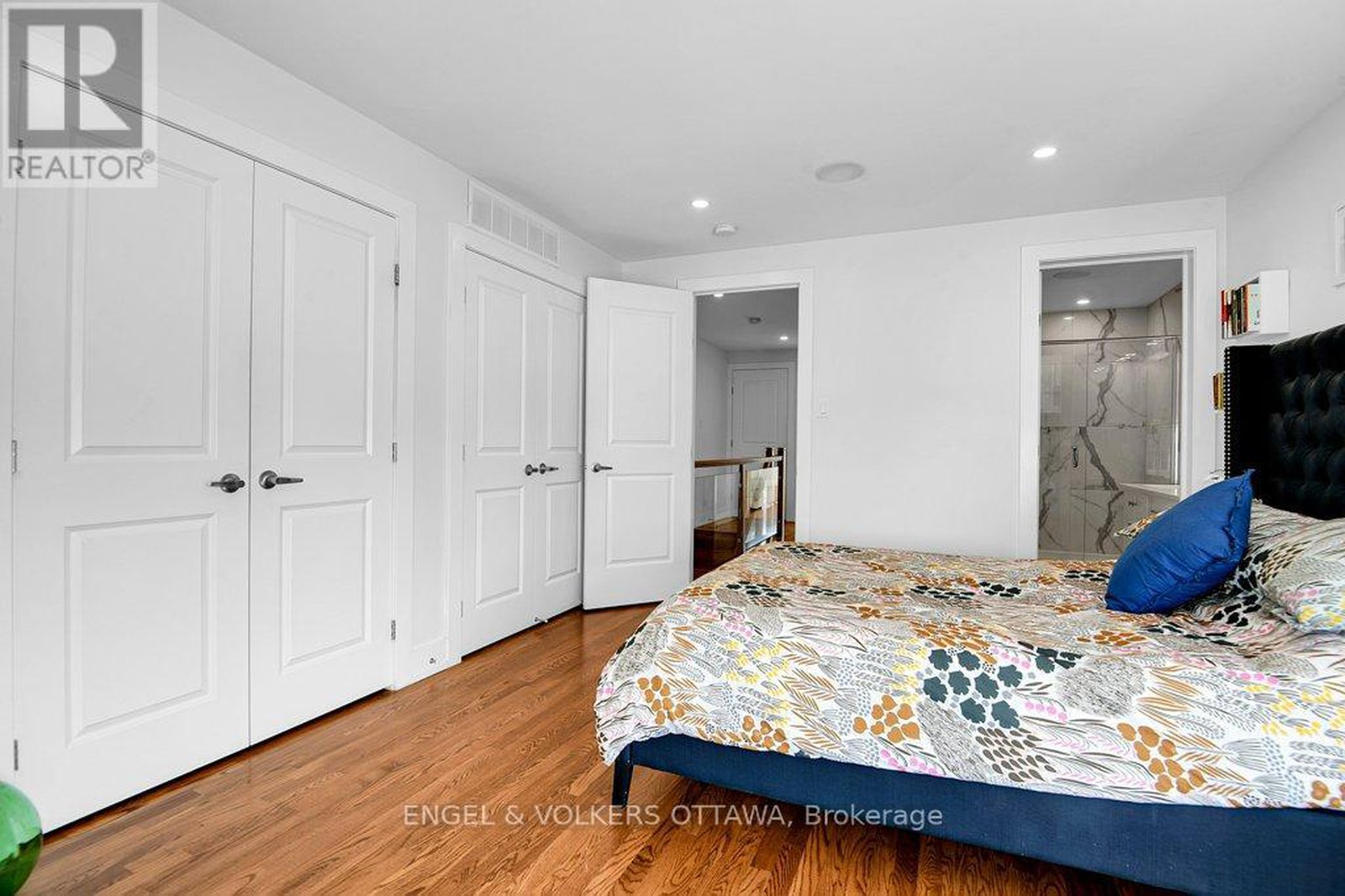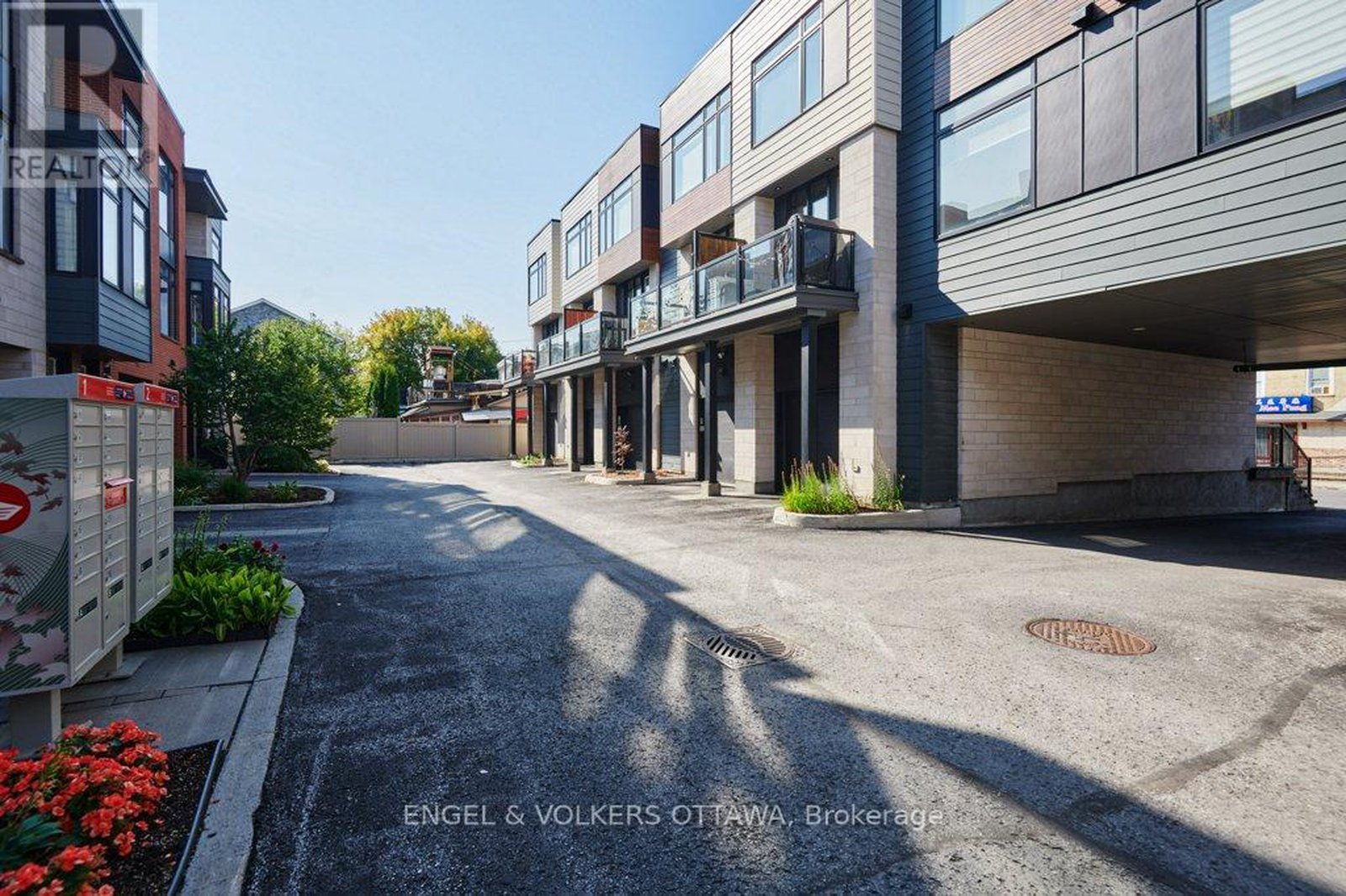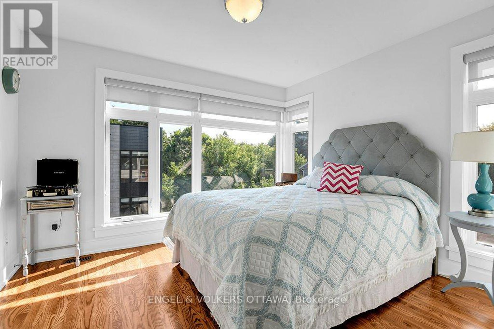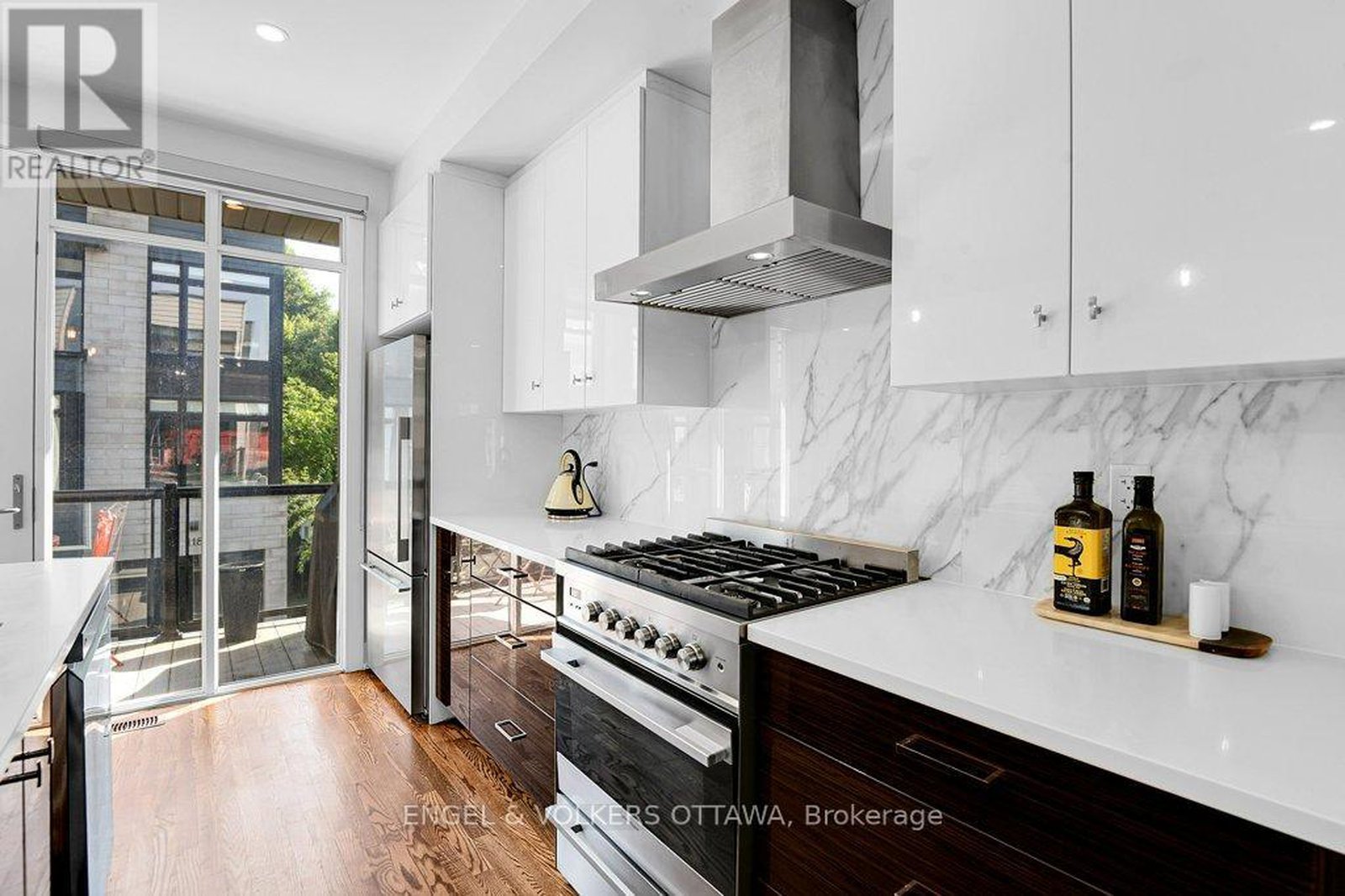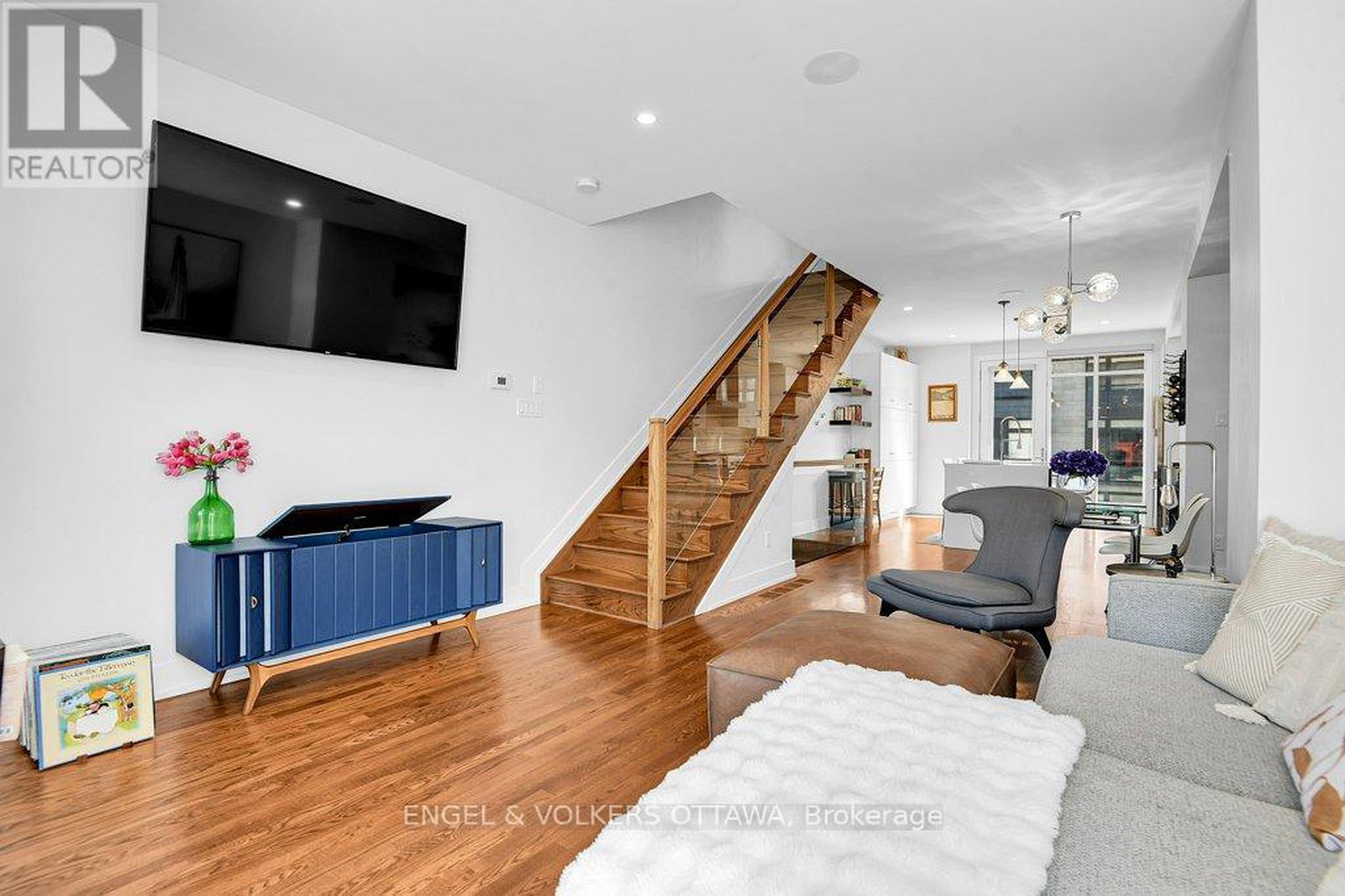 Welcome to 353E Booth Street, an elegant three-level end-unit townhome offering a refined, bespoke living experience in the heart of Ottawa. Built in 2016 and maintained to perfection, this home feels practically brand new while providing thoughtful design and sophisticated details throughout. The main level features a bright office with hardwood floors and oversized windows and is easily adaptable as a third bedroom, along with a powder room and convenient inside access to the garage, plus additional storage below. Upstairs, the open-concept second floor is designed for both style and function. A generous kitchen with ample cabinetry, built-in storage, and a workspace opens to a private balcony, perfect for morning coffee or evening drinks. The dining area is enhanced by a striking mirror feature wall, while the airy living room benefits from windows on two sides and a charming nook under the bay windows. Integrated speakers on both the second and third floors add to the ambiance. The top level is dedicated to rest and comfort, with a primary suite featuring his-and-hers closets and a private ensuite, plus a guest bedroom and second full bathroom. Laundry is thoughtfully located on this floor, with hardwood carried throughout. Perfectly positioned just steps from Pimisi LRT, Lebreton Flats, and some of Ottawa's best restaurants, with quick access to Dows Lake and scenic trails, this residence is an ideal pied-a-terre or full-time city home.