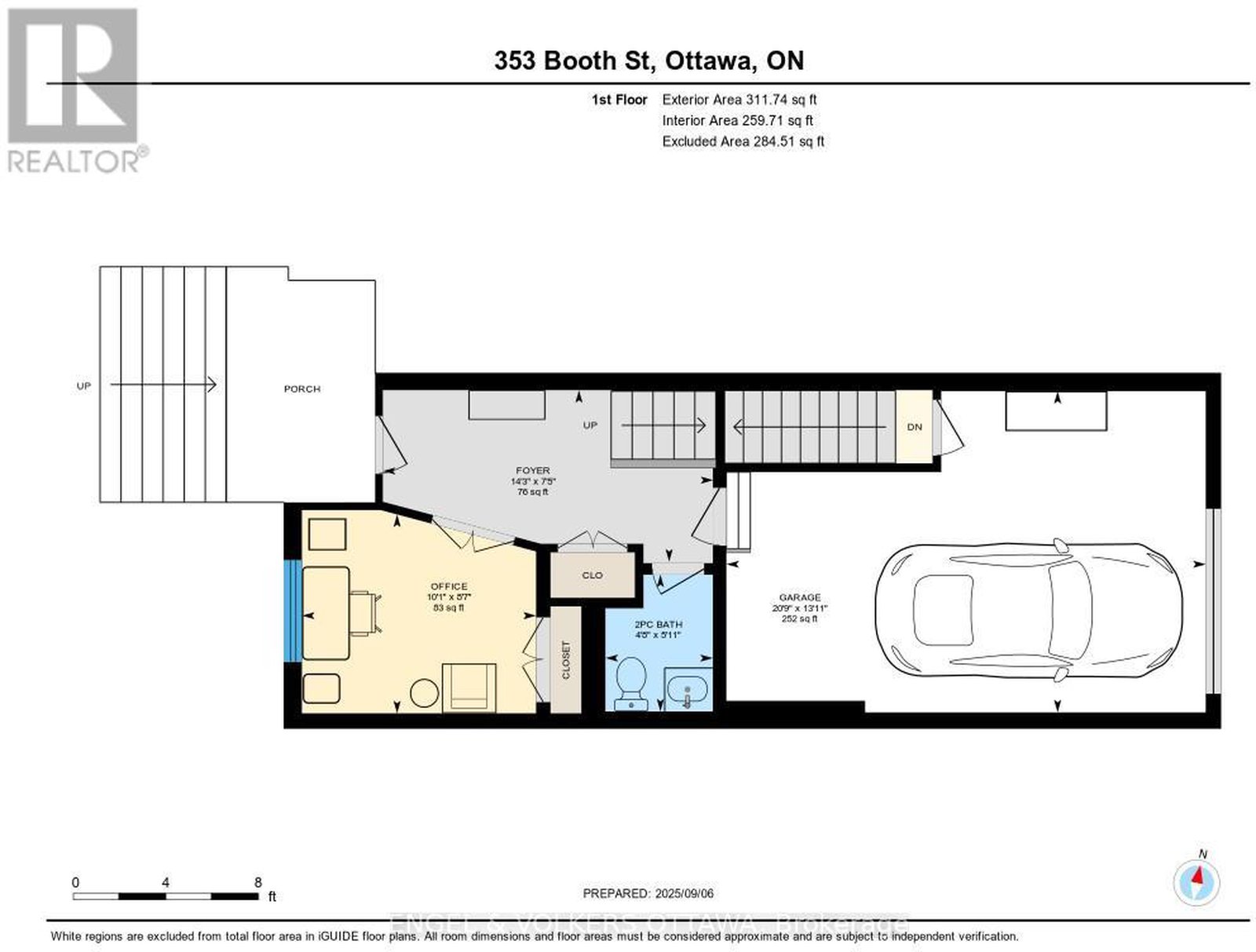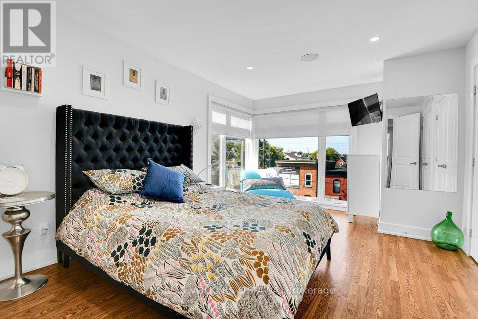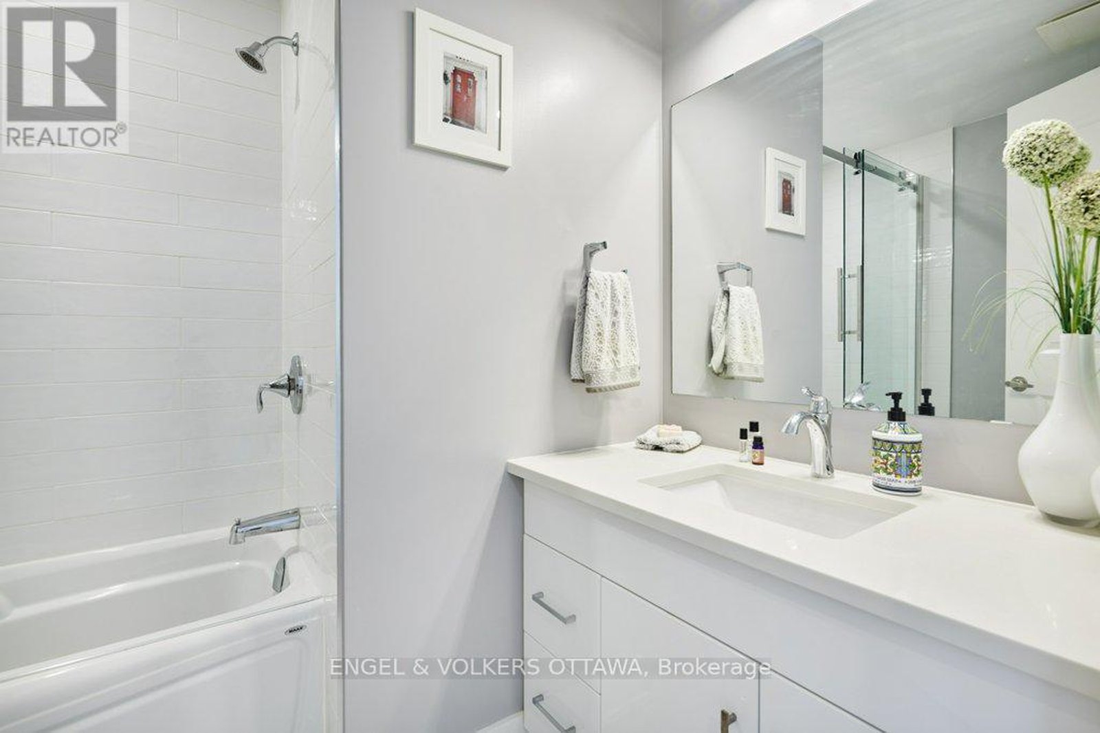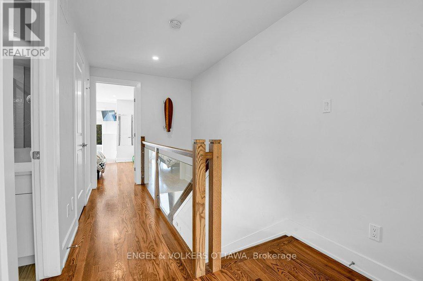 Welcome to 353E Booth Street, an elegant three-level end-unit townhome offering a refined, bespoke living experience in the heart of Ottawa. Built in 2016 and maintained to perfection, this home feels practically brand new while providing thoughtful design and sophisticated details throughout. The main level features a bright office with hardwood floors and oversized windows and is easily adaptable as a third bedroom, along with a powder room and convenient inside access to the garage, plus additional storage below. Upstairs, the open-concept second floor is designed for both style and function. A generous kitchen with ample cabinetry, built-in storage, and a workspace opens to a private balcony, perfect for morning coffee or evening drinks. The dining area is enhanced by a striking mirror feature wall, while the airy living room benefits from windows on two sides and a charming nook under the bay windows. Integrated speakers on both the second and third floors add to the ambiance. The top level is dedicated to rest and comfort, with a primary suite featuring his-and-hers closets and a private ensuite, plus a guest bedroom and second full bathroom. Laundry is thoughtfully located on this floor, with hardwood carried throughout. Perfectly positioned just steps from Pimisi LRT, Lebreton Flats, and some of Ottawa's best restaurants, with quick access to Dows Lake and scenic trails, this residence is an ideal pied-a-terre or full-time city home.
