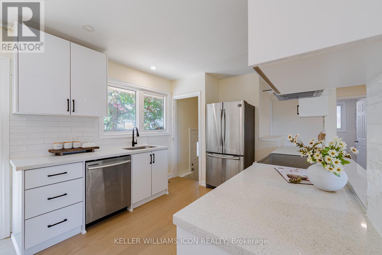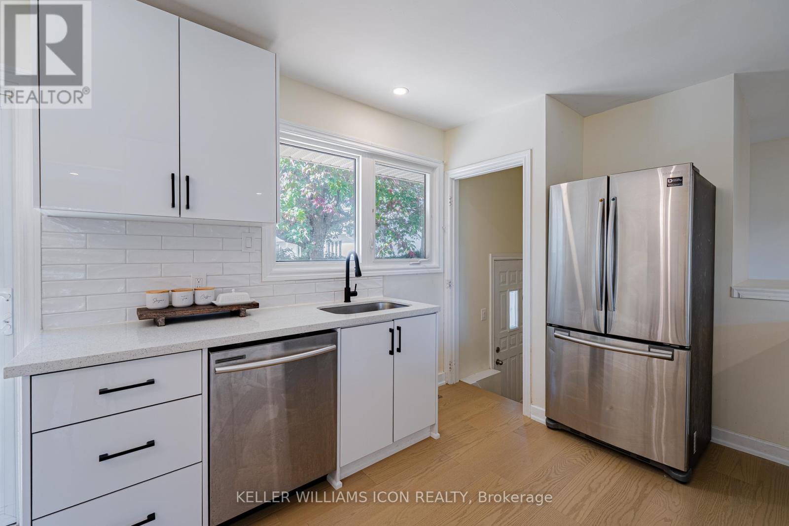 Move-in ready and full of character, this thoughtfully updated bungalow offers flexible living and excellent value. The main floor features new hardwood flooring (2025) and a bright, open layout ideal for everyday life and entertaining. The refreshed kitchen (2022) showcases quartz countertops, stainless steel appliances, sleek white cabinetry, and a new stove (2025). From the kitchen, step out to a newly built deck (2025)perfect for morning coffee or weekend BBQs. Mian floor, 2 full size bedrooms and a den could be a thrid baby bedroom, a full bathroom. A separate side entrance leads to the finished lower level you'll find a bedroom, a large recreation room, a full bathroom, and generous storage. Practical updates include an updated gas furnace (2019) and A/C (2018). Parking for three vehicles. Exceptionally located minutes to schools, parks, shopping, transit, about 15 mins drive to downtown. Large lot size with many potentials. Book your showing today