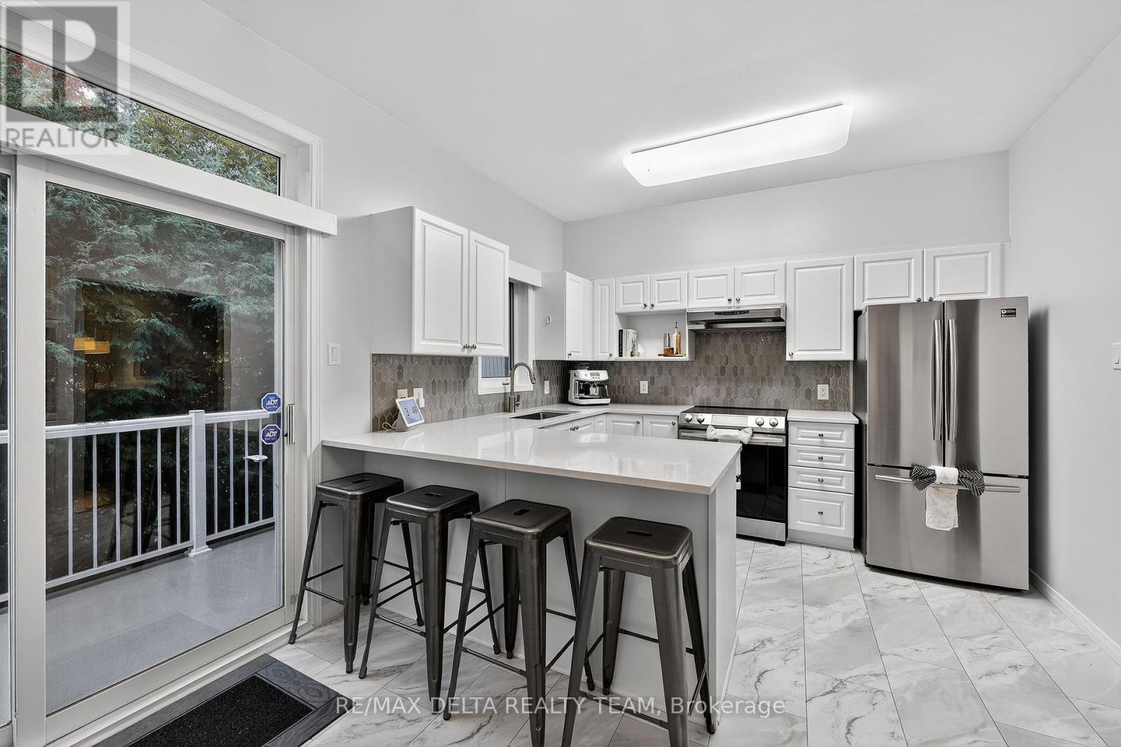 LOCATION! LOCATION! LOCATION! Welcome to your Oasis. This stunning recently updated freehold end unit townhome, designed by the renowned architect Barry Hobin, is nestled in the Oasis development in the highly sought after Manor Park area. Minutes from downtown and steps away from cycling/walking/trails, public transportation, parks and Montfort Hospital, grocery and retail stores, this beautiful home is in a fantastic setting close to anything you might need. This bright and sunny West facing brick home features 3 beds, 3 baths and an open concept living space, with gorgeous 9ft ceilings and a cozy fireplace. A private office space on the entry level in an added bonus. Enjoy the spacious and recently updated modern kitchen featuring quartz counter tops, stainless steel appliances and attached balcony. A rear patio with NO rear neighbours provides a private outdoor retreat. Beautiful hardwood floors throughout. All the bathrooms and laundry room have been recently refreshed. The finished basement includes a dedicated a family room with extra storage space. Double car garage with additional driveway parking and plenty of visitor's parking right across from your home. Last but not least, residents of this centrally located exclusive enclave of luxury townhomes have private access to the community gym, indoor pool, sauna, squash and racquet ball courts, party room with kitchen, outdoor tennis and pickleball courts, park and pond. Low maintenance exterior with snow removal and landscaping services included. Furnace 2024 and Roof 2023. Book your showing today!