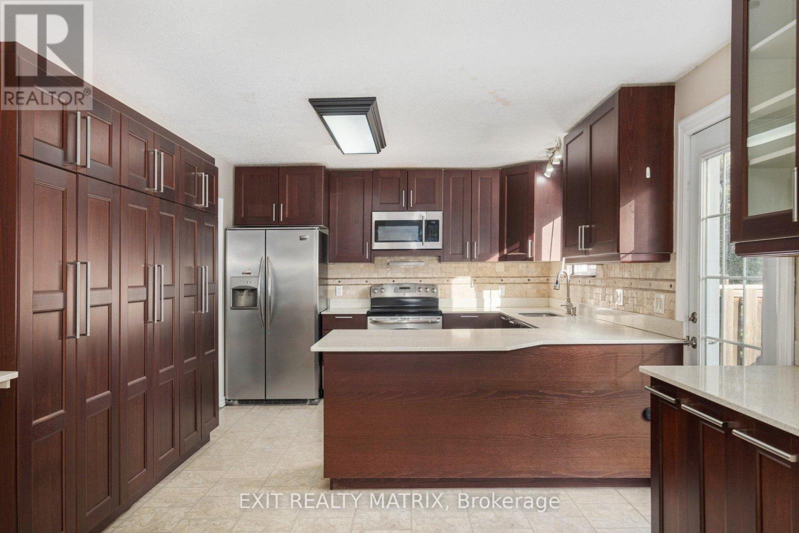 This 3+2 bedroom home with an in-law suite strikes the perfect balance between spacious living, rental income potential, and outdoor enjoyment. A fantastic investment opportunity for multi-generational families or owner-occupiers looking to offset their mortgage with rental income. With separate entrances for both units, the main floor features a kitchen with plenty of cabinet and counter space, perfect for preparing meals. For buyers who prefer a single-family layout, the lower level can easily be reintegrated with the main floor, offering flexibility to suit changing needs. The living room offers a spacious gathering area. Three generously-sized bedrooms and a full bathroom with laundry complete this level. The lower suite, mostly added in 2022, is a roomy 2-bedroom, 1-bathroom unit with its own in-suite laundry for tenant convenience. The open-concept design boasts a bright, airy living room, a modern yet rustic kitchen with a full-size fridge and stove, and a cozy dining area. With its functional layout and ample living space, this suite is well-suited to attract quality tenants and generate excellent rental income. Situated on a large corner lot surrounded by mature trees, this property offers privacy and a peaceful setting. The expansive deck is perfect for outdoor dining, while the charming gazebo, nestled among lush greenery, creates a serene atmosphere ideal for relaxation and entertaining. Located near local amenities, arena, library, parks, and the Osgoode Link Pathway, this home is perfect for those who enjoy an active lifestyle. The nearby Osgoode Link Pathway offers a beautiful walking and biking trail, allowing you to connect with nature and stay active. Schedule a showing today to see this incredible home for yourself - its interior will exceed your expectations!