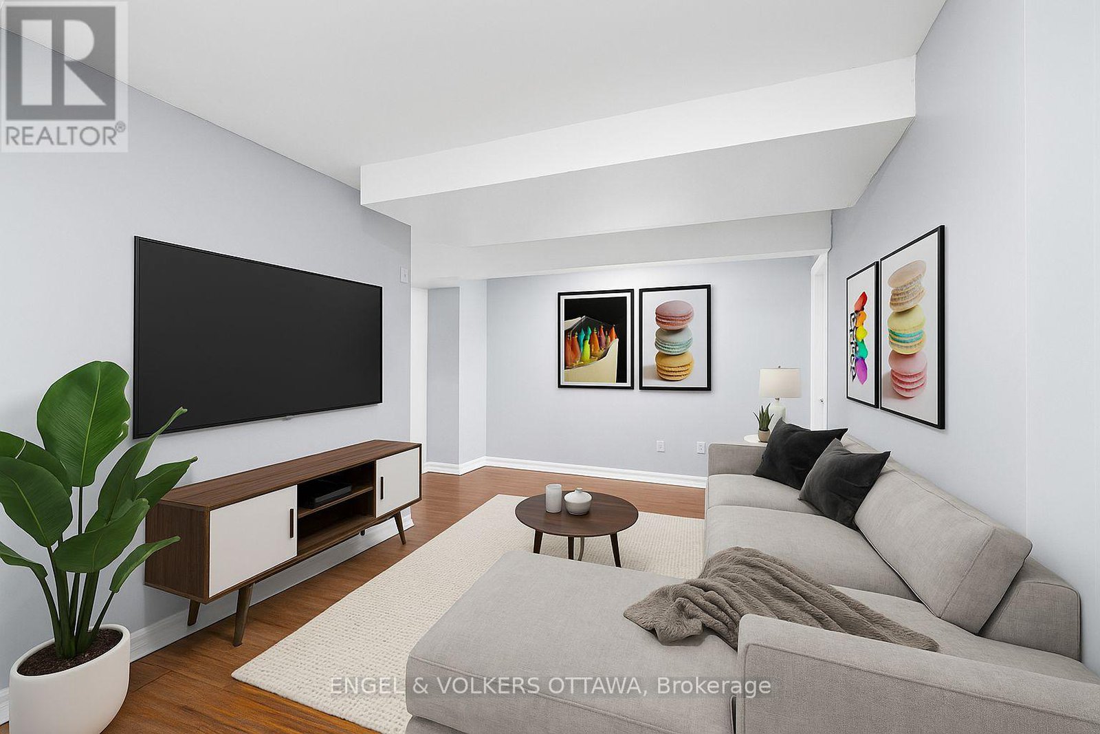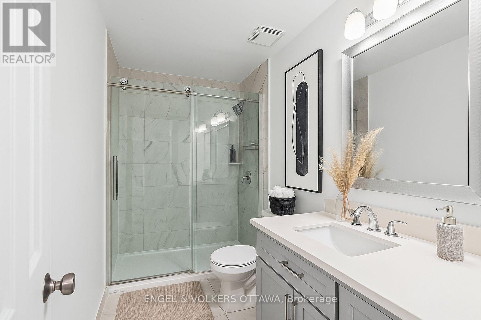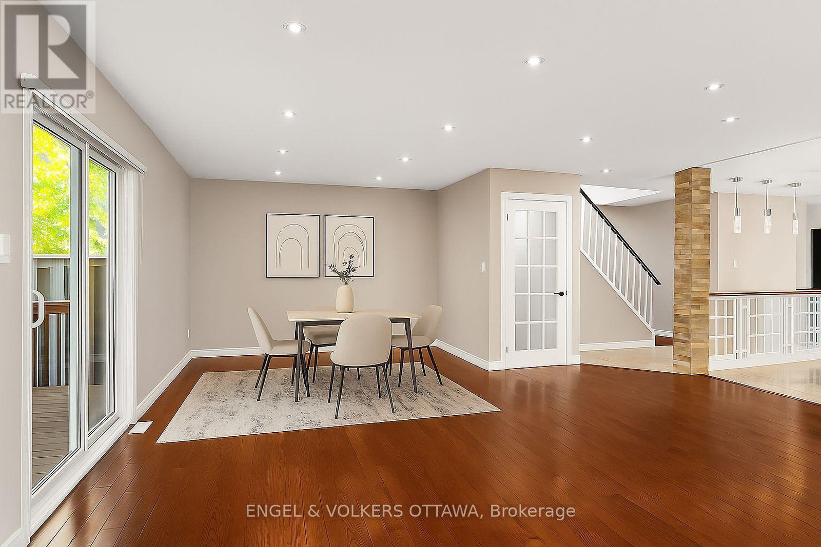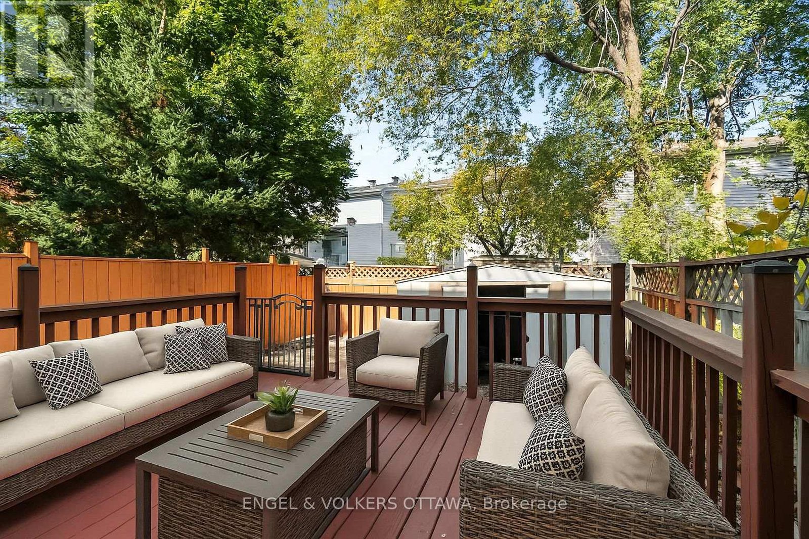 This family-friendly end-unit townhome in South Keys offers practical open-concept living in an extremely well-connected area of the city. The tiled entryway has double closets and a convenient powder room, while the kitchen boasts granite countertops, white shaker cabinetry, a full-height tile backsplash, and stainless steel appliances. A large peninsula with pendant lighting provides both functionality and space for casual dining. Adjacent, the dining area features hardwood flooring and recessed lighting, which run seamlessly into the bright living room, where a stacked-stone feature wall with a built-in fireplace creates a welcoming focal point. Sliding glass doors open to the backyard deck, making it easy to transition from indoor to outdoor living during the summer. Upstairs, the primary bedroom has two double-door closets and a 4-piece ensuite. Two additional bedrooms, which share a bathroom with a glass-enclosed walk-in shower with tile and a modern vanity, make for the perfect children's bedrooms. The finished basement has a spacious recreation room and a fourth bedroom, while an additional room with tiled flooring and direct access to a half bathroom makes for a quiet work or hobby space. Outside, a raised deck and fully fenced yard offer a private, low-maintenance retreat perfect for entertaining or relaxing. Mature trees add natural beauty and shade, while a garden shed provides practical storage. This home is close to parks and walking trails, making it ideal for those that enjoy spending quality time outdoors. Nearby amenities include South Keys Shopping Centre and its transit hub, shops and restaurants along Hunt Club Rd and Bank St, as well as quick access to the airport.