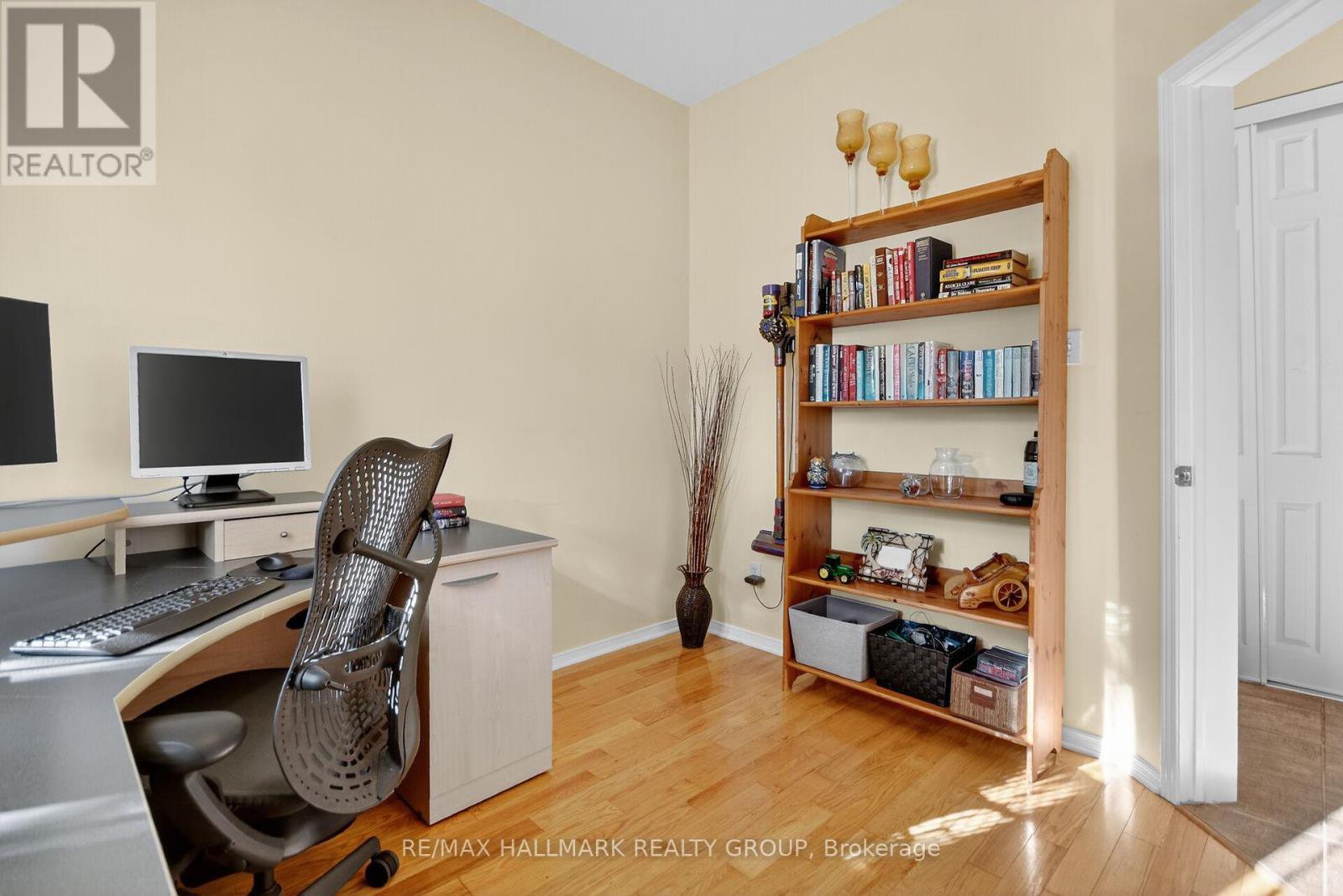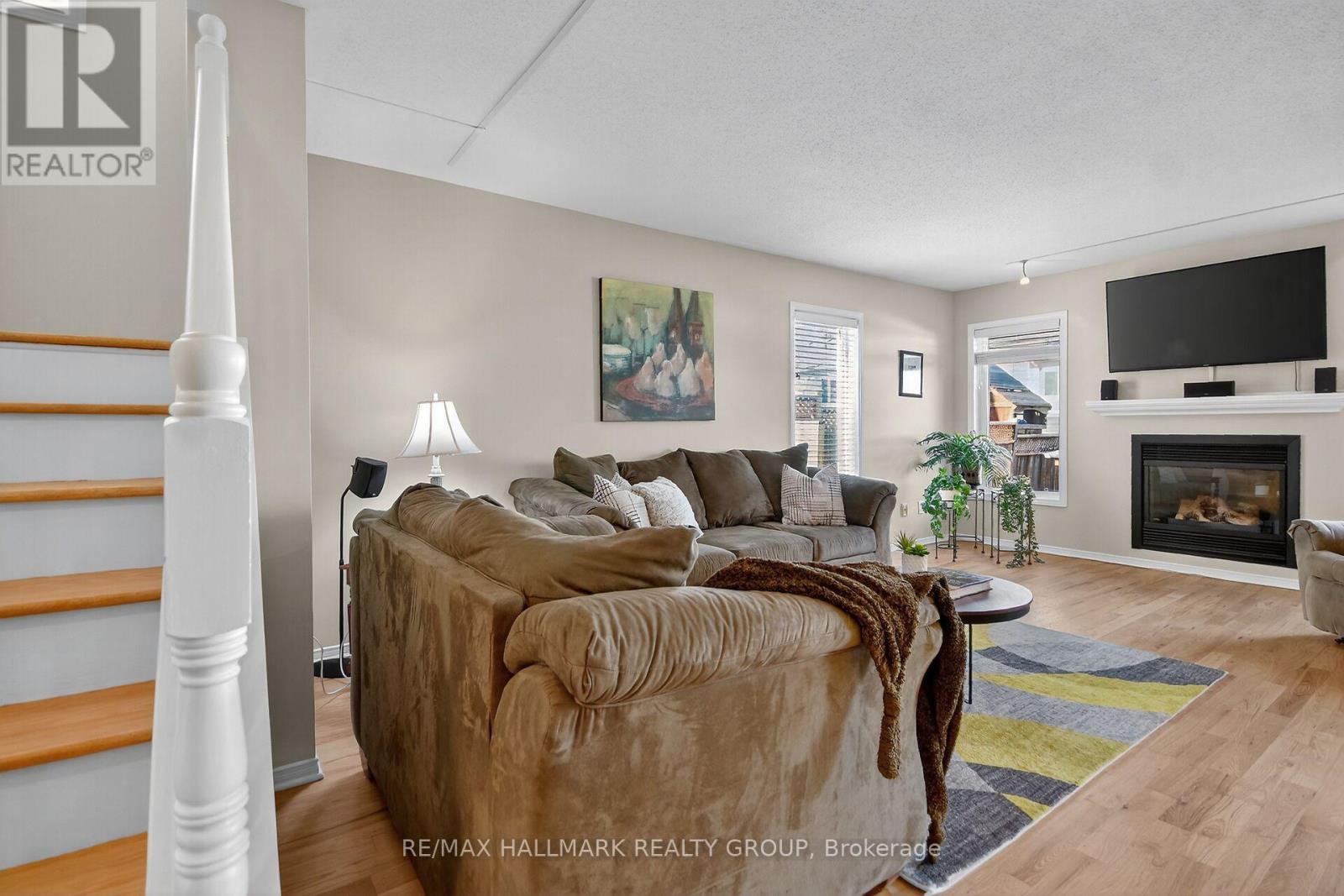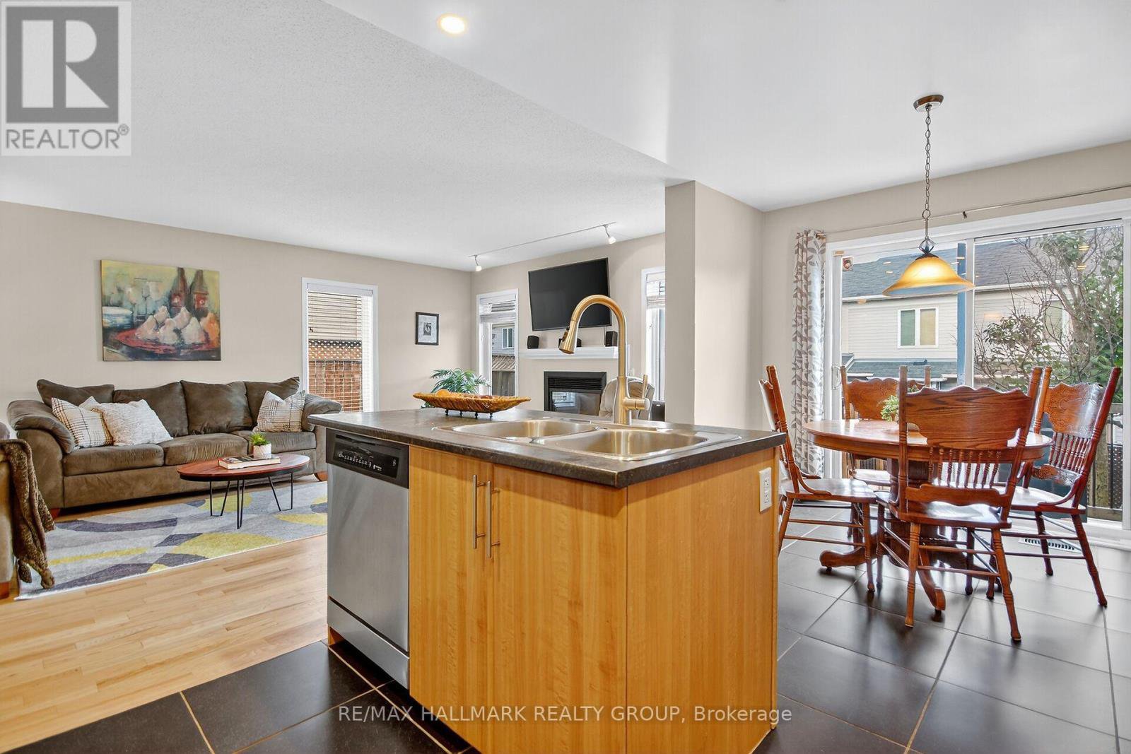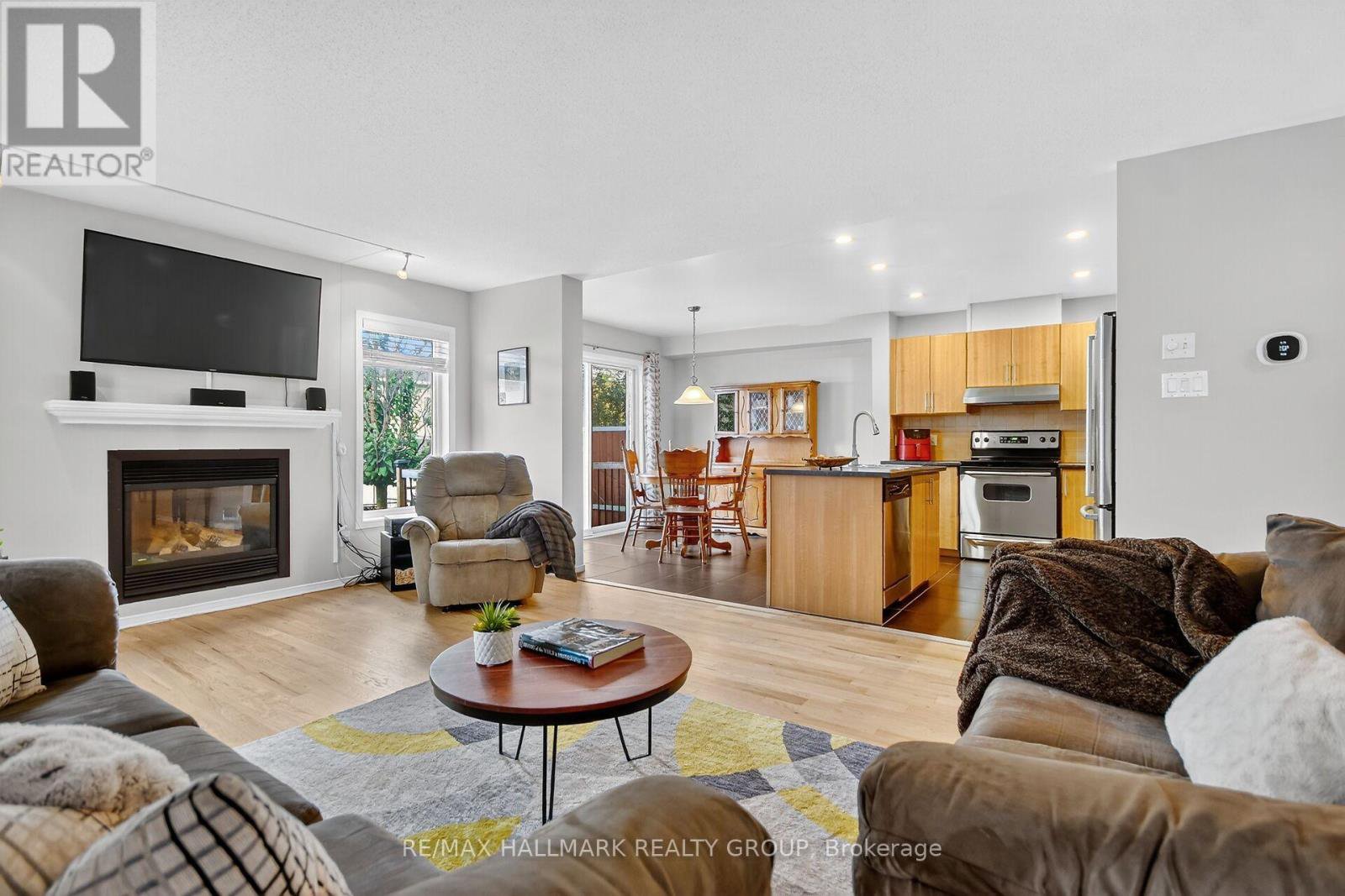 Discover your dream home in this beautiful end-unit Minto Helmsley townhome. Enter through the covered front entrance. The main floor office offers convenience, privacy and ideal for home office or kids playroom. The main floor opens up to the spacious great room, complete with a cozy fireplace flanked by windows and gleaming hardwood floors. The expansive kitchen boasts stainless steel appliances, lots of counter space while the dining areas patio doors open to a serene backyard. Upstairs the huge primary bedroom features an ensuite bath and large walk in closet. Two additional bedrooms big in size and full bathroom complete the 2nd level. The fenced backyard offers large patio area for relaxing with family and friends. Unfinished basement is just waiting for your vision. Rare 25 ft. home width vs regular 20 ft. Main level & stairs hardwood refinished in 2025. Furnace & heat pump (AC) 2025, ensuite ceramic tile 2024, HWT 2025. Carpets in 2nd level & stairs to lower level 2023