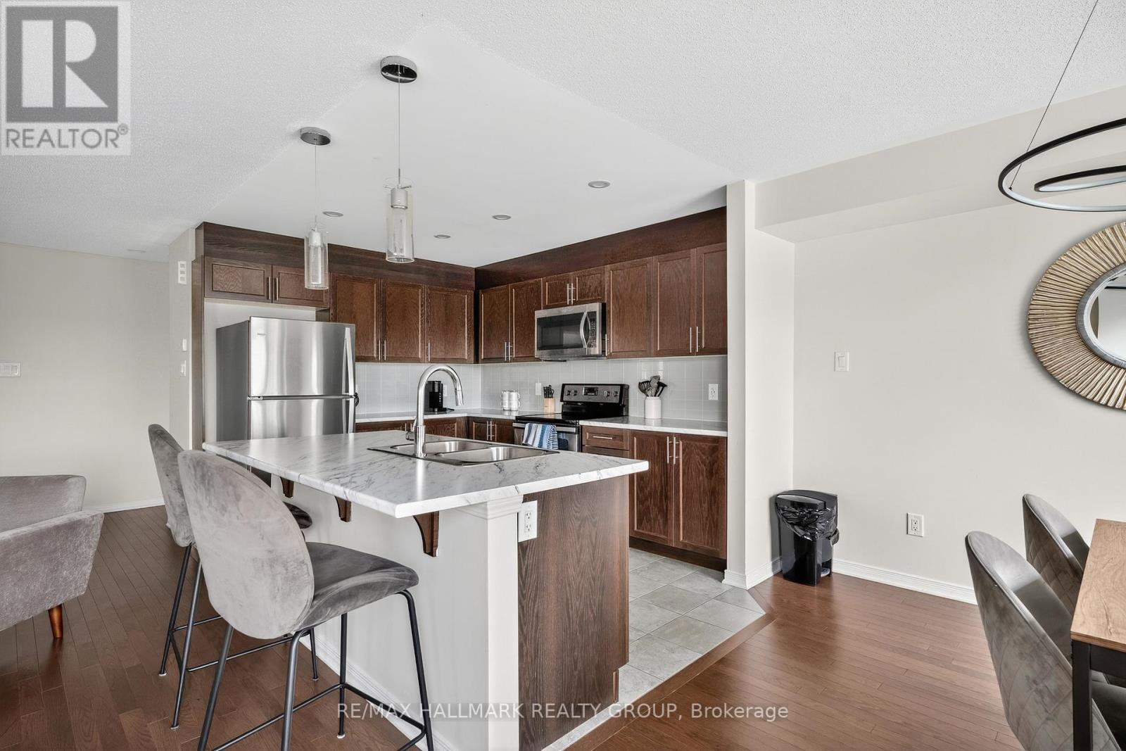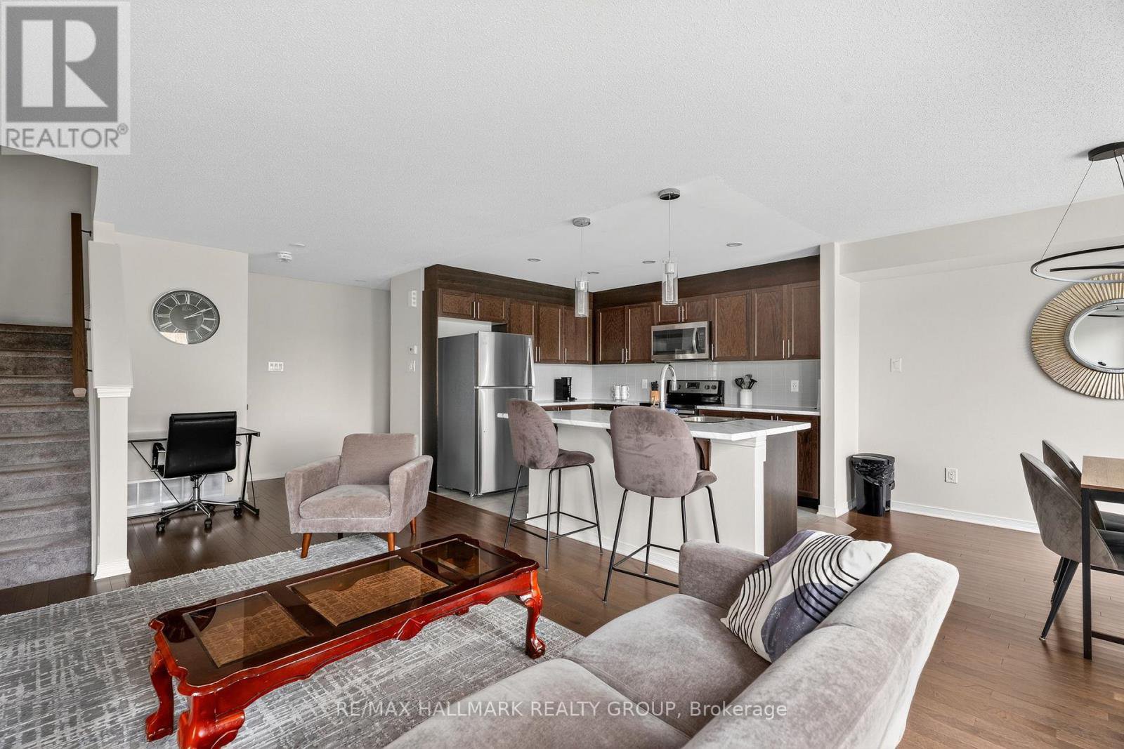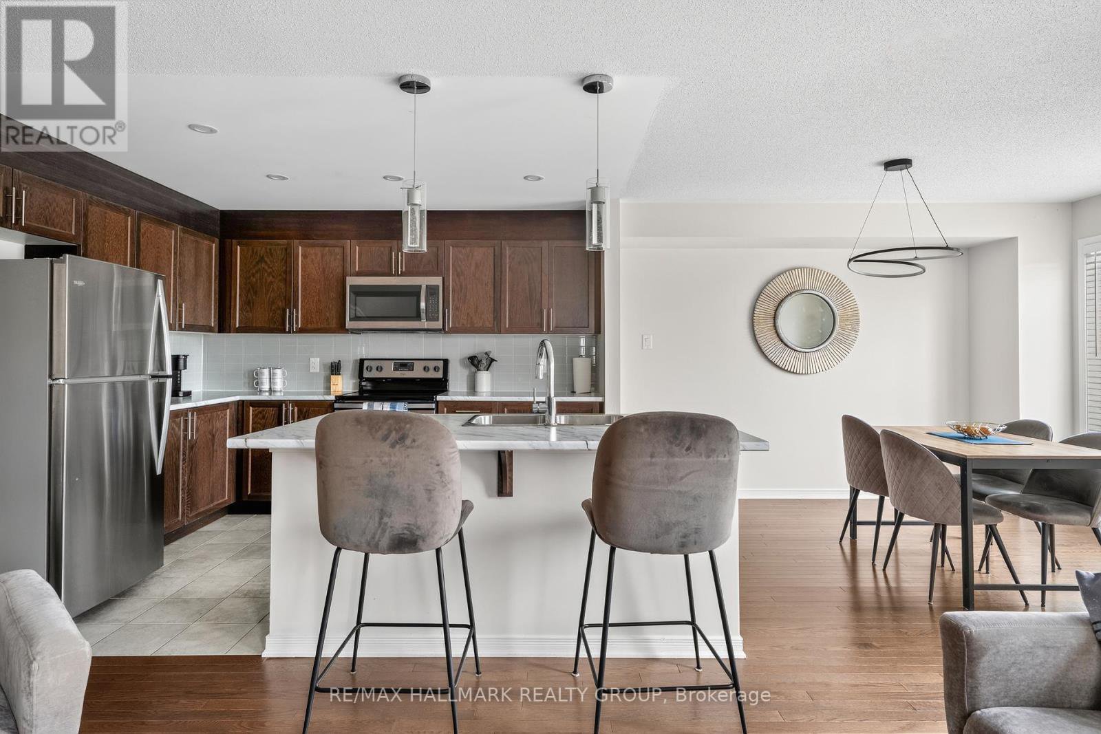 END UNIT Beautifully Updated and Move-In Ready Townhome! Modern 2 bedroom, 2 bathroom townhome offering a perfect blend of style, comfort, and convenience in a sought-after location. Attractive exterior with single car garage and additional driveway parking. The main level features a bright flex space ideal for a home office, gym, or studio, along with convenient garage access. Stairs lead to a spacious second floor with hardwood flooring, pot lights, and large windows that fill the space with natural light. The open concept living and dining areas flow into a modern kitchen with stainless steel appliances, tiled backsplash, ample cabinetry, generous counter space, and a breakfast bar. Walk out to your private balcony, perfect for enjoying your morning coffee or relaxing in the evening. The top floor offers two well-sized bedrooms with plush carpet. The primary bedroom includes a large walk-in closet. A convenient laundry room is on the top floor! A full bathroom completes this level. Located on a quiet private street just minutes from parks, schools, shopping, restaurants, and everyday essentials. Truly move-in ready. Book your showing today!