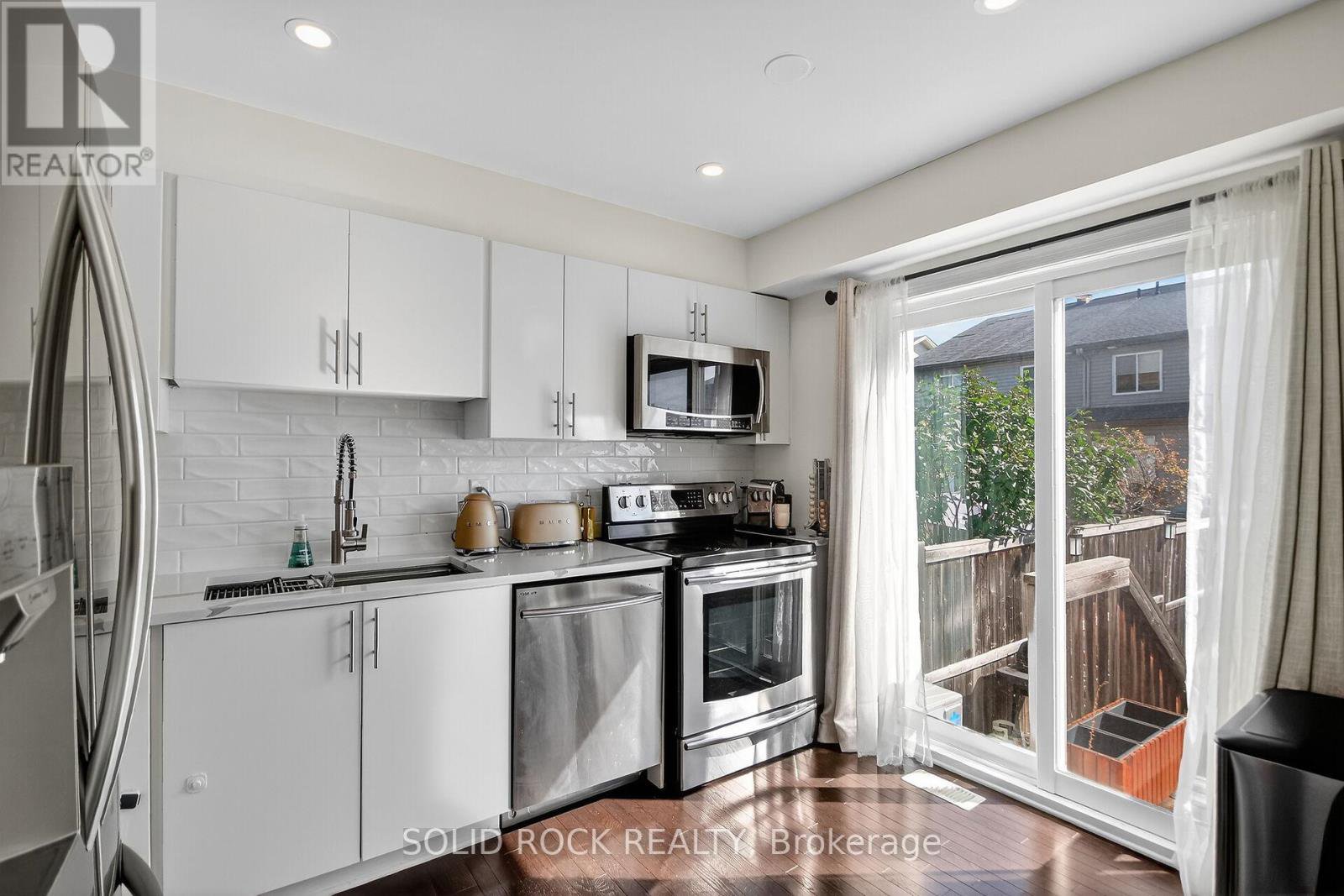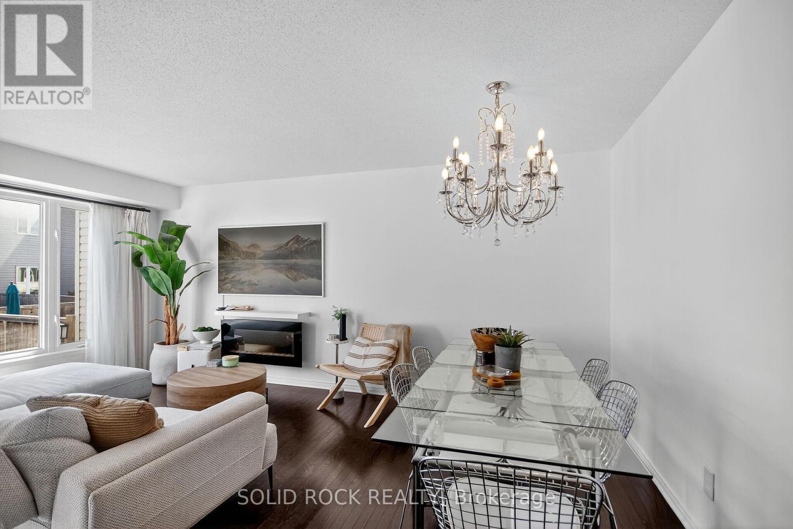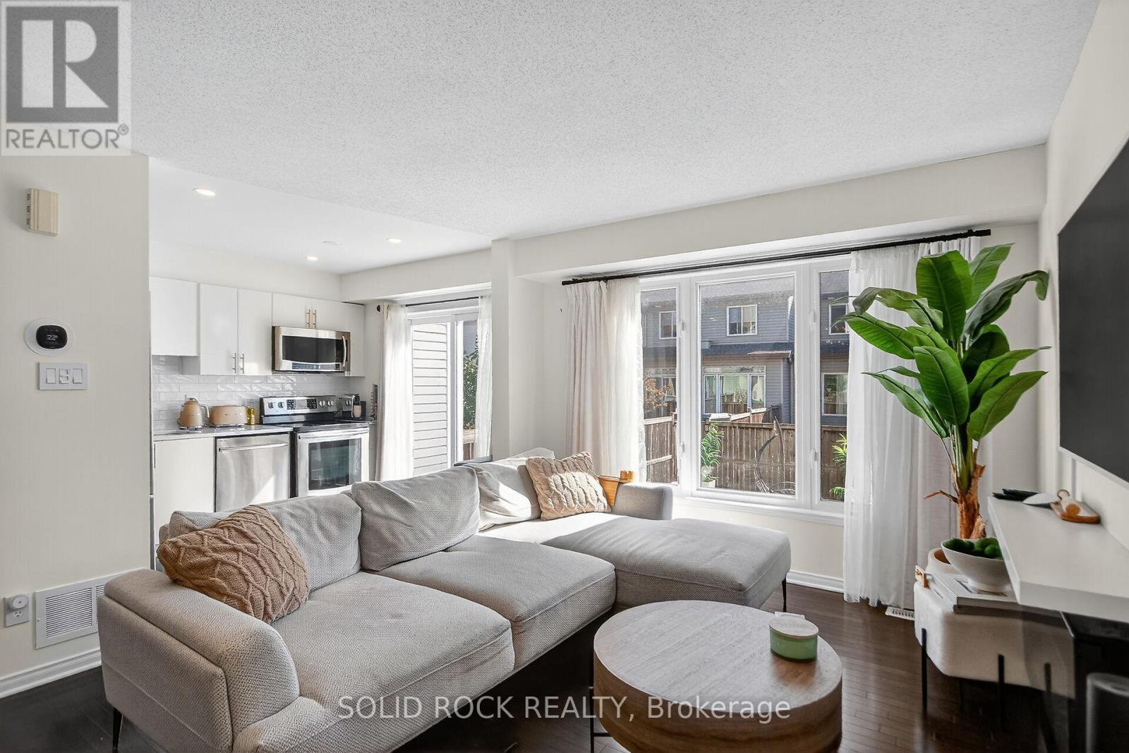 Welcome to The Avondale III by Claridge, a stylish and affordable freehold townhome, located in one of Barrhaven's most convenient and connected neighbourhoods. Enjoy being just minutes from Costco, major shopping, schools, parks, and quick highway access for an easy commute. Inside, a bright foyer opens into a beautifully designed open-concept living and dining area, featuring elegant hardwood floors and a modern chandelier that adds a touch of sophistication. The updated kitchen boasts sleek white cabinetry, stainless steel appliances, and a crisp backsplash, with a large patio door leading to the private fenced backyard and interlock patio perfect for relaxing or entertaining. Upstairs, the spacious primary bedroom offers plenty of closet space and natural light, complemented by two additional bedrooms and a full 4-piece bath. The finished lower level provides a comfortable recreation area ideal for a home office, gym, or movie room adding versatility and extra living space. Move-in ready, stylish, and perfectly located this Barrhaven home delivers exceptional value and convenience for todays lifestyle.