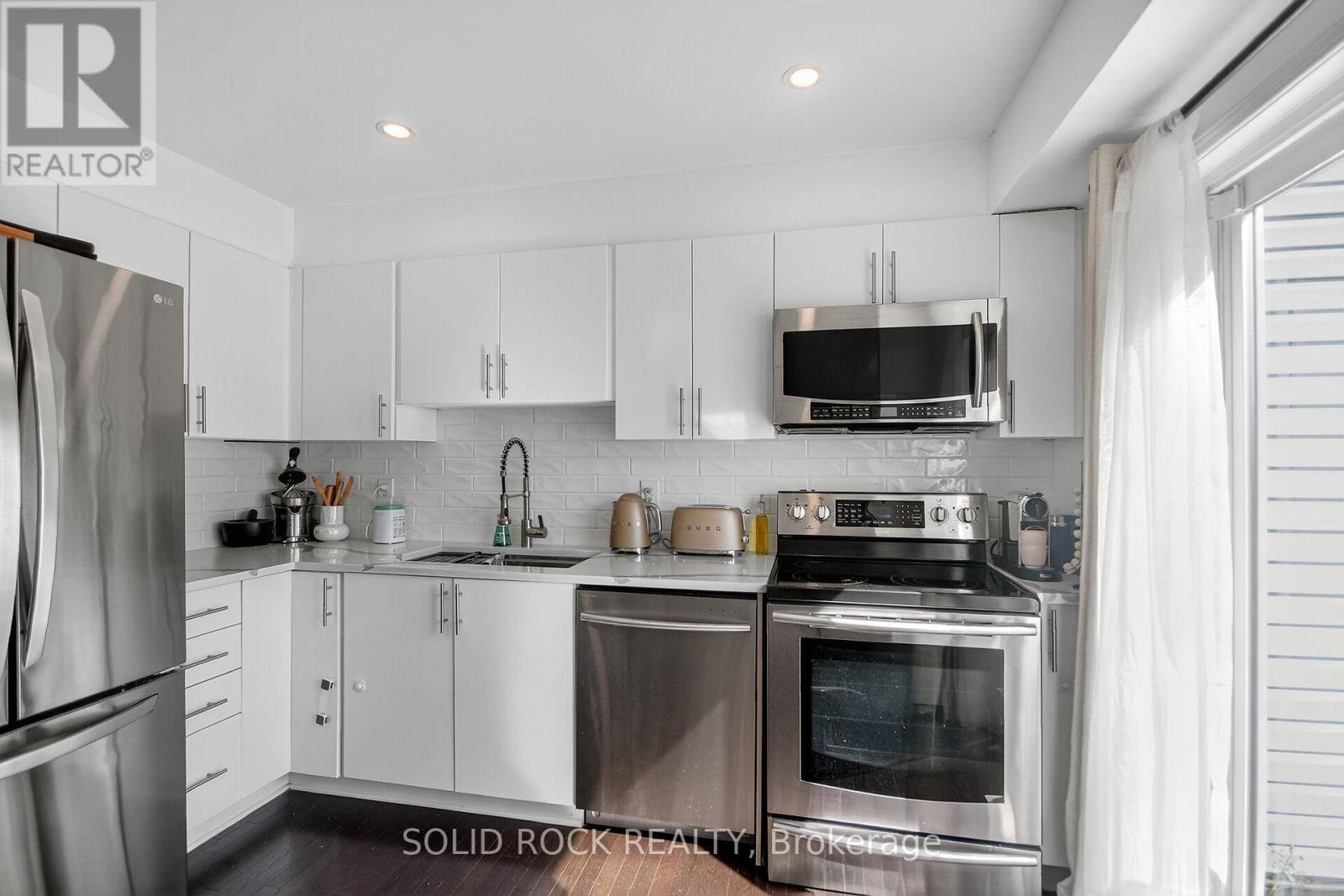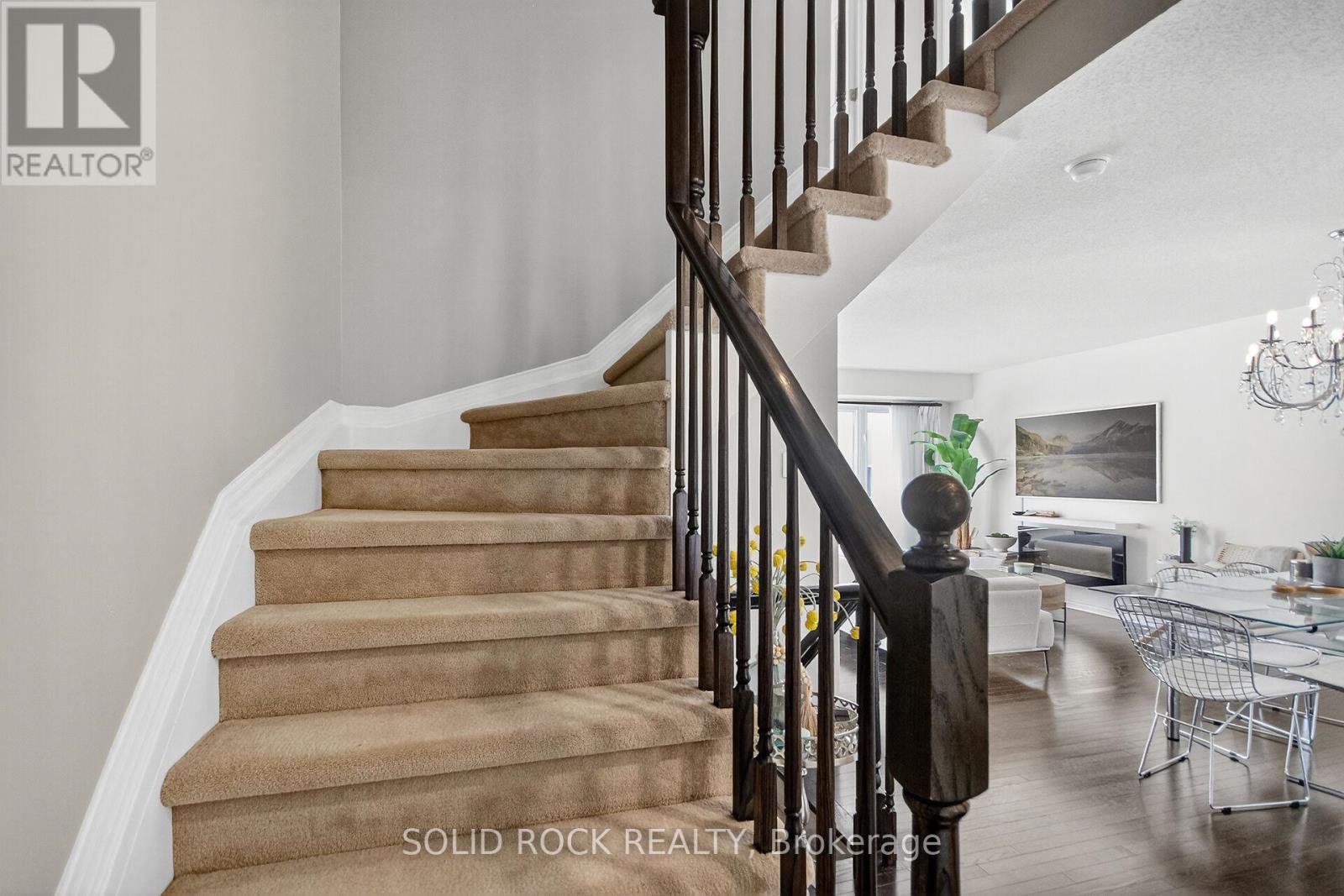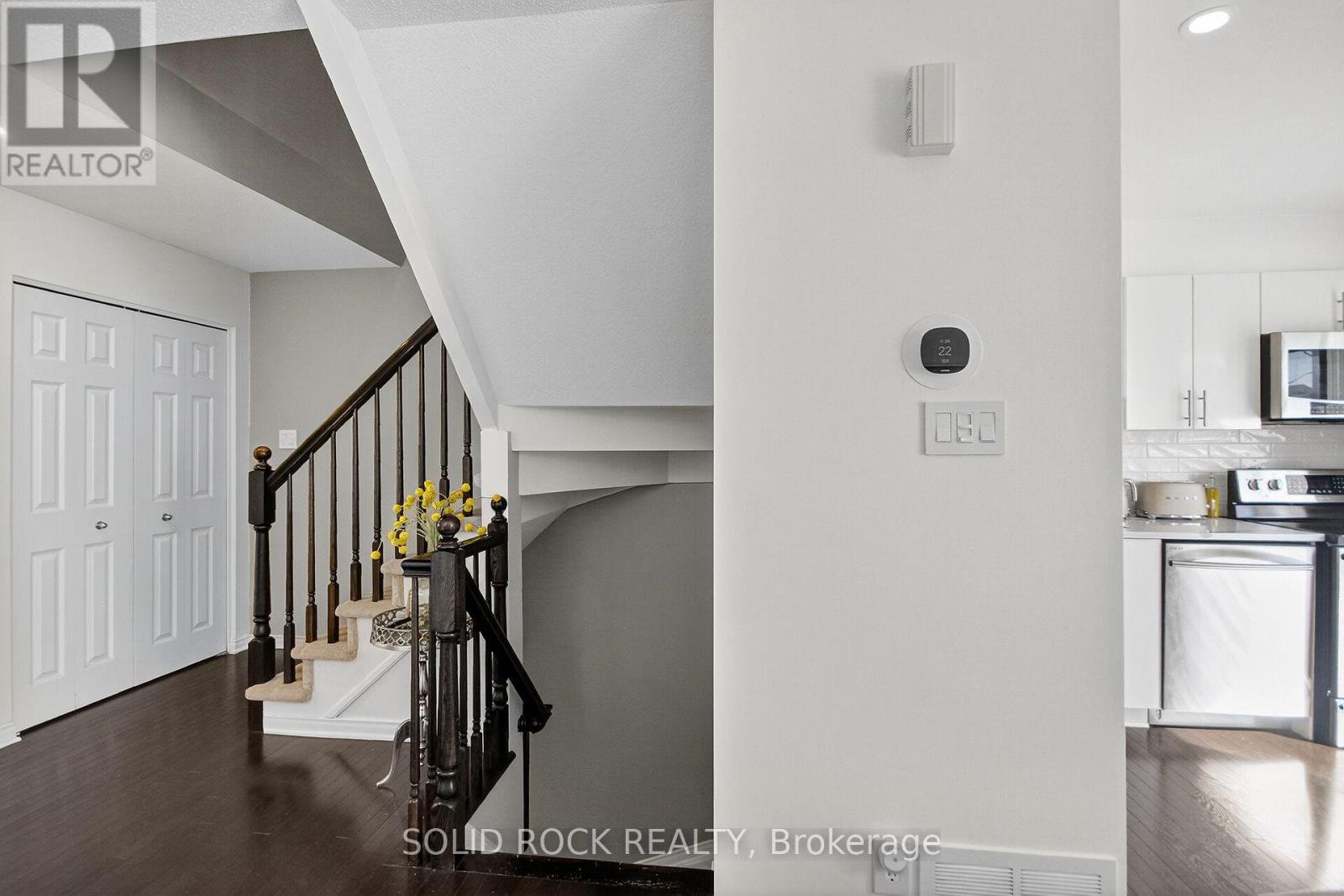 Welcome to The Avondale III by Claridge, a stylish and affordable freehold townhome, located in one of Barrhaven's most convenient and connected neighbourhoods. Enjoy being just minutes from Costco, major shopping, schools, parks, and quick highway access for an easy commute. Inside, a bright foyer opens into a beautifully designed open-concept living and dining area, featuring elegant hardwood floors and a modern chandelier that adds a touch of sophistication. The updated kitchen boasts sleek white cabinetry, stainless steel appliances, and a crisp backsplash, with a large patio door leading to the private fenced backyard and interlock patio perfect for relaxing or entertaining. Upstairs, the spacious primary bedroom offers plenty of closet space and natural light, complemented by two additional bedrooms and a full 4-piece bath. The finished lower level provides a comfortable recreation area ideal for a home office, gym, or movie room adding versatility and extra living space. Move-in ready, stylish, and perfectly located this Barrhaven home delivers exceptional value and convenience for todays lifestyle.
