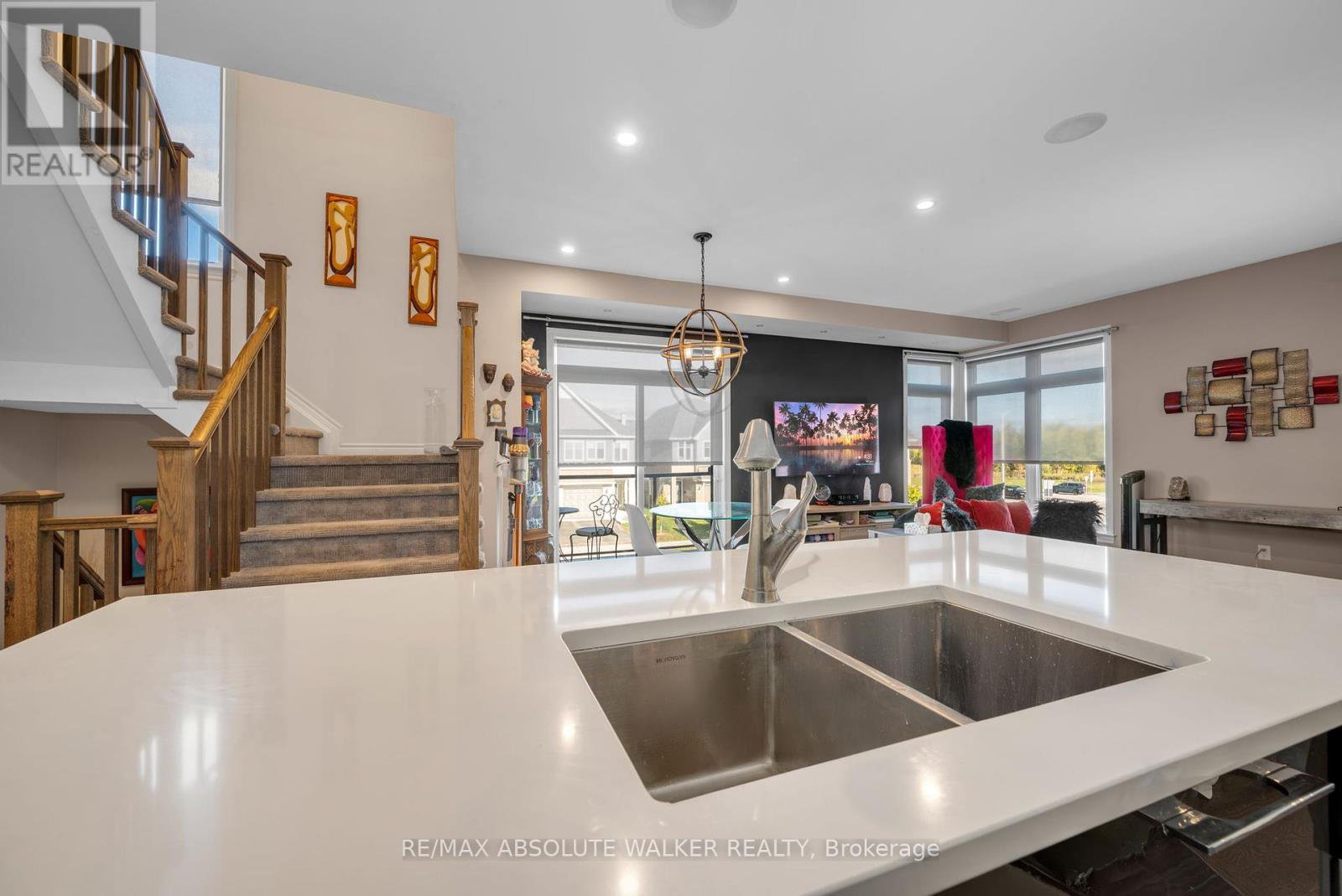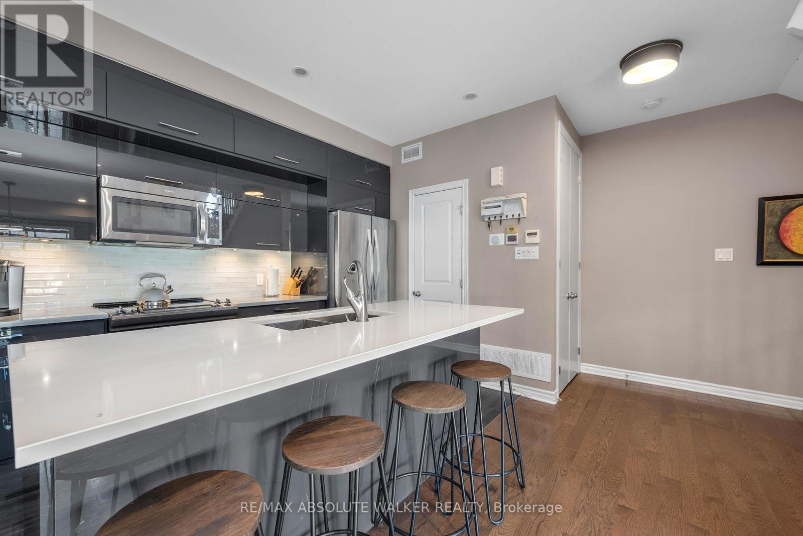 Welcome to this beautifully maintained end-unit townhome, ideally located in the heart of Orléans. Spanning three spacious levels, this move-in-ready home offers a bright, open-concept layout perfectly suited for professionals, couples, or small families. With 2 generously sized bedrooms and 2.5 bathrooms, this home provides comfort, functionality, and flexibility.The main floor features an open concept layout with a kitchen that flows seamlessly into the dining and living areas ideal for entertaining or simply relaxing at home. The kitchen is equipped with hard surface countertops, stainless steel appliances, and plenty of storage, combining style and practicality. As an end unit, enjoy added privacy and bonus natural light from extra windows that enhance the home's airy, welcoming feel. Upstairs, both bedrooms offer ample space and easy access to full bathrooms, including a private ensuite. A convenient office room on the main floor adds to the home's thoughtful design.Additional features include a built-in alarm system for peace of mind and security. Perfectly situated just minutes from parks, top-rated schools, shopping, and public transit, this modern gem offers the best of comfort and convenience in one of Orléans most desirable neighborhoods.