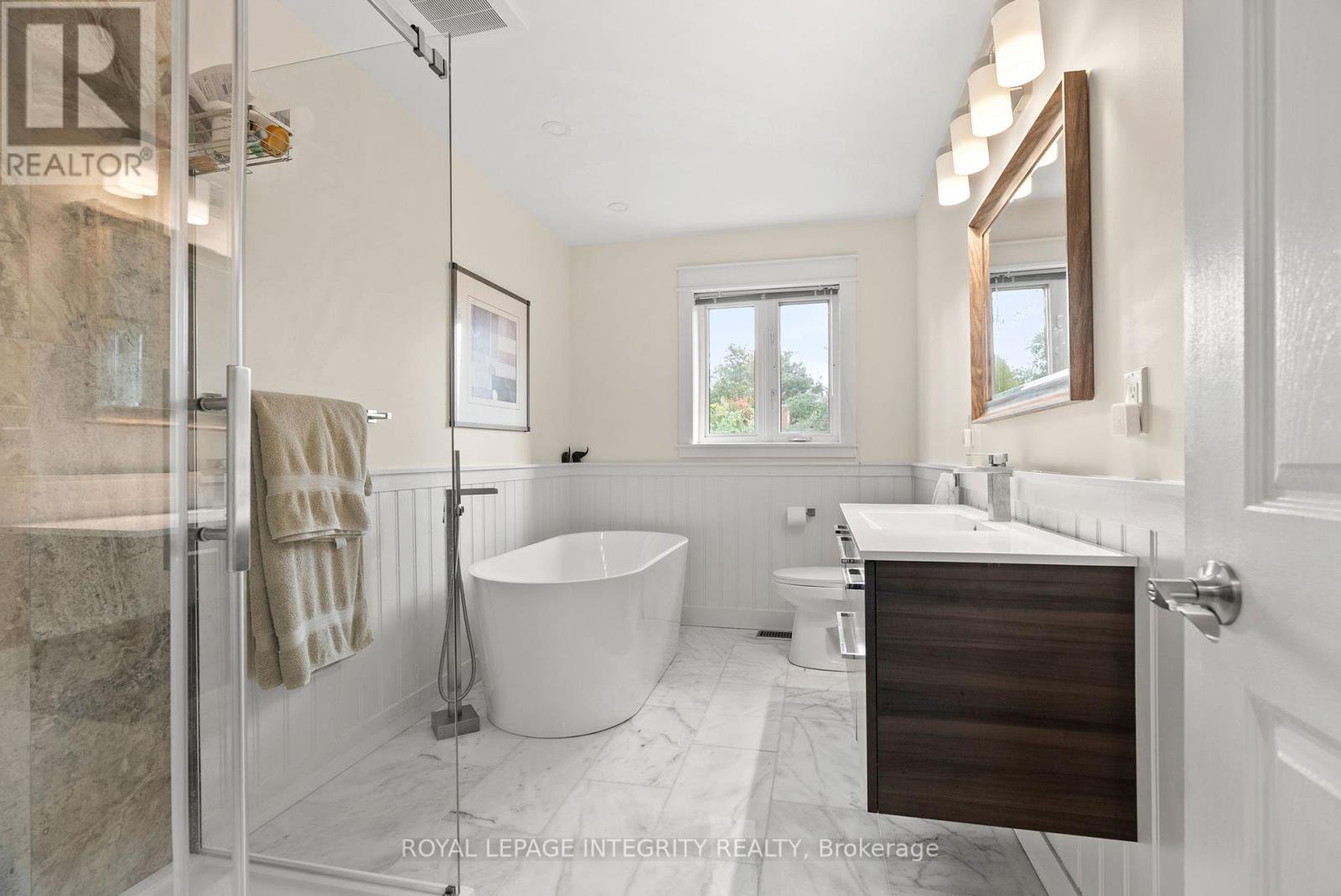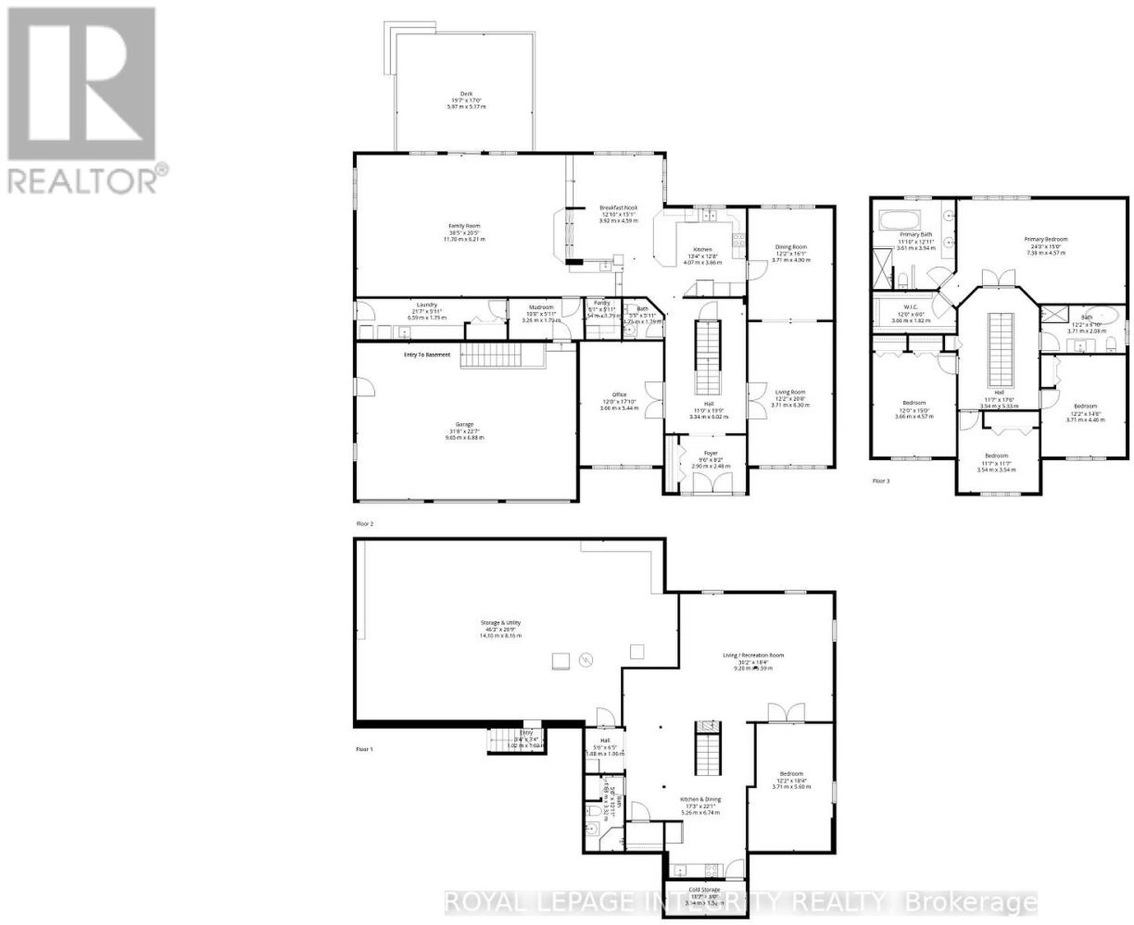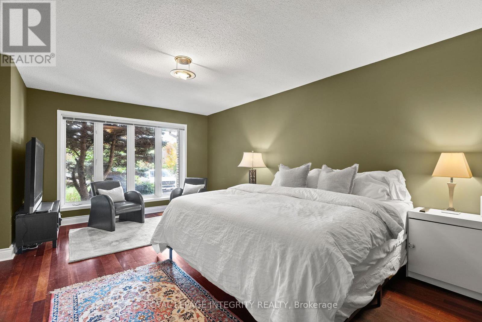 Offering nearly 7,000 sq. ft. of interior living space, this gated estate delivers a scale rarely seen in Ottawa under $2M. Nestled on two manicured acres within an exclusive enclave of just 22 upscale homes, it combines privacy, space, and luxury while being a short walk to restaurants, shopping, and Kanata's tech sector. With 4,453 sq. ft. above grade, the home impresses from the moment you step into the soaring foyer. The main level features a dramatic 38' 5" x 20'6" family room with vaulted 14 ceilings and a two-sided stone fireplace, seamlessly connected to a 24' x 22' sunlit kitchen finished in granite and silver travertine with walk-in pantry, wet bar, breakfast nook and expansive windows. Entertain for 100+ guests with ease. Formal living and dining rooms, a large office with French doors, and a 36' mudroom/laundry room with both upper and lower cabinetry add both elegance and function. The lower level offers a 1,250 sq. ft. finished "in-law suite" with slate floors, marble bath, French doors, kitchenette, and private garage entry, perfect for multi-generational living. An additional 1,200 sq. ft. of unfinished lower level space allows endless potential for a wine cellar, spa, gym, or storage. Finishes include crema marble, travertine, quartz, granite, black slate, and nearly 2,000 sq. ft. of Brazilian Cherry hardwood, known for its hardness and durability. Designed for entertaining, the free-flowing layout creates a 69' line of sight across the main floor, blending semi-open concept with traditional defined formal spaces. Upstairs, discover 4 bedrooms, including a 24' x 15' primary suite with a renovated marble ensuite, alongside a second full bath in quartz and travertine. Outdoors, a new 24' x 20' deck extends the living space, overlooking private grounds framed by mature trees and no rear neighbours. From its sheer scale and refined craftsmanship to its walkable location and private setting, this home is without equal in today's market.