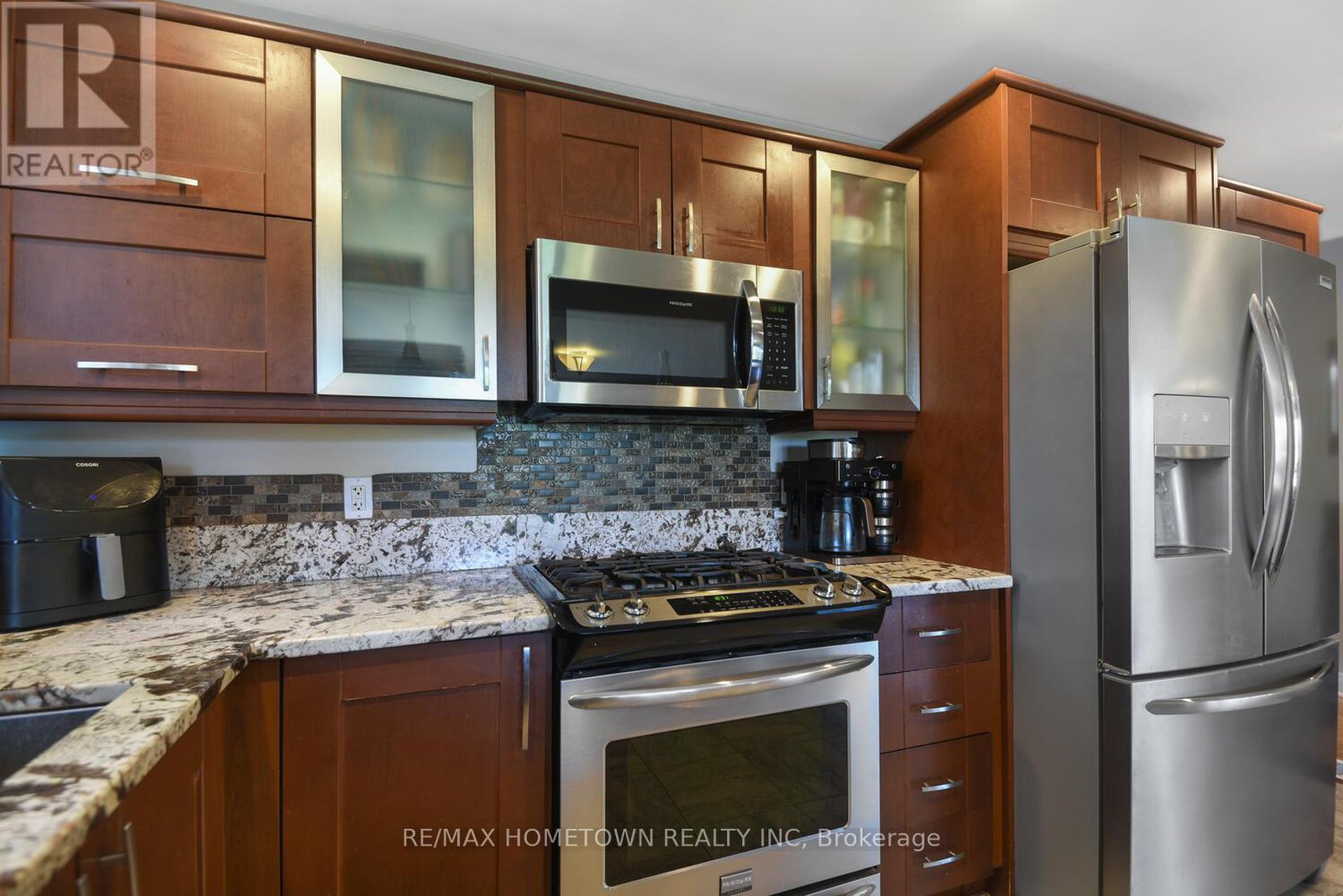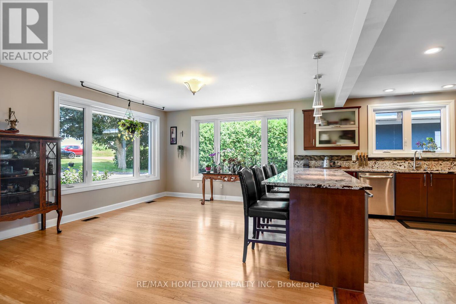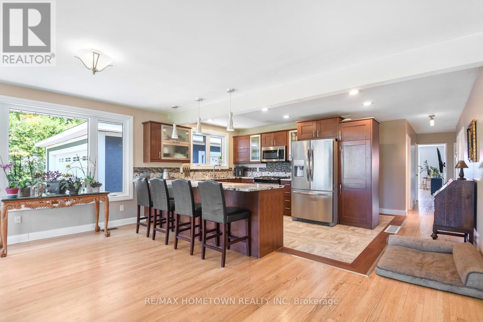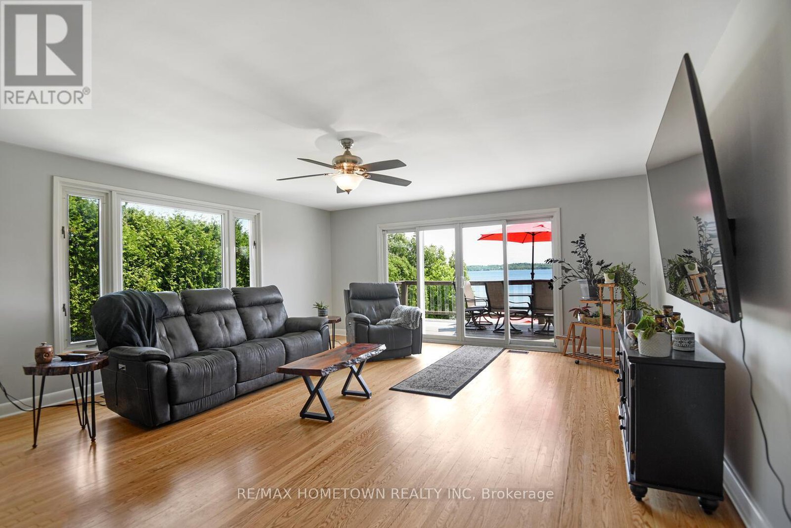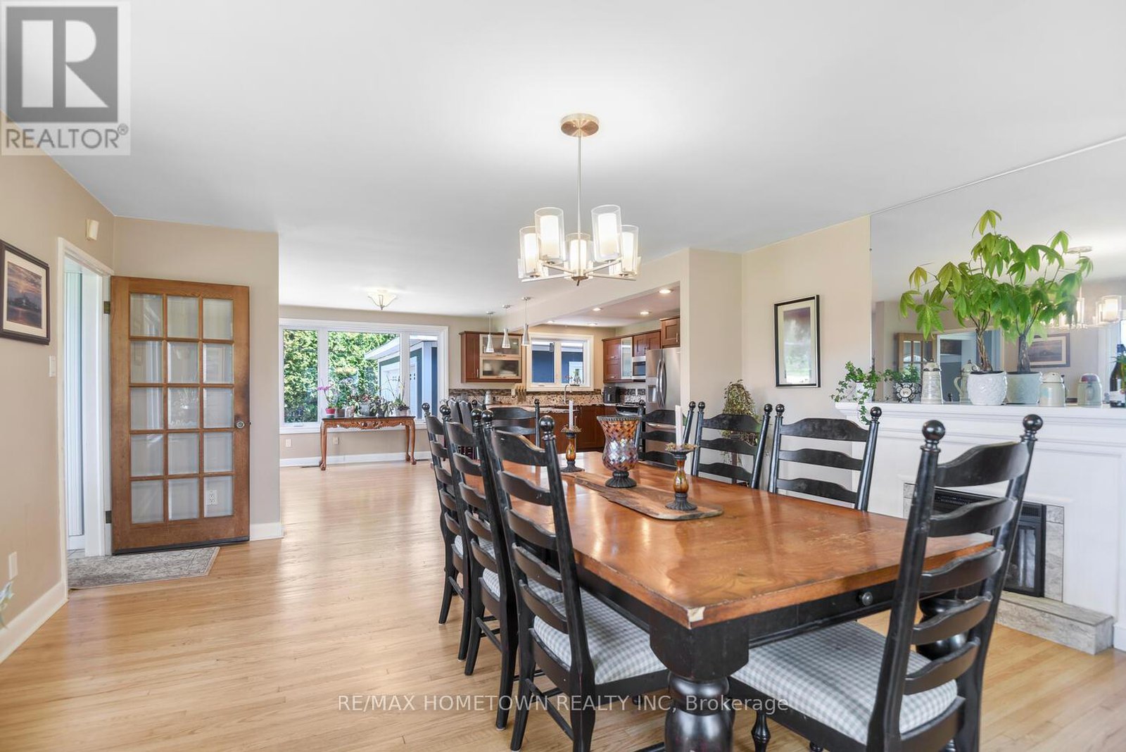 Stunning Riverfront Entertainer's Dream - Key Features - Bedrooms: 3 + potential 4th in lower level, Bathrooms: 2 full (one on each level) Size: Over 3,000 sq ft (including finished walk-out lower level) Garage: Detached 2-car, 24' x 32' with rear door onto water side. Dockage: 100 ft main dock + 30 ft extension east, 7,000 lb boat lift. Main Level Welcoming Foyer: Opens to a generous open-concept layout. Dining Room: Easily seats 8+ guests, ideal for formal dinners. Kitchen: Fully updated with granite countertops & island seating, built-in wine fridge & stainless-steel appliances included, and a breakfast bar for casual dining or conversational gathering. Living Room: Abundant natural light, refinished hardwood floors, and a wood-burning fireplace (convertible to gas) Patio doors to the deck overlooking the river. Sleeping Quarters - Primary Suite: Spacious footprint with two large closets and patio doors to the deck, perfect for your morning coffee. - Secondary Bedrooms: Two well-appointed rooms down the hall, Upper Bath: Fully updated 3-piece. Lower Level (Walk-Out) Family Room: Open concept with wiring in place for a kitchenette. Laundry & Bath: Convenient 3-piece with washer/dryer. Optional In-Law Suite: Easily convert space into a self-contained apartment. Additional Rooms: Storage, utility room, plus bonus space - Garden Doors: Walk out to a private patio overlooking the river. Outdoor Oasis-Riverfront Living: Short walk from backyard to dock & boat. Fire Pit Area: Cozy spot for marshmallow roasts; Sun Decks: Two additional platforms for sunbathing or stargazing. Practical Perks High-Speed Internet: Bell Fibe available-perfect for work-from-home days - Commuter Ready: Minutes to Prescott, 401 & 416; easy Ottawa commute. Don't Miss Out! Whether you're hosting large gatherings or seeking a tranquil riverside retreat, this home offers the best of both worlds. Book your private showing today and experience river living at its finest.
