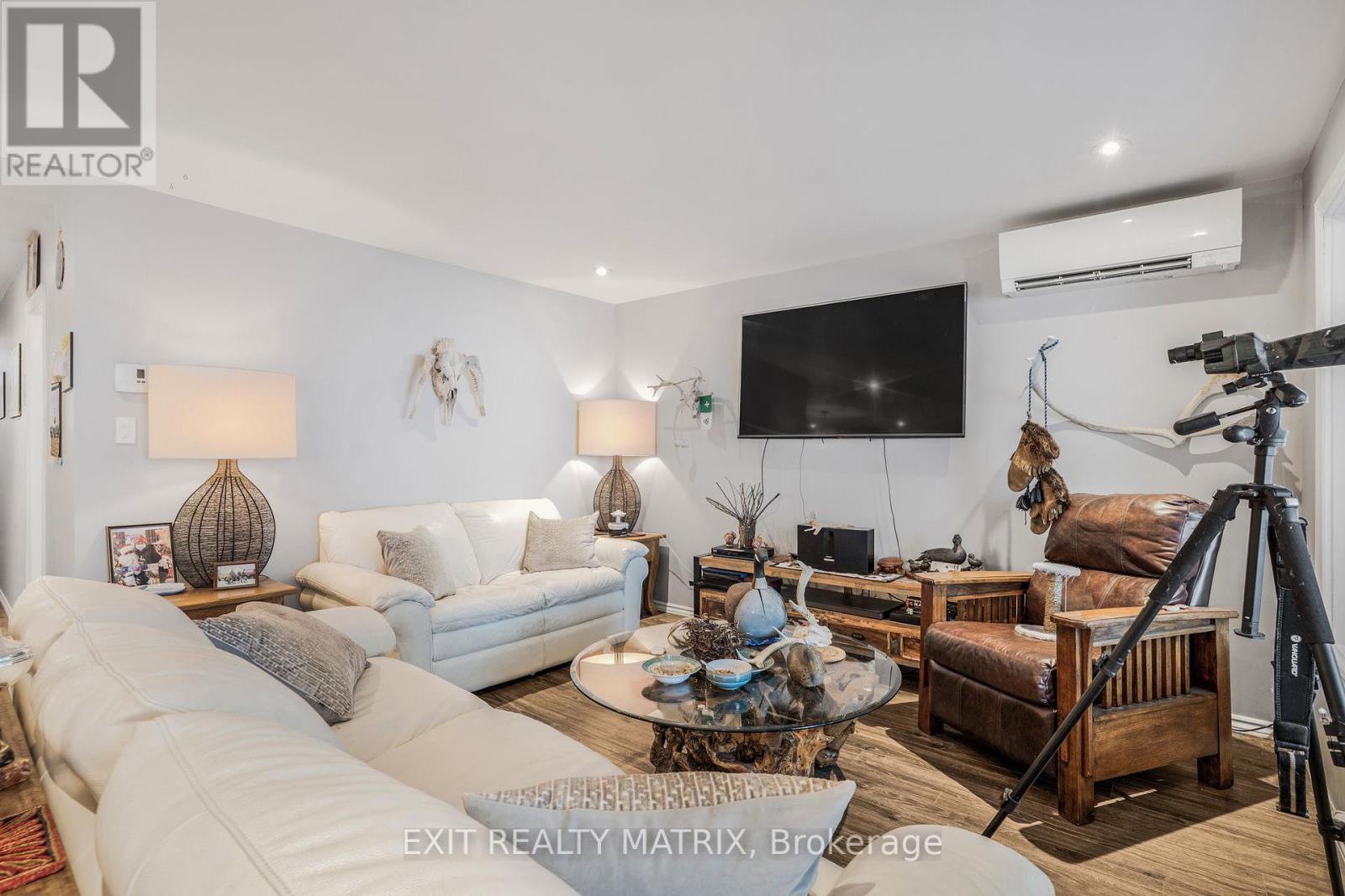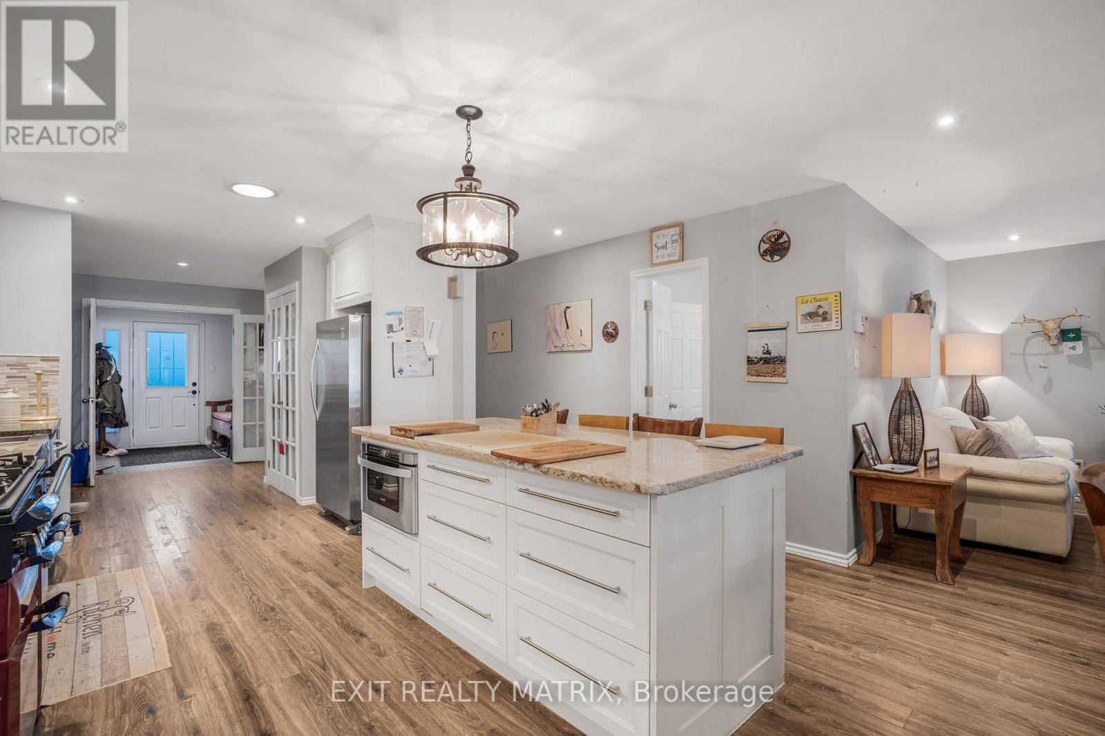Time to relax and enjoy year round waterfront living with majestic views! A formal entry leads to a well designed floor plan. A gourmet kitchen with ample cabinets, granite counters, center island with lunch counter, a pantry and quality appliances. An open concept dining and living room areas with patio doors giving access to a covered deck. A primary bedroom with walk in closet and cheater ensuite bath with soaker tub complete the main level living area. A fully finished basement offers a second primary bedroom with walk in and cheater ensuite, a 3rd bedroom, laundry area and a family room complete with a bar for easy entertaining. Patio doors for easy access to a second covered area with patio and a gradual decent to the rivers edge. Attached heated garage with dog crate entry , trimmed mature trees, flower beds, new propane tank and several other maintenance items done. Full list of updates in attachments. Call for a visit!