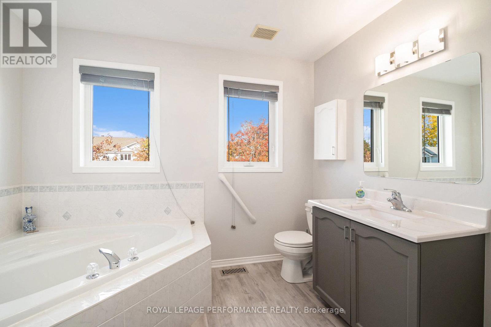 Updated, sought after end unit with a nice lot. This spacious, 3 bedroom townhome is located on a quiet street, on a pie-shaped, fully fenced in yard. The main level is open-concept, with the bright living / dining area on hardwood floors. The kitchen area features a chef's kitchen with an eating area, plenty of oak cabinets and open to the family room that has a gas fireplace. The upper level has a bright, spacious primary bedroom featuring a walk in closet and a large 4-piece ensuite with a separate shower and soaker tub. Two good size secondary bedrooms and the second full bathroom. The fully finished lower level offers an L shaped family room and a den/office. Laundry room and additional storage room complete the space. Huge pie-shaped yard, interlock patio. Great neighborhood, minutes from parks, walking trails, schools, restaurants, shopping and quick access to the LRT Trim Park and Ride and the 174. Freshly painted, with some new flooring, recent appliances, patio door 2020, furnace 2014, roof 2011 with a 40 year warranty, landscaped stone entrance, 4 car driveway and more... this could be the one you've been waiting for!