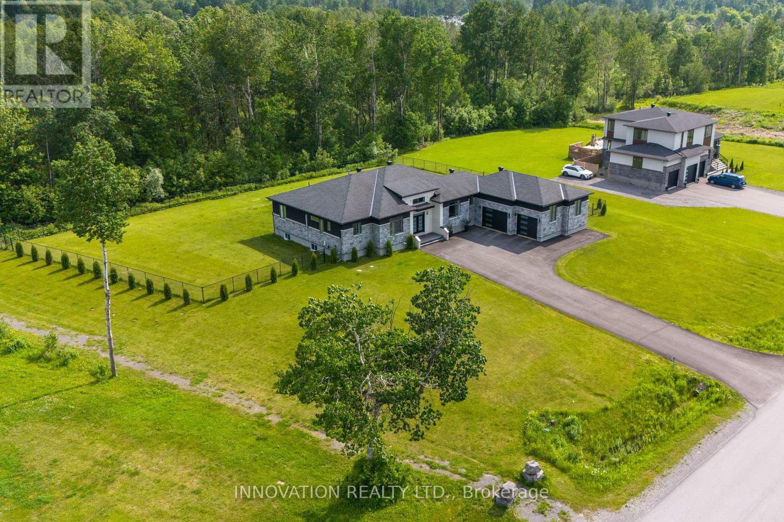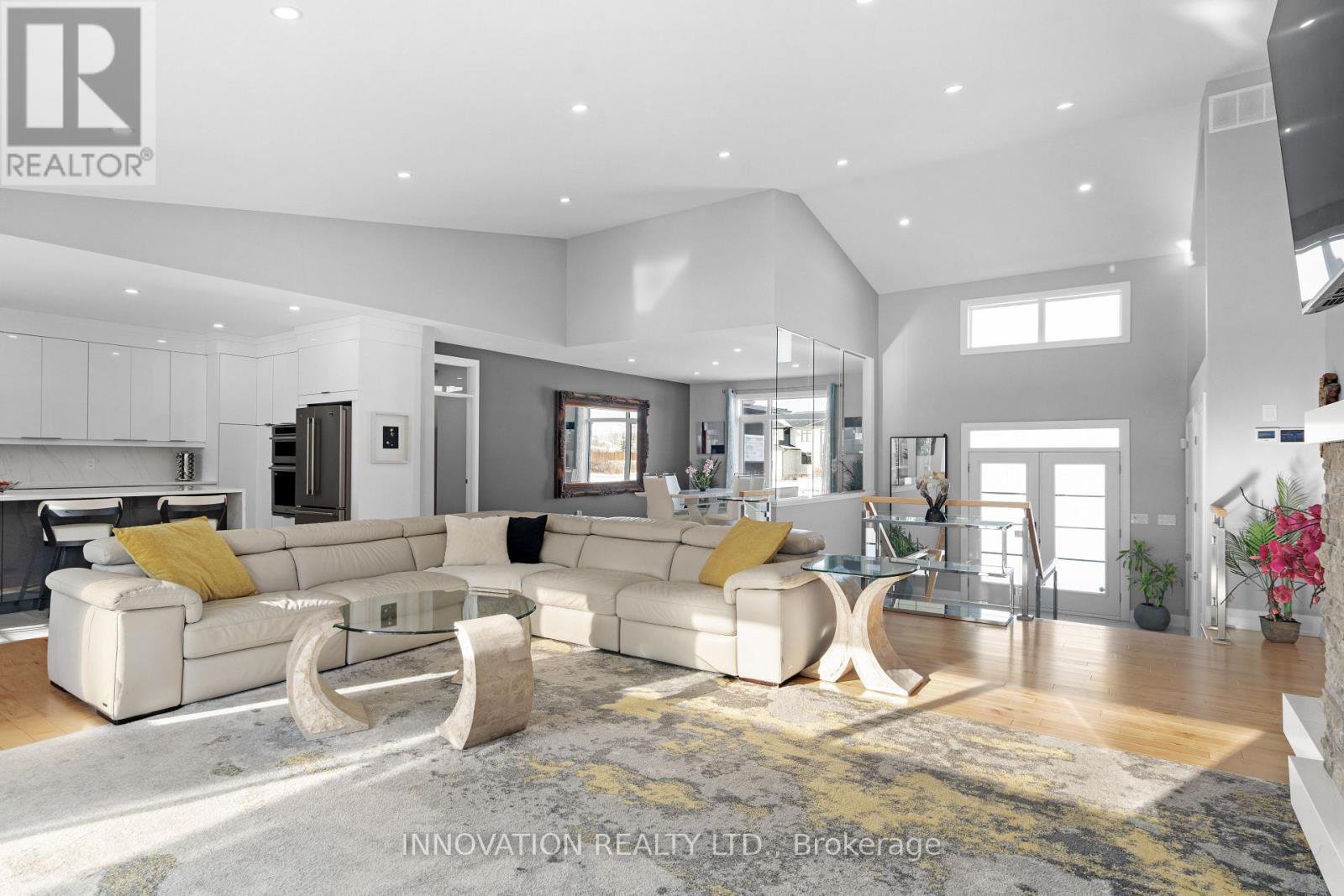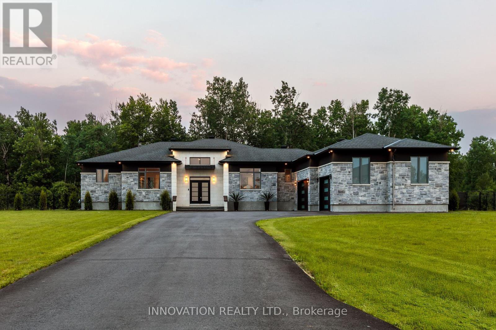 A stunning masterpiece of modern bungalow design. Located on a corner lot in a serene neighborhood. This property sits on an acre of fully fenced-in land with no rear neighbors and no possibility of future development, ensuring ultimate privacy. Immaculately maintained, with large windows throughout, this 2017 custom built home has 4 beautiful bright bedrooms, 1 office and 5 bathrooms. Newly paved driveway (2022) leads to a heated oversized two car garage finished with epoxy flooring and lots of storage room. The main floor features a spacious living room with vaulted ceilings, a gas fireplace, a formal dining area, and a beautiful open concept kitchen showcasing quartz countertops, sleek appliances, and ample space for cooking. The primary suite offers a modern electric stone wall fireplace, a walk-in closet and a spa-like bathroom featuring a jacuzzi soaking tub. Lower level has a private theater, gym, a wet bar, an extra room and 2 bathrooms, perfect for hosting guests. Approx. 5000 square feet livable space. This is more than a home, it's an investment in your future and peace. Don't miss your chance to own this unique property where modern design, serene living, and smart investment potential come together. Schedule your private tour of 651 Ballycastle Crescent today!