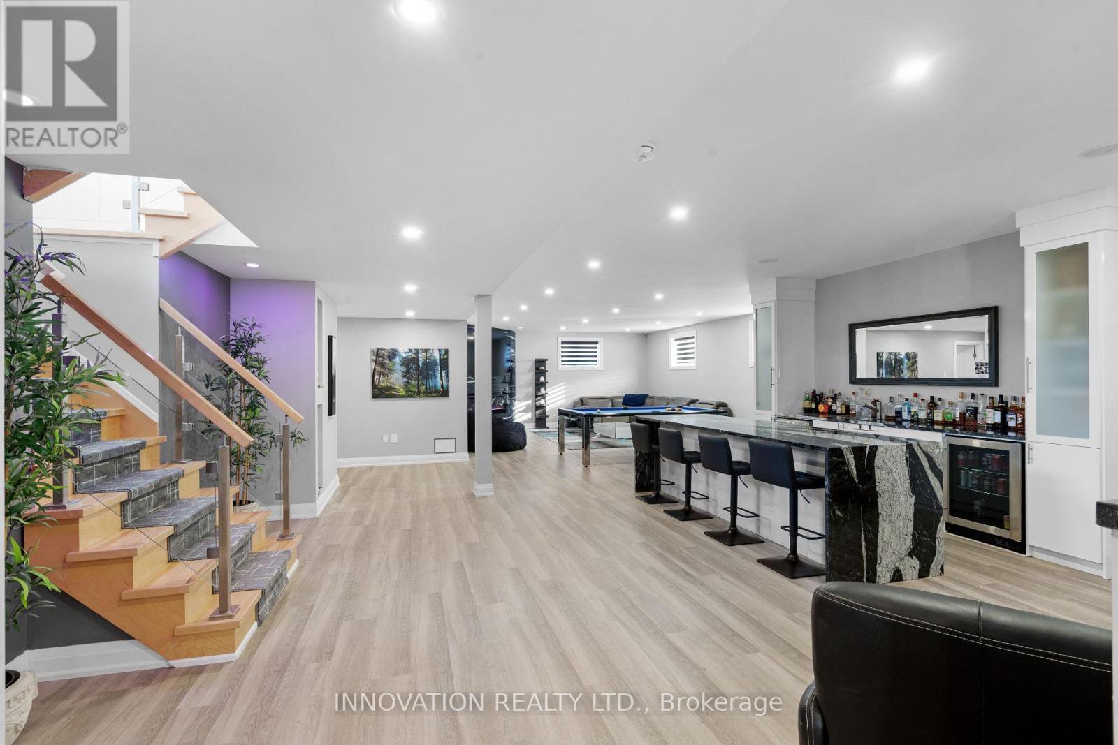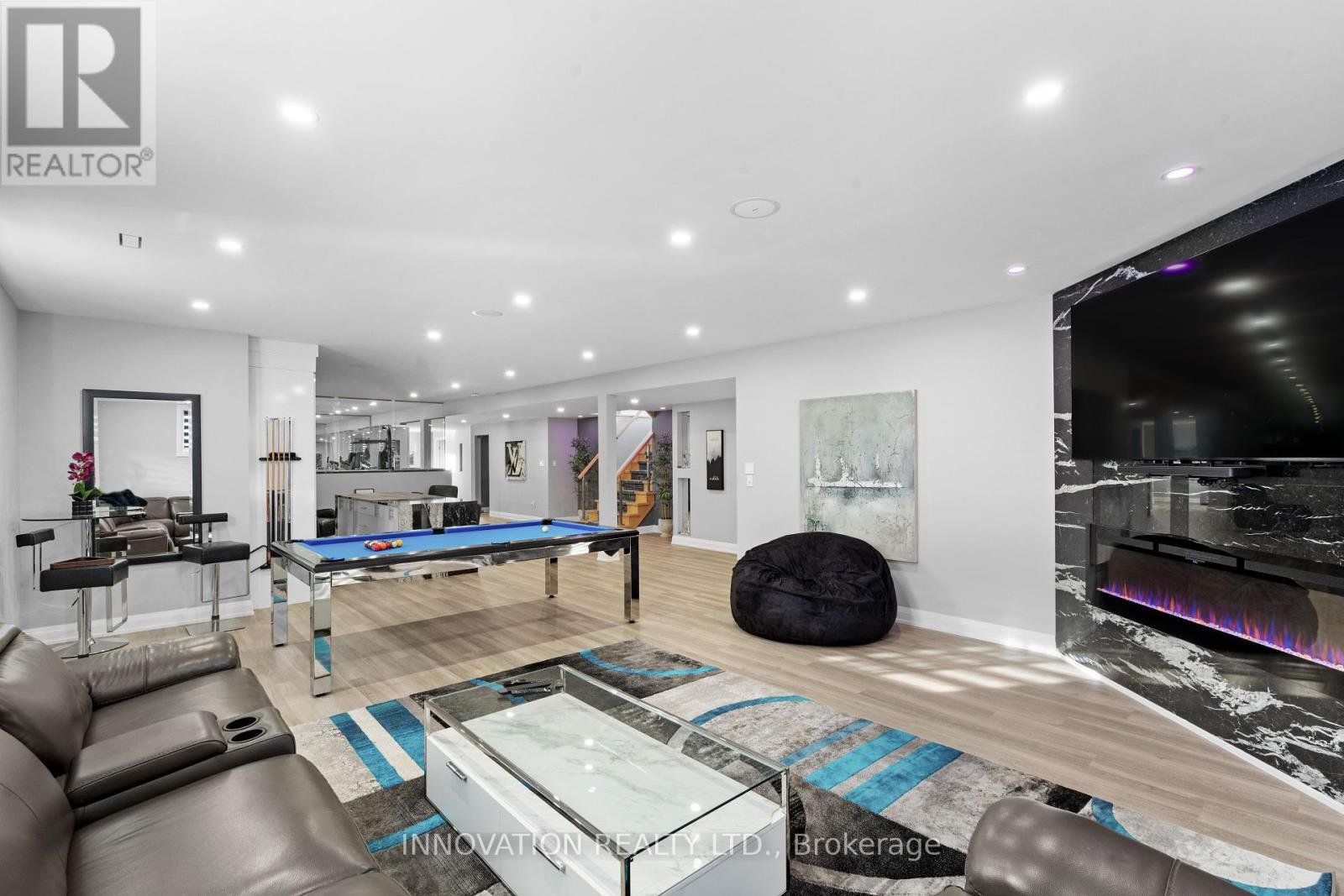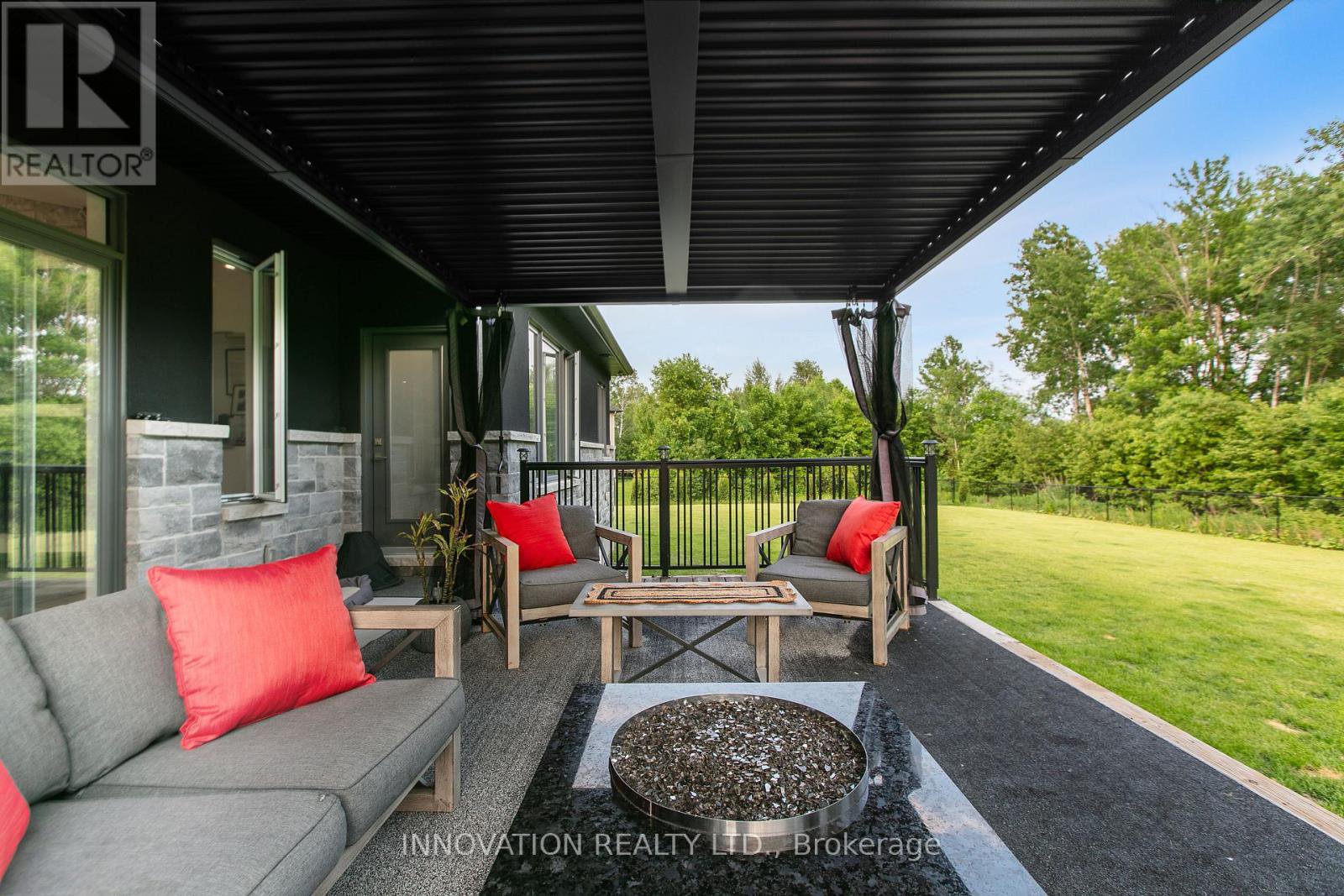 A stunning masterpiece of modern bungalow design. Located on a corner lot in a serene neighborhood. This property sits on an acre of fully fenced-in land with no rear neighbors and no possibility of future development, ensuring ultimate privacy. Immaculately maintained, with large windows throughout, this 2017 custom built home has 4 beautiful bright bedrooms, 1 office and 5 bathrooms. Newly paved driveway (2022) leads to a heated oversized two car garage finished with epoxy flooring and lots of storage room. The main floor features a spacious living room with vaulted ceilings, a gas fireplace, a formal dining area, and a beautiful open concept kitchen showcasing quartz countertops, sleek appliances, and ample space for cooking. The primary suite offers a modern electric stone wall fireplace, a walk-in closet and a spa-like bathroom featuring a jacuzzi soaking tub. Lower level has a private theater, gym, a wet bar, an extra room and 2 bathrooms, perfect for hosting guests. Approx. 5000 square feet livable space. This is more than a home, it's an investment in your future and peace. Don't miss your chance to own this unique property where modern design, serene living, and smart investment potential come together. Schedule your private tour of 651 Ballycastle Crescent today!