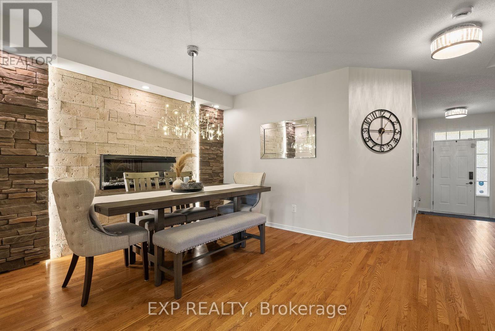 Very motivated sellers present this beautifully maintained Richcraft Charleston model offers a well-planned layout with 3 bedrooms, 2.5 bathrooms and a beautiful backyard oasis! The main level boasts gleaming hardwood floors, elegant formal living and dining rooms, and a bright, spacious kitchen with its own eating area. A patio door opens to the barbecue space with a natural gas hook up and a generous fully fenced backyard with an outstanding hot tub on a concrete slab, quality crafted deck & Pergola, and no rear neighbours, perfect for entertaining. The upper level offers a spacious primary bedroom, a walk-in closet with customized shelves (2022), a fully renovated ensuite bathroom (2025), two additional bedrooms, a full bathroom, and a convenient second-floor laundry featuring a newer washer and dryer (2022). The main level features hardwood flooring, a mosaic wall & electric fireplace in the dining room and is illuminated with potlights throughout. Modern laminate in the finished basement adds versatility with a welcoming family room featuring a gas fireplace, fresh neutral paint, ample storage and an office. Its prime location provides quick access to major employment hubs such as the Ottawa International Airport and Uplands Business Park, convenient commuting via Highway 417, and close proximity to top amenities including Hunt Club Plaza, recreational facilities, schools, and beautiful green spaces making it an exceptional choice for growing families. Additional features include: Furnace (2021), HWT (2022, owned), Interlock and repaved driveway (2024), Garage door opener (2025), new shingles (2019), zebra blinds (2024) and kitchen appliances (2023).
